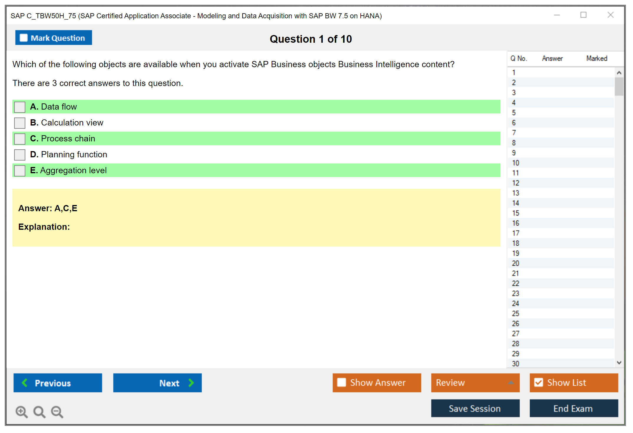 The SAP C_TBW50H_75 exam consists of 80 questions.