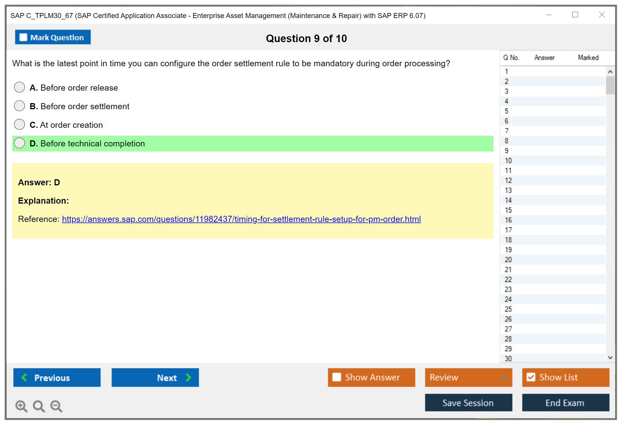 The SAP C_TPLM30_67 exam is an associate-level certification that focuses on SAP Maintenance & Repair with ERP 6.0 EHP7. It is intended for professionals who want to demonstrate their expertise in this specific SAP module, covering various aspects such as planning, execution, and completion of maintenance tasks.