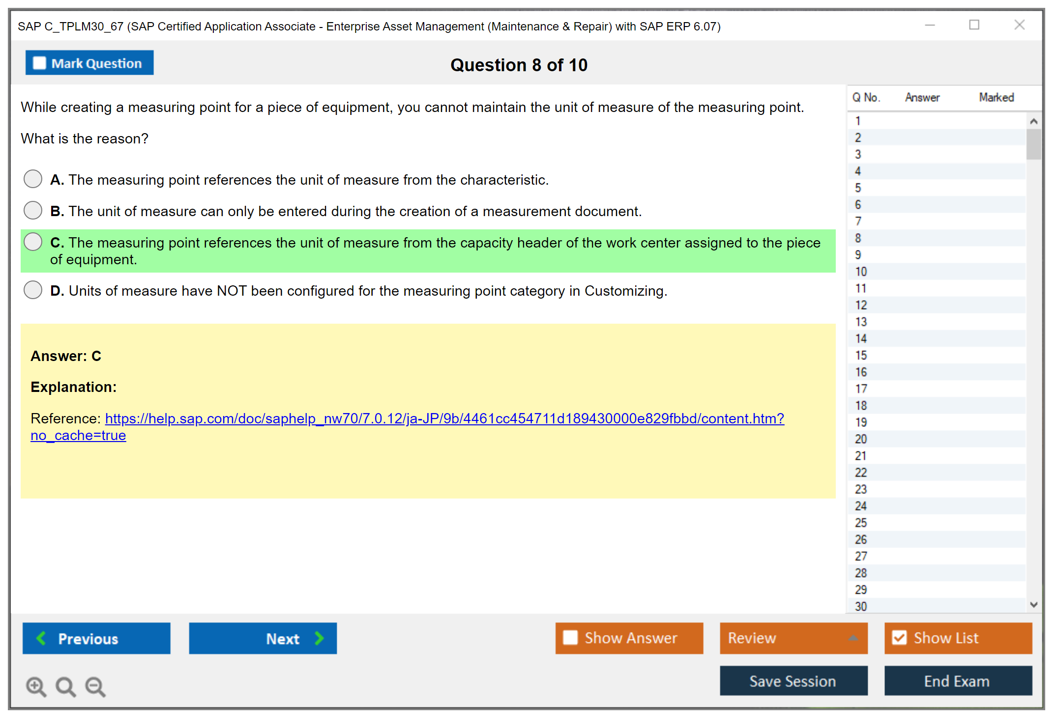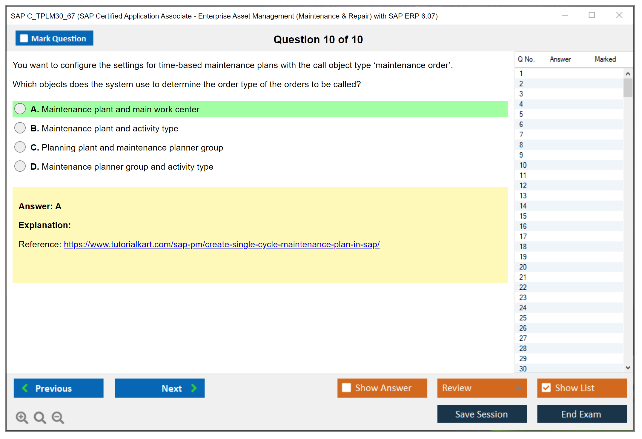 The SAP C_TPLM30_67 exam, also known as SAP Certified Associate - SAP Maintenance & Repair with ERP 6.0 EHP7, is designed to validate the candidate's knowledge and skills in the area of SAP Maintenance and Repair. This certification ensures that the candidate has a foundational understanding and can apply their knowledge practically in projects.
