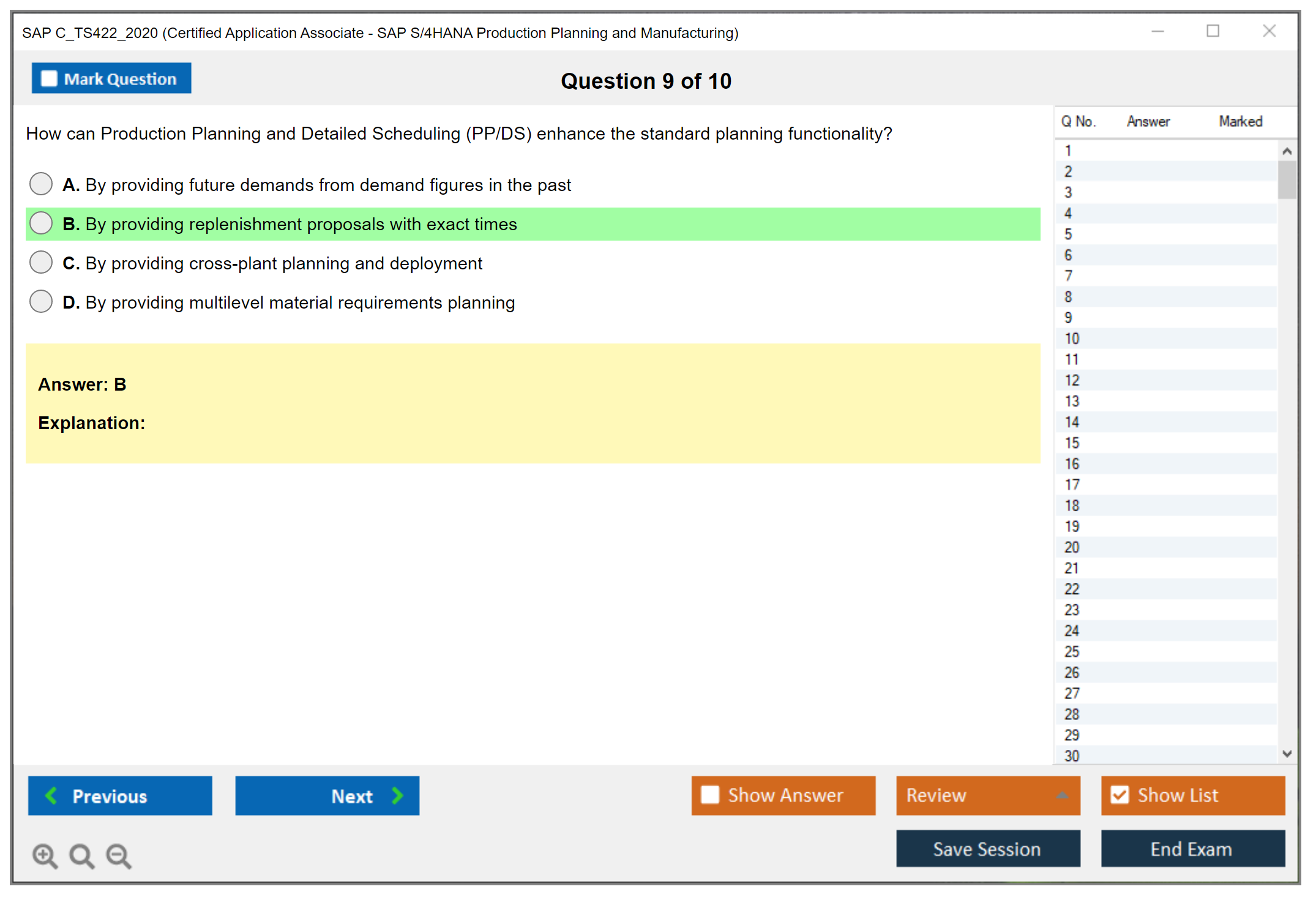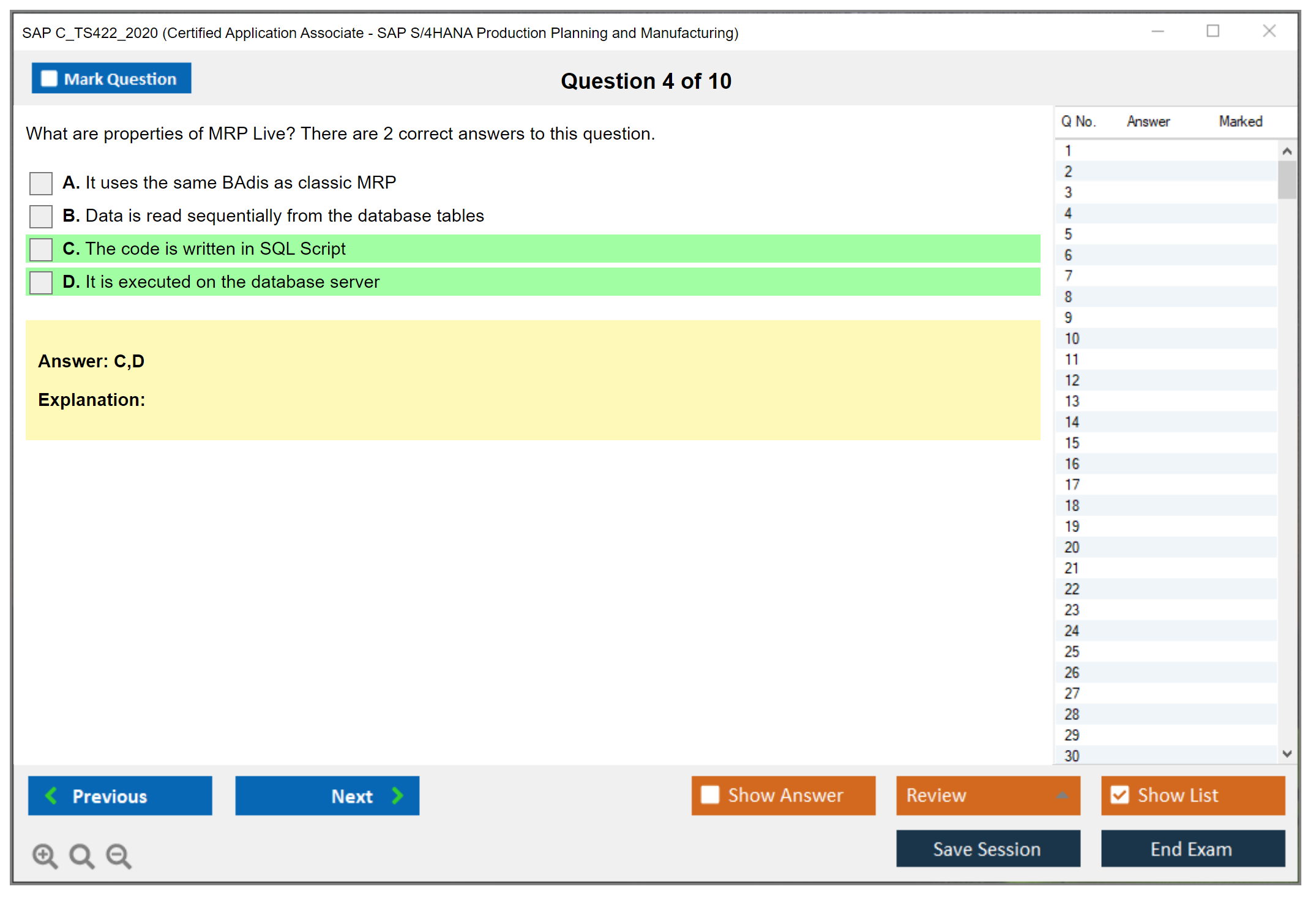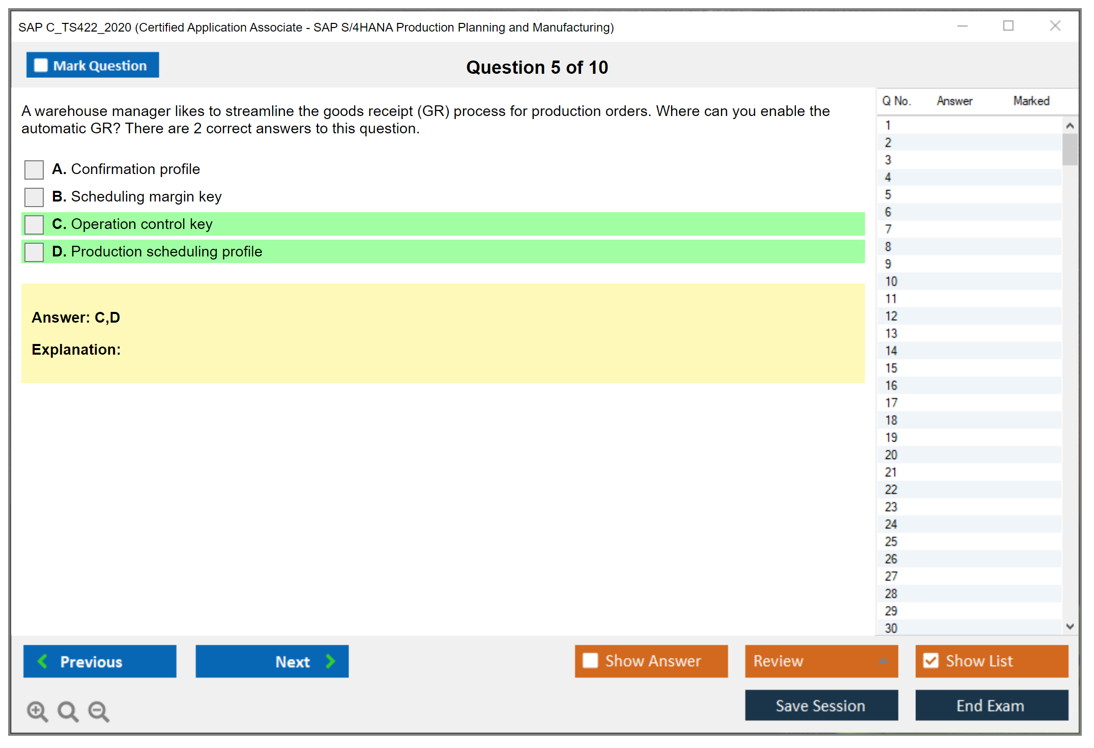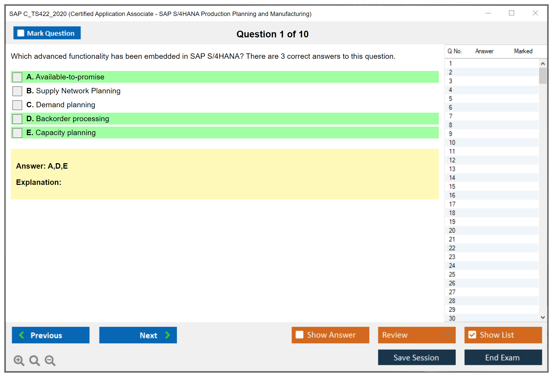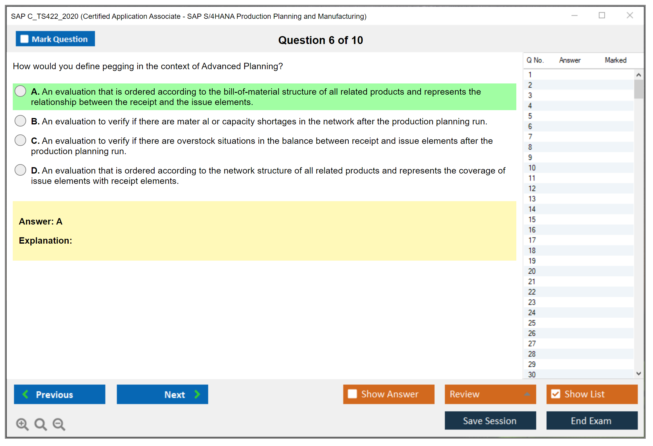 The SAP C_TS422_2020 exam is designed to validate the candidate's knowledge and skills in the area of SAP S/4HANA Production Planning and Manufacturing. It ensures that the candidate has a comprehensive understanding of the subject and can apply it effectively in real-world scenarios.