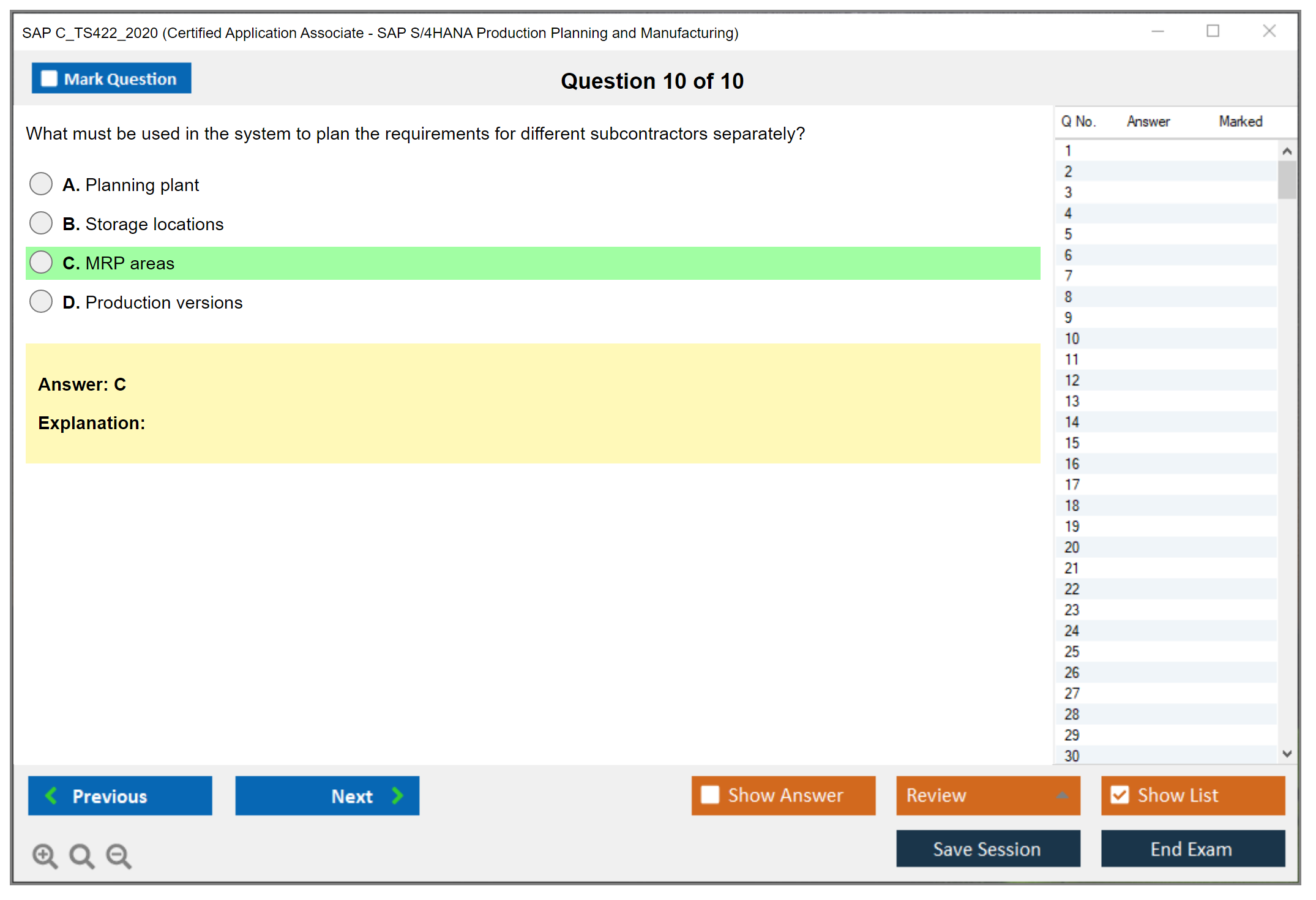 SAP C_TS422_2020 (Certified Application Associate - SAP S/4HANA Production Planning and Manufacturing) is a certification exam that verifies the candidate's knowledge in the area of SAP S/4HANA Production Planning and Manufacturing. This certification validates that the candidate has a fundamental understanding and proven skills in SAP S/4HANA Production Planning and Manufacturing.