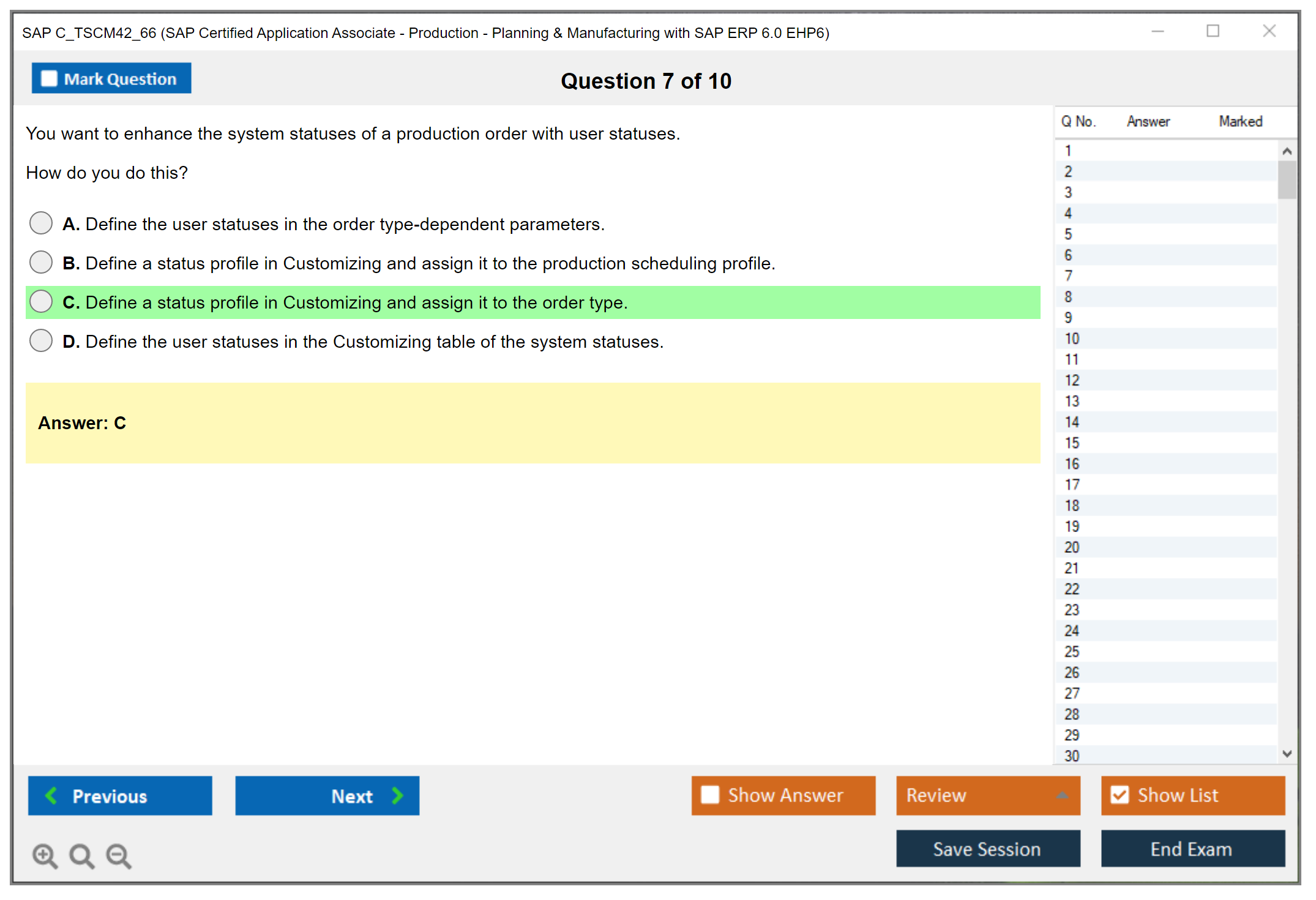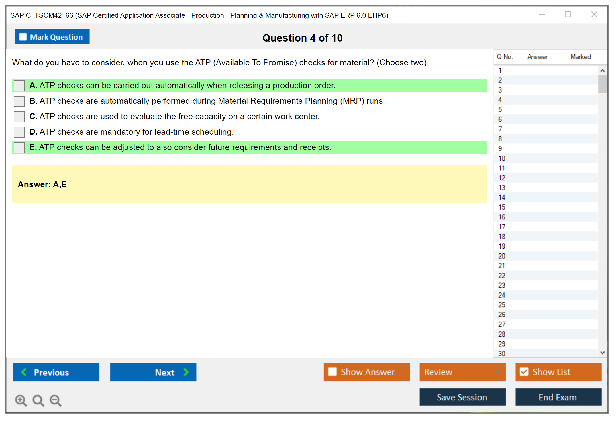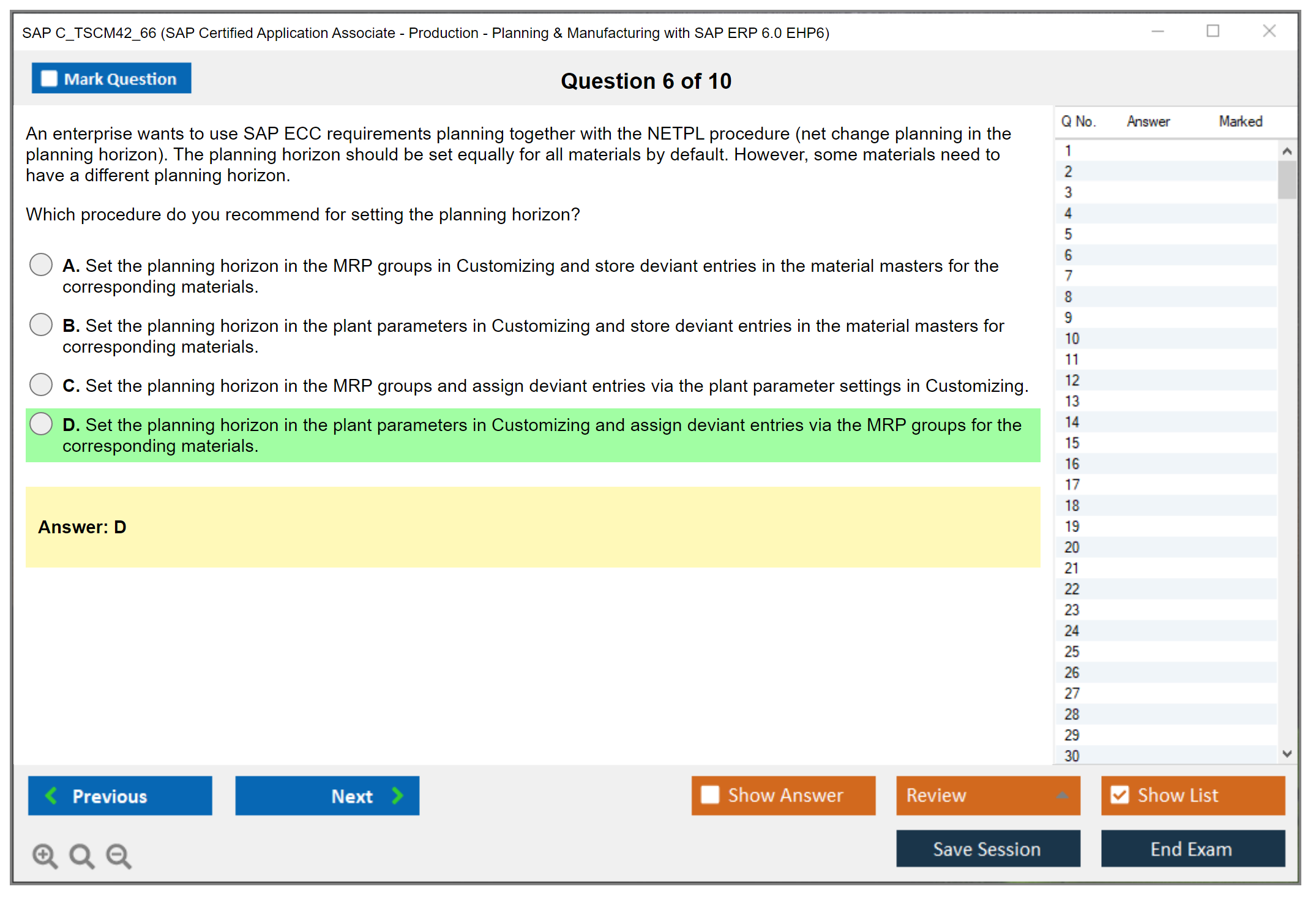 Note: SAP C_TSCM42_66 (SAP Certified Application Associate - Production - Planning & Manufacturing with SAP ERP 6.0 EHP6) will not receive any new updates.