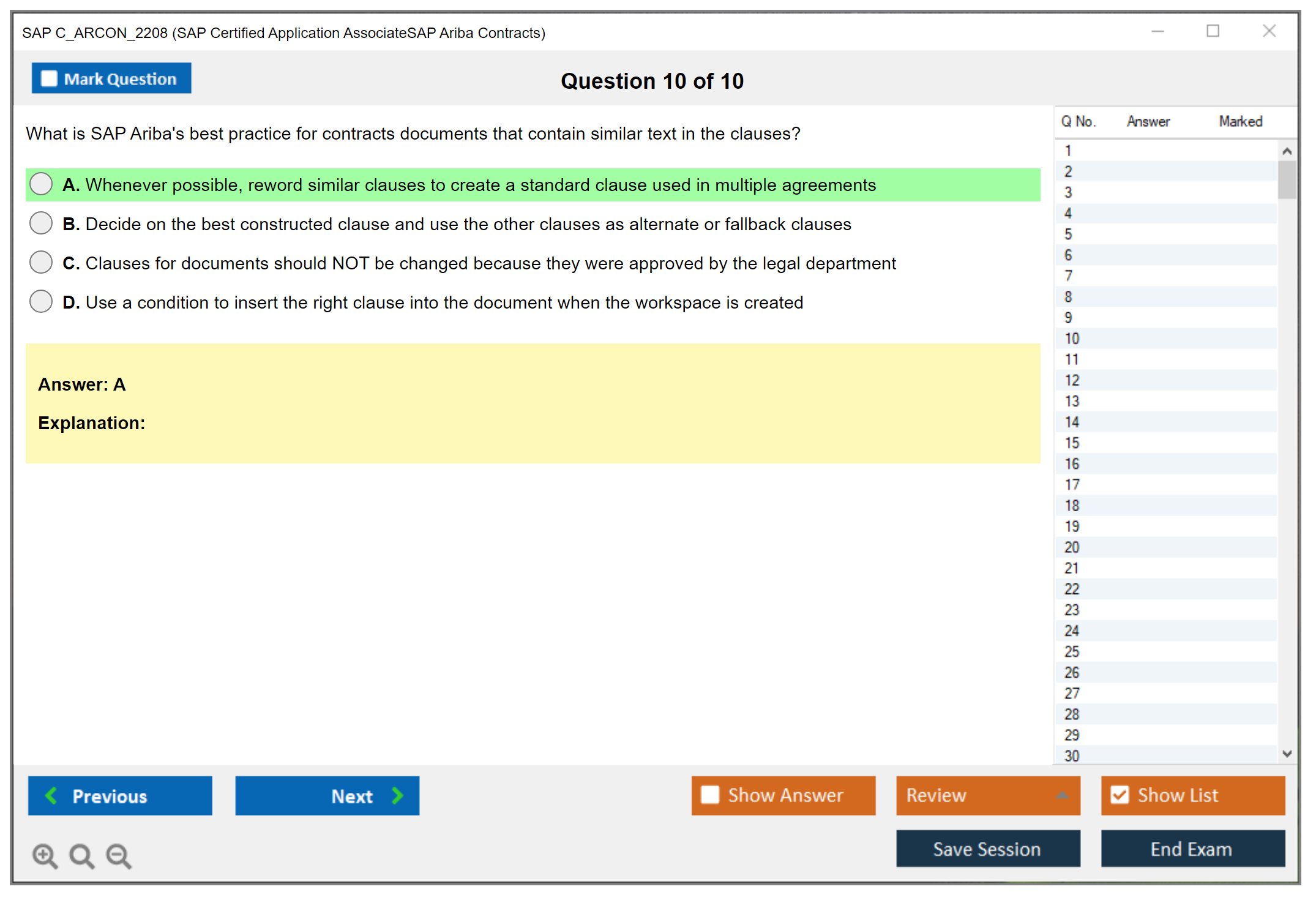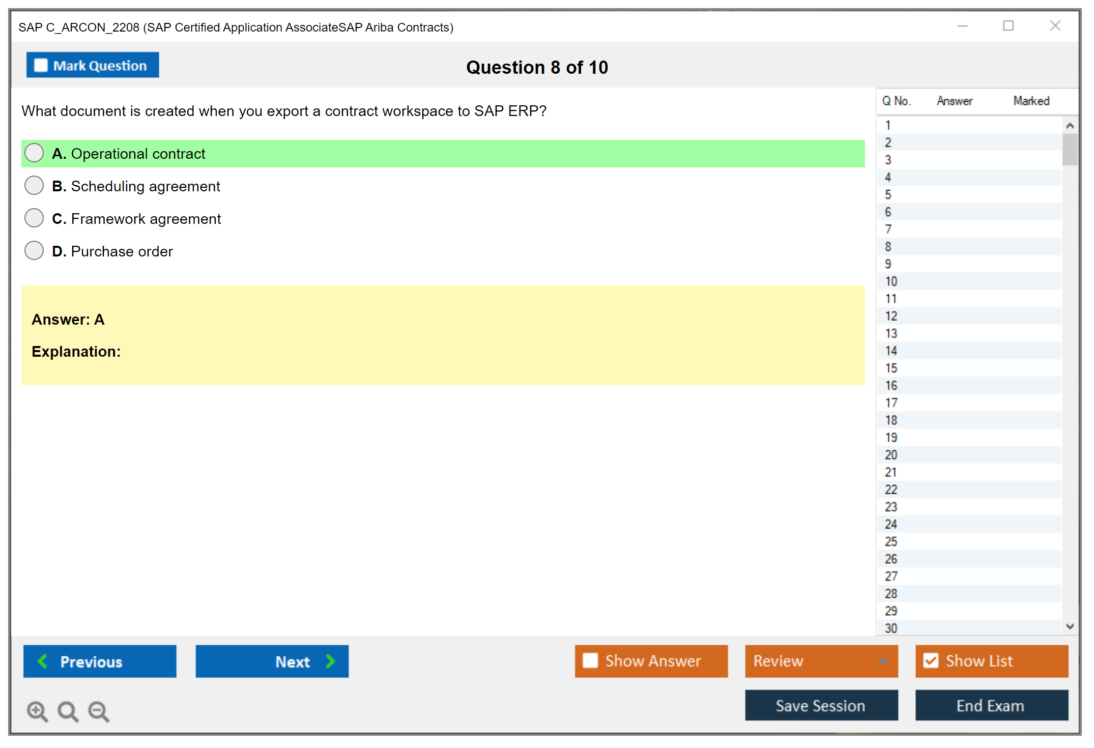 The SAP C_ARCON_2208 Exam is a certification test for individuals seeking to demonstrate their expertise in SAP Ariba Contracts. It assesses the candidate's ability to apply the knowledge in practical scenarios, ensuring they can effectively use the SAP Ariba Contracts solution in a professional environment.