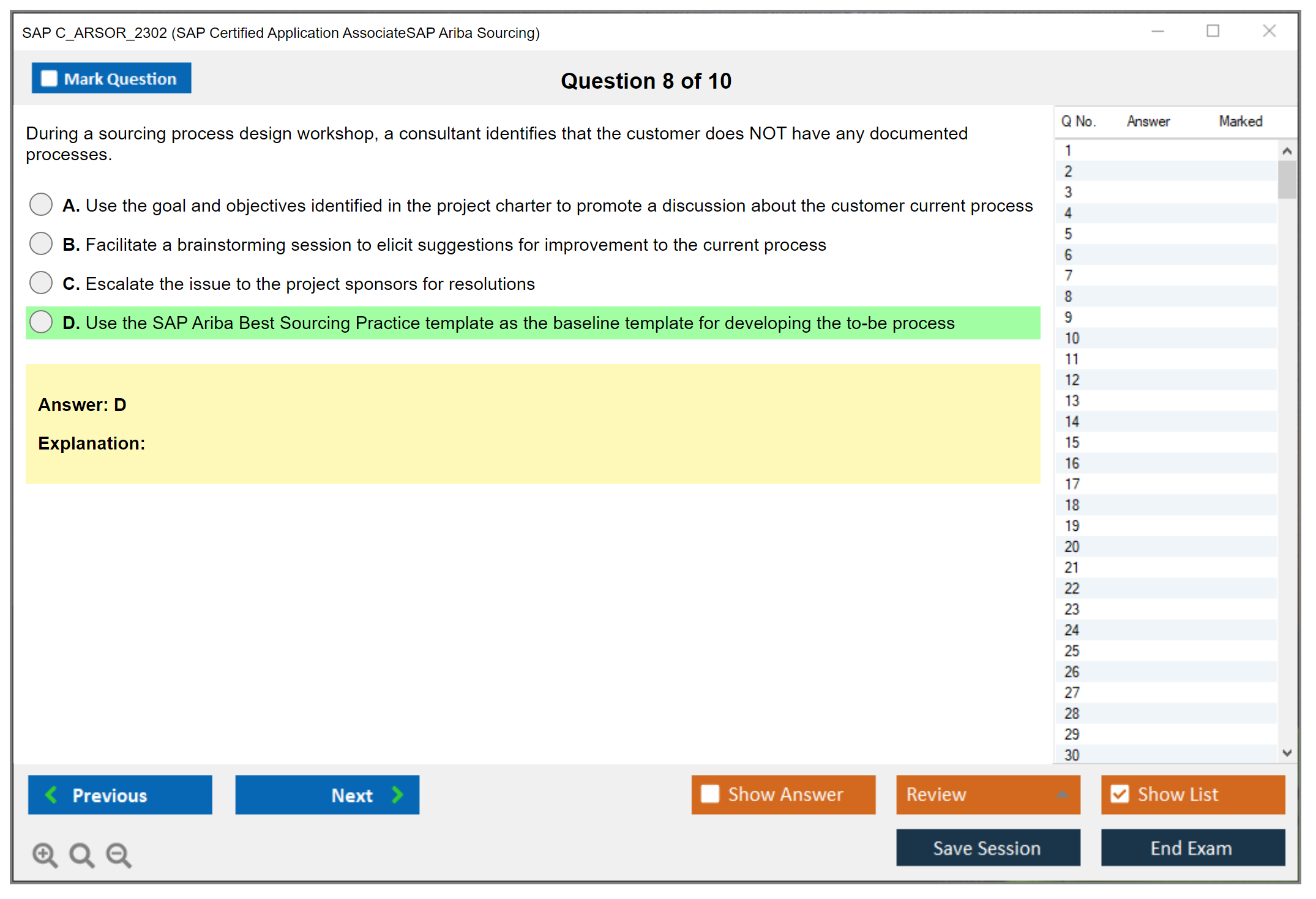The SAP C_ARSOR_2302 (SAP Certified Application Associate - SAP Ariba Sourcing) exam validates that the candidate possesses the fundamental and core knowledge required of the SAP Ariba Sourcing Associate Application Consultant profile. This certification proves that the candidate has an overall understanding and in-depth technical skills to participate as a member of a project team in a mentored role.