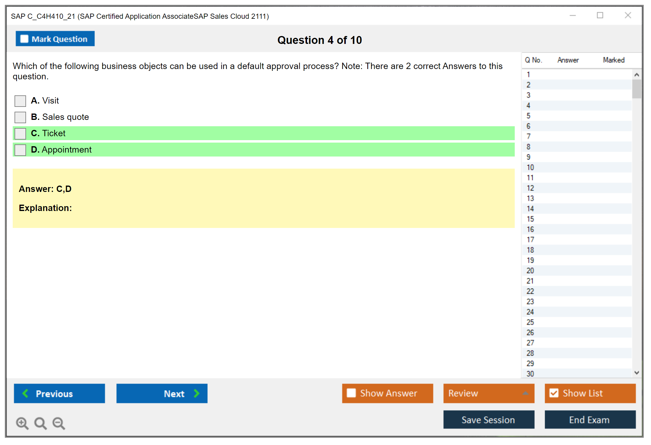 The question format of the SAP C_C4H410_21 exam includes multiple-choice and multiple-response questions.