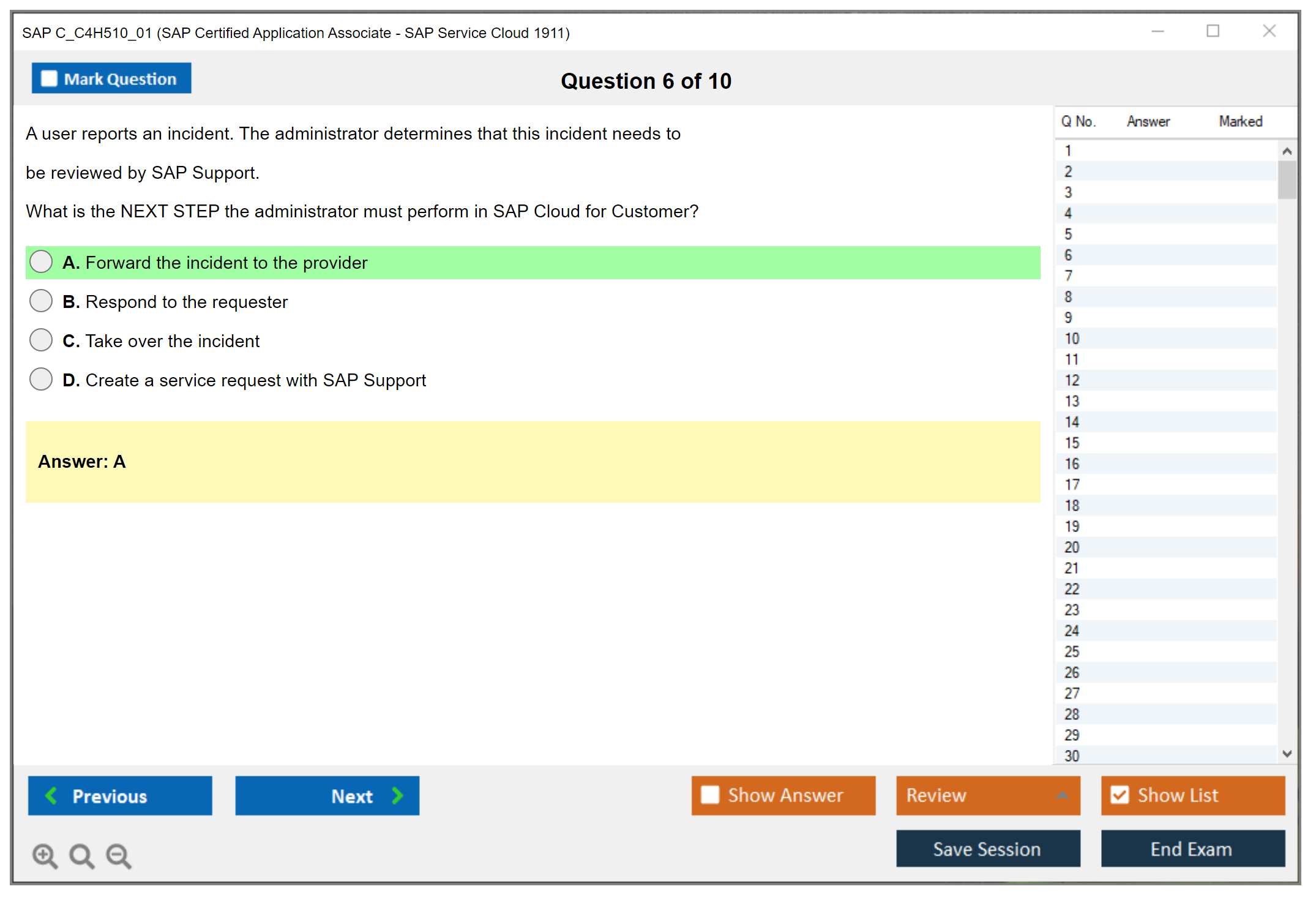 The SAP C_C4H510_01 (SAP Certified Application Associate - SAP Service Cloud 1911) exam validates that the candidate possesses the fundamental and core knowledge required for the SAP Service Cloud profile. This certification proves that the candidate has an overall understanding and in-depth technical skills to participate as a member of a project team in a mentoring role.