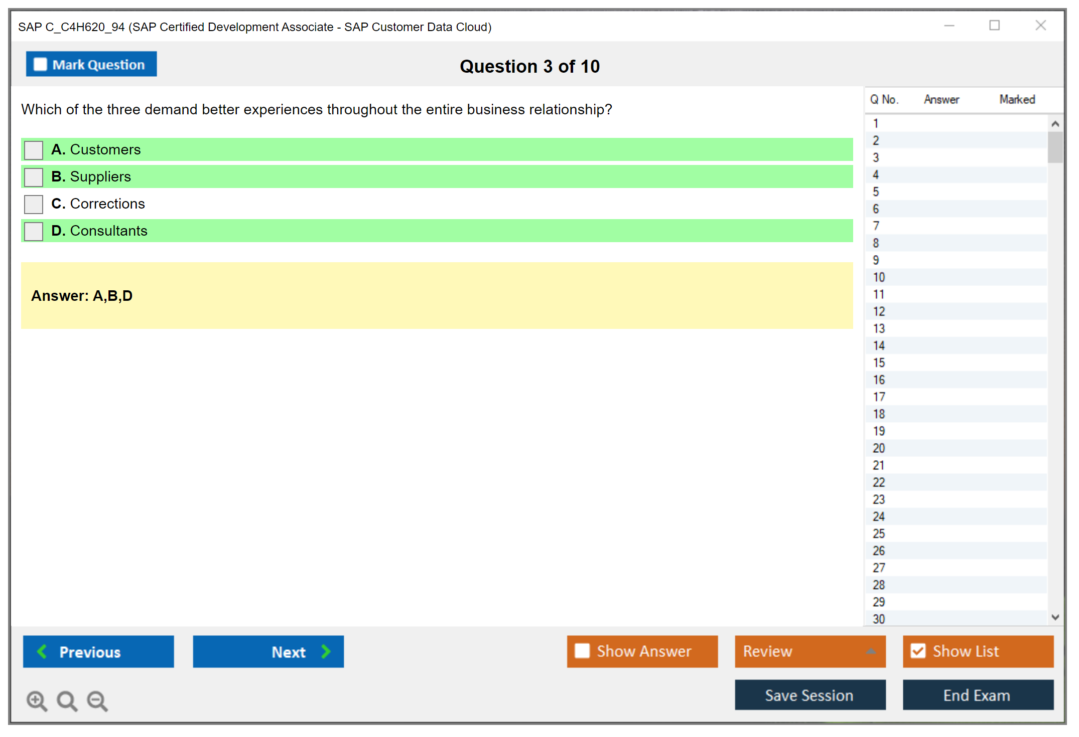 The SAP C_C4H620_94 (SAP Certified Development Associate - SAP Customer Data Cloud) Exam is designed to validate the knowledge and skills of professionals in the area of SAP Customer Data Cloud. It assesses the candidate's understanding of the fundamental and advanced concepts related to the SAP Customer Data Cloud.
