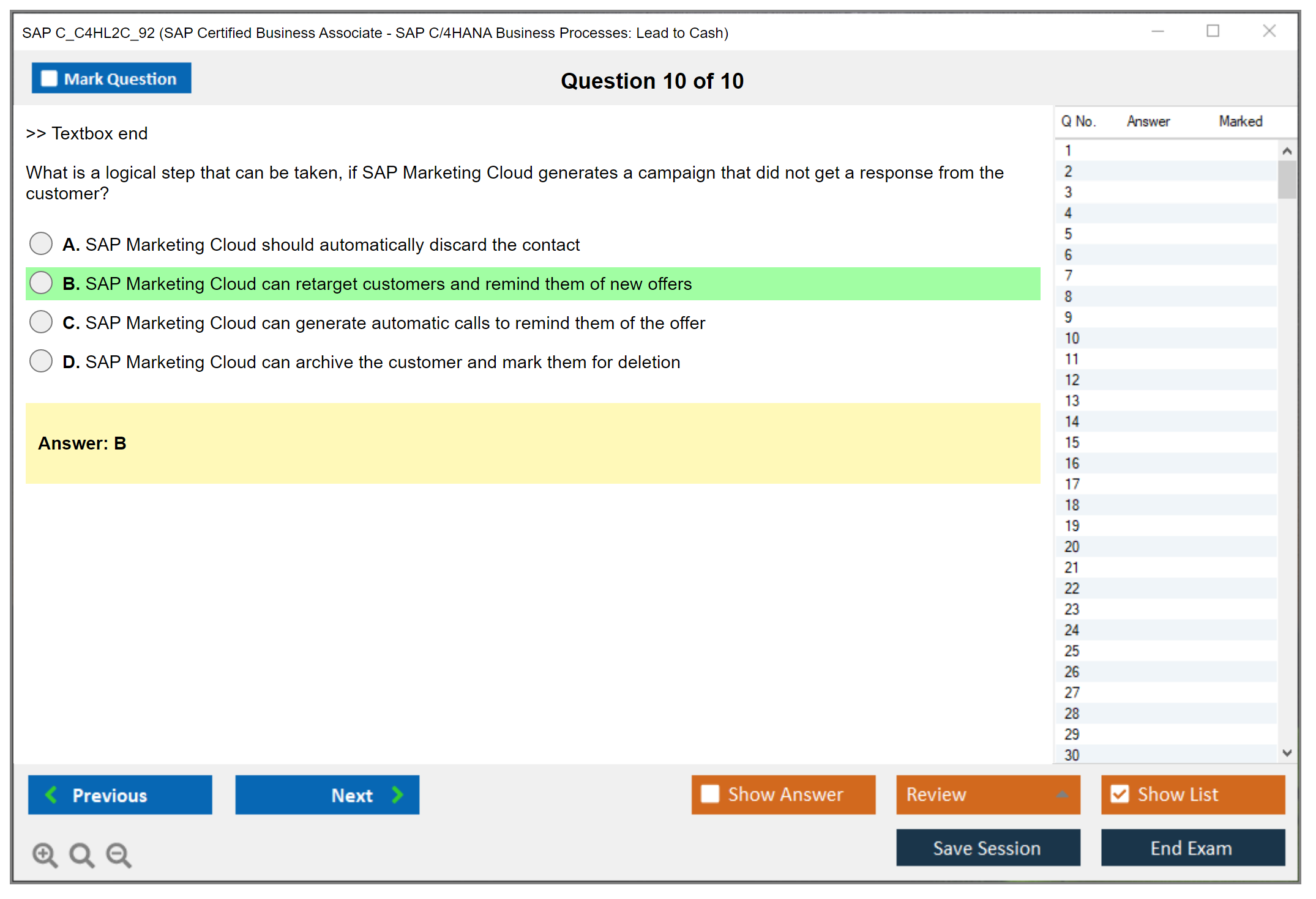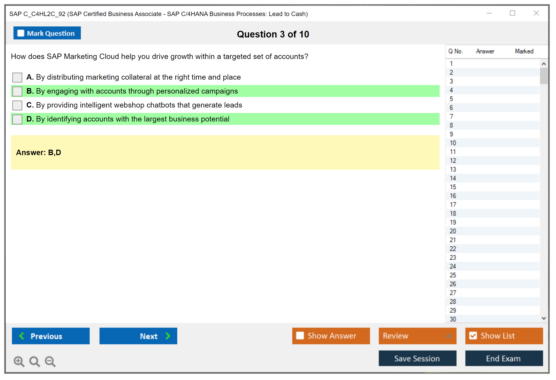 The SAP C_C4HL2C_92 (SAP Certified Business Associate - SAP C/4HANA Business Processes: Lead to Cash) exam is designed to validate the skills and knowledge of candidates in the area of SAP C/4HANA business processes, specifically focusing on the lead-to-cash process. It is aimed at individuals who want to demonstrate their understanding and abilities in leveraging SAP solutions to manage customer relationships and sales cycles effectively.