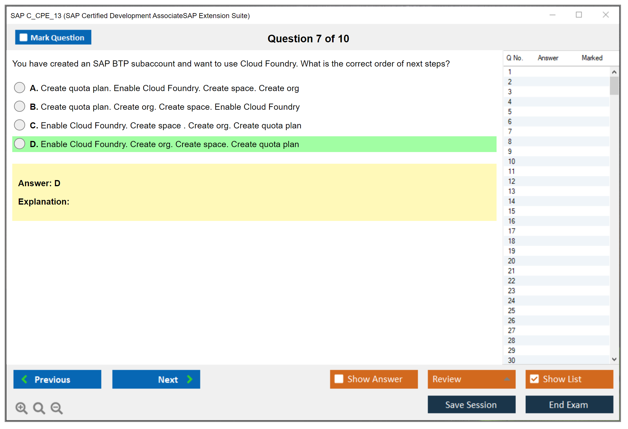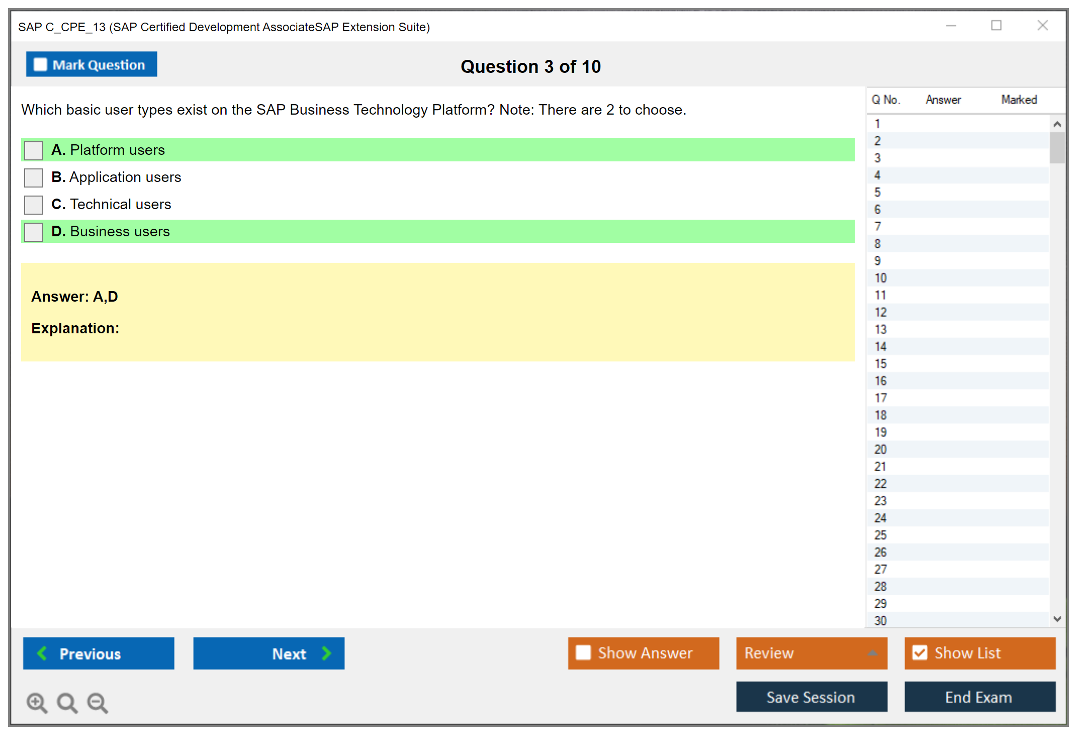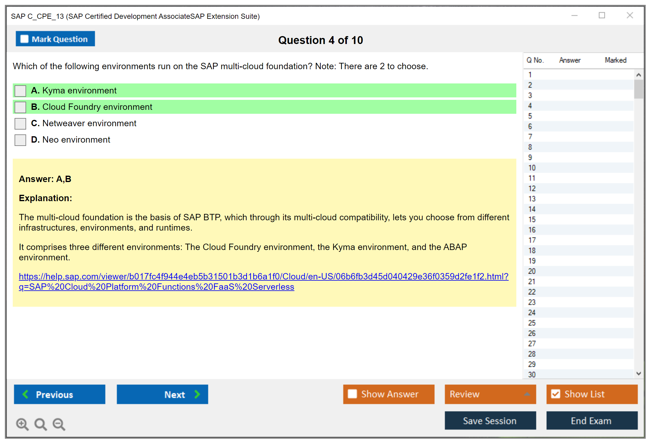 The SAP C_CPE_13 exam is aimed at individuals who want to demonstrate their expertise in SAP Extension Suite. It covers various aspects of SAP Cloud Platform, including development, deployment, and management of applications.