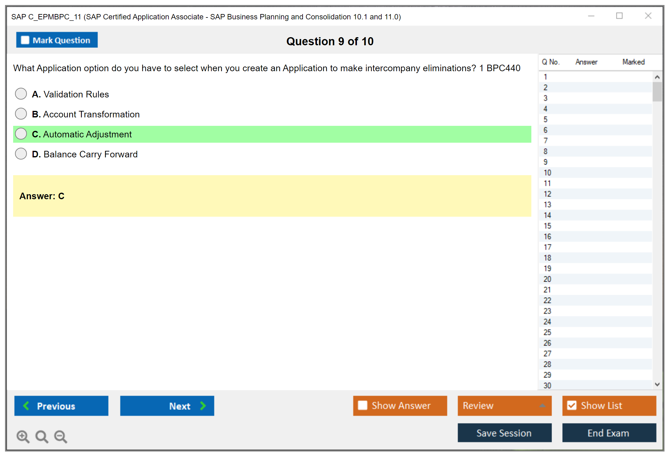 The SAP C_EPMBPC_11 exam, also known as SAP Certified Application Associate - SAP Business Planning and Consolidation 10.1 and 11.0, is designed to validate the candidate's knowledge and skills in the area of SAP Business Planning and Consolidation. This certification proves that the candidate has a fundamental understanding and in-depth technical skills to participate as a member of an SAP Business Planning and Consolidation project team.