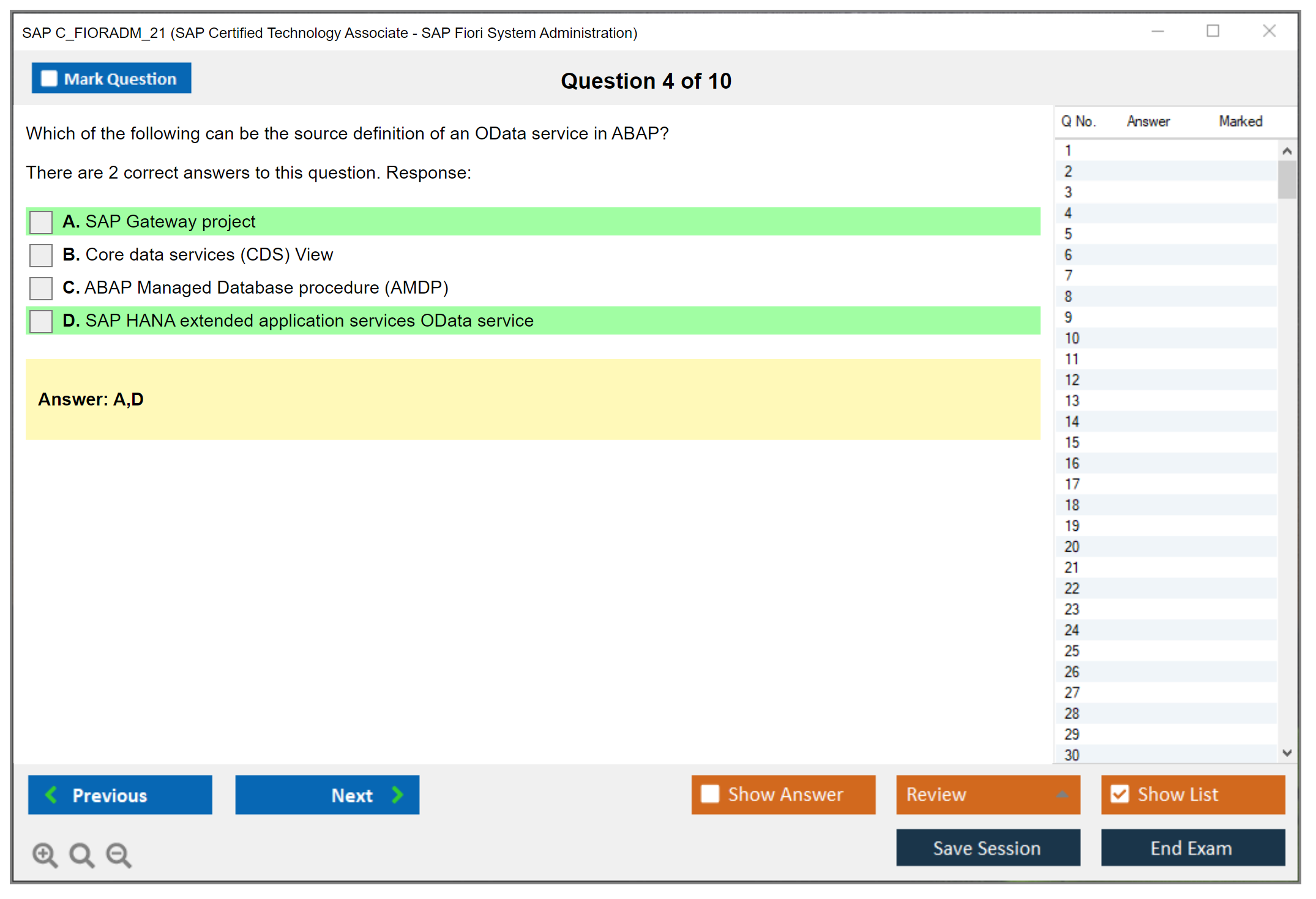 The question format of the SAP C_FIORADM_21 Exam includes multiple-choice and multiple-response questions.