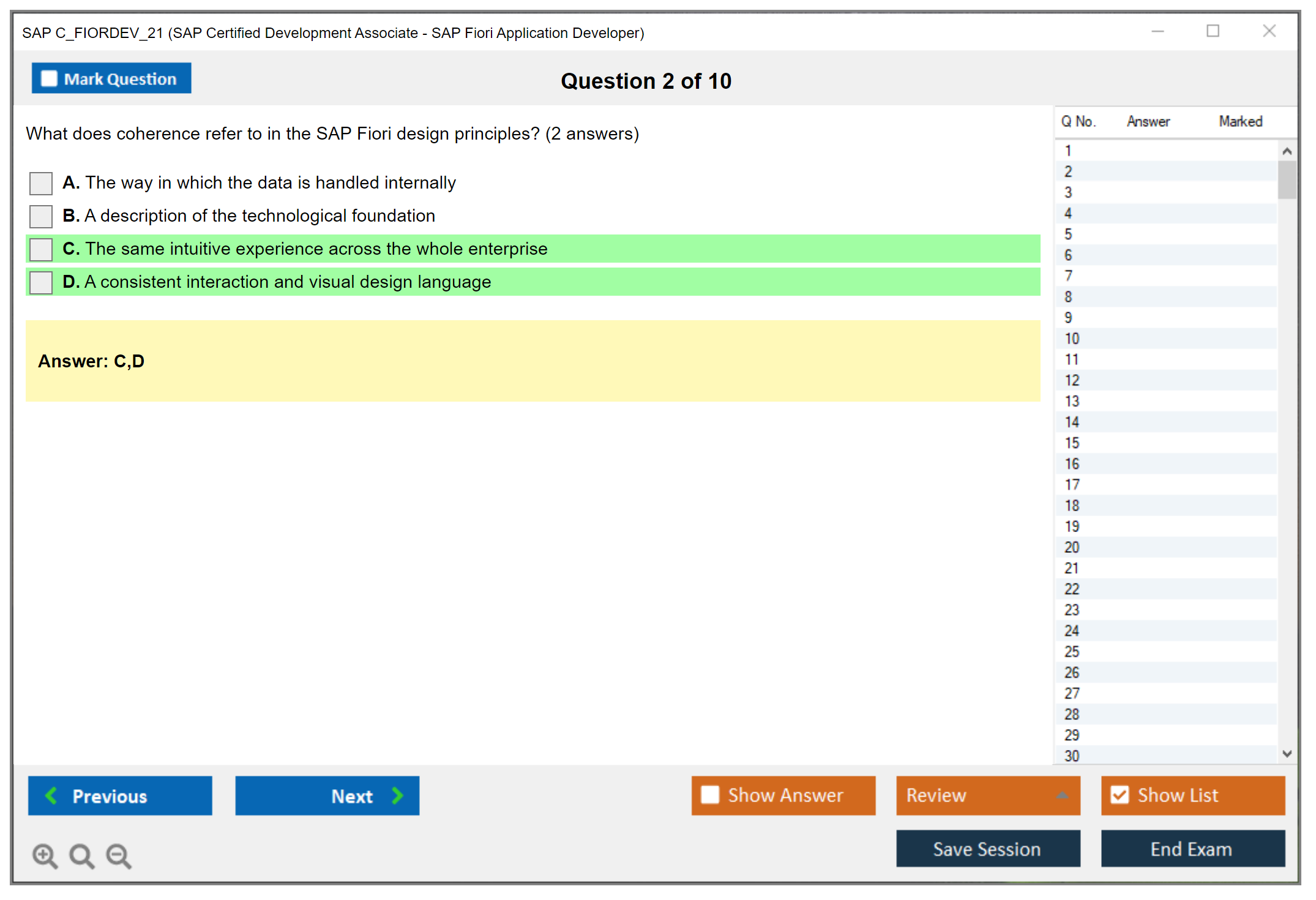 Thrilled with the quality of C_FIORDEV_21 questions from DumpsBoss! The comprehensive coverage and clear explanations ensure confidence on exam day. Trust DumpsBoss for unparalleled success!