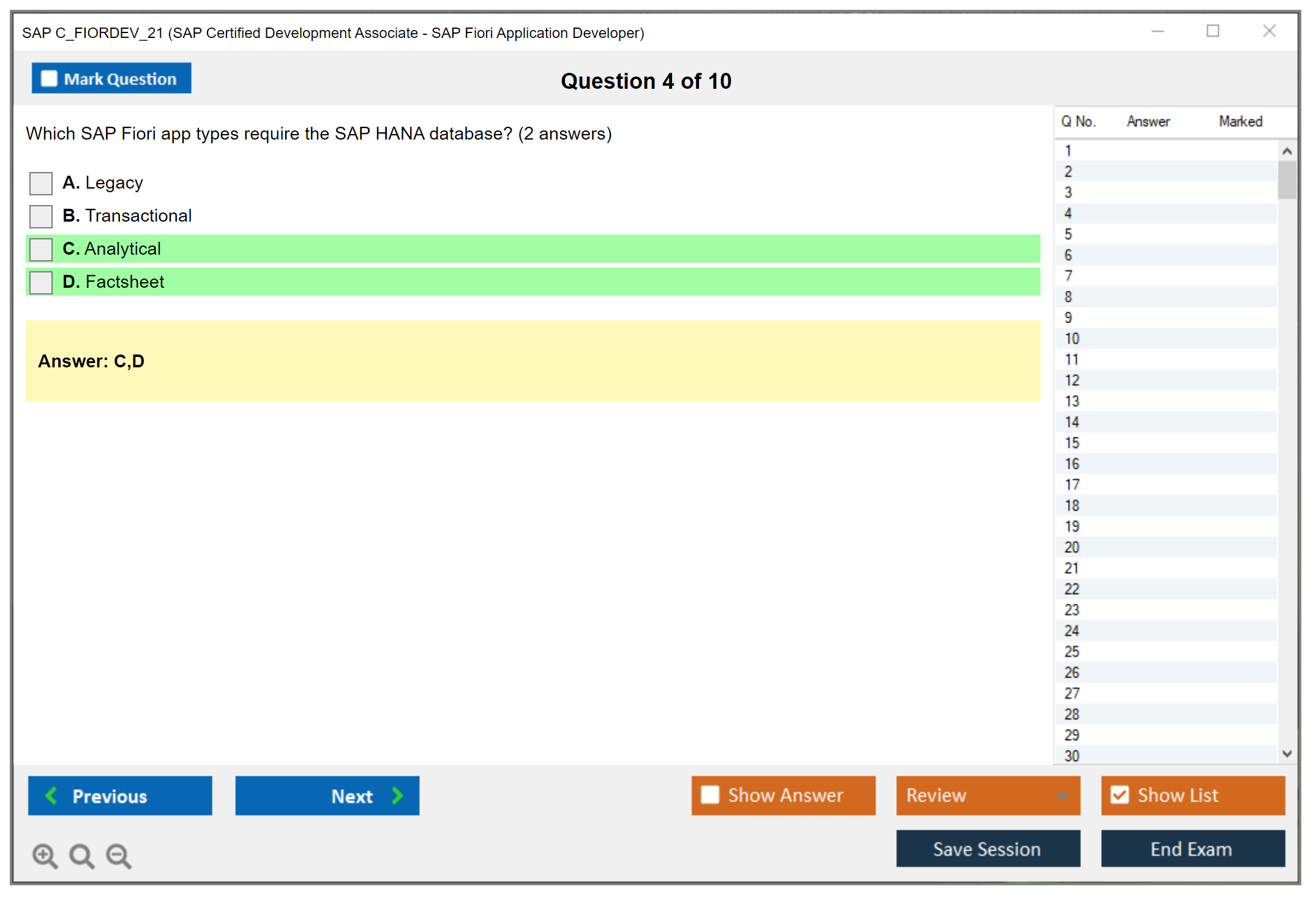 Impressed with DumpsBoss yet again! Their SAP Fiori Application Developer C_FIORDEV_21 exam questions are spot-on. The variety of questions and explanations helped me grasp concepts effortlessly. With DumpsBoss, success is inevitable!