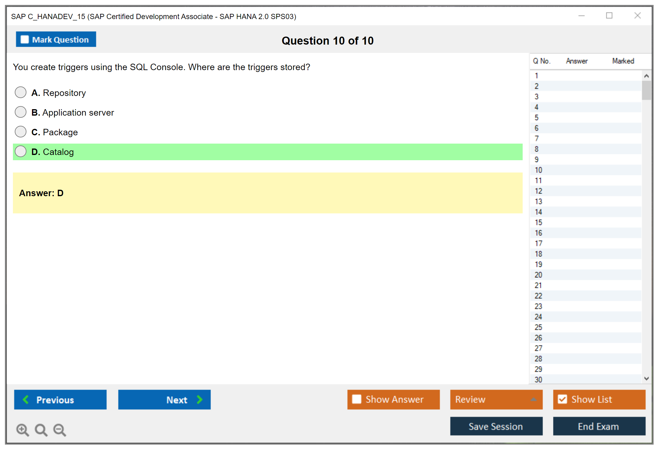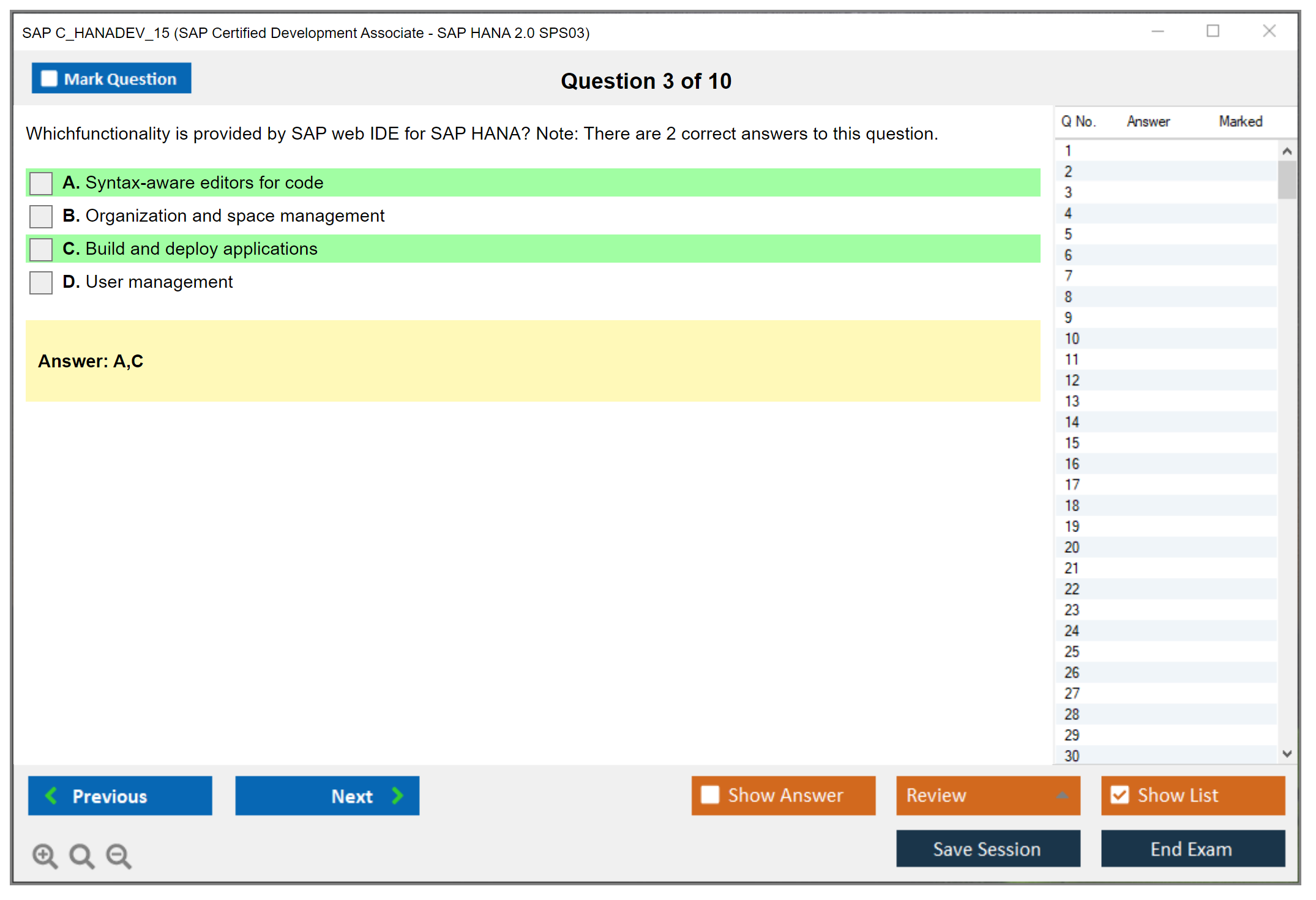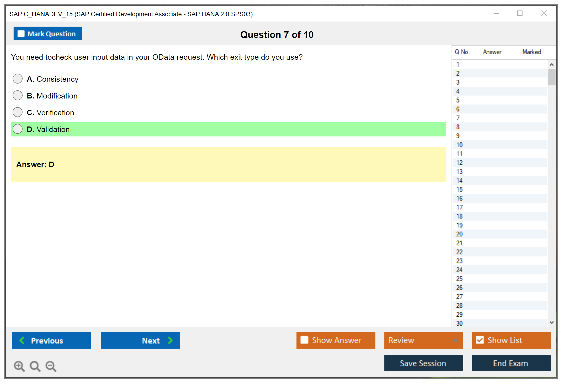 The SAP C_HANADEV_15 (SAP Certified Development Associate - SAP HANA 2.0 SPS03) exam certifies that the candidate has the knowledge and skills in the area of SAP HANA 2.0 SPS03 for the profile of an SAP HANA application developer.