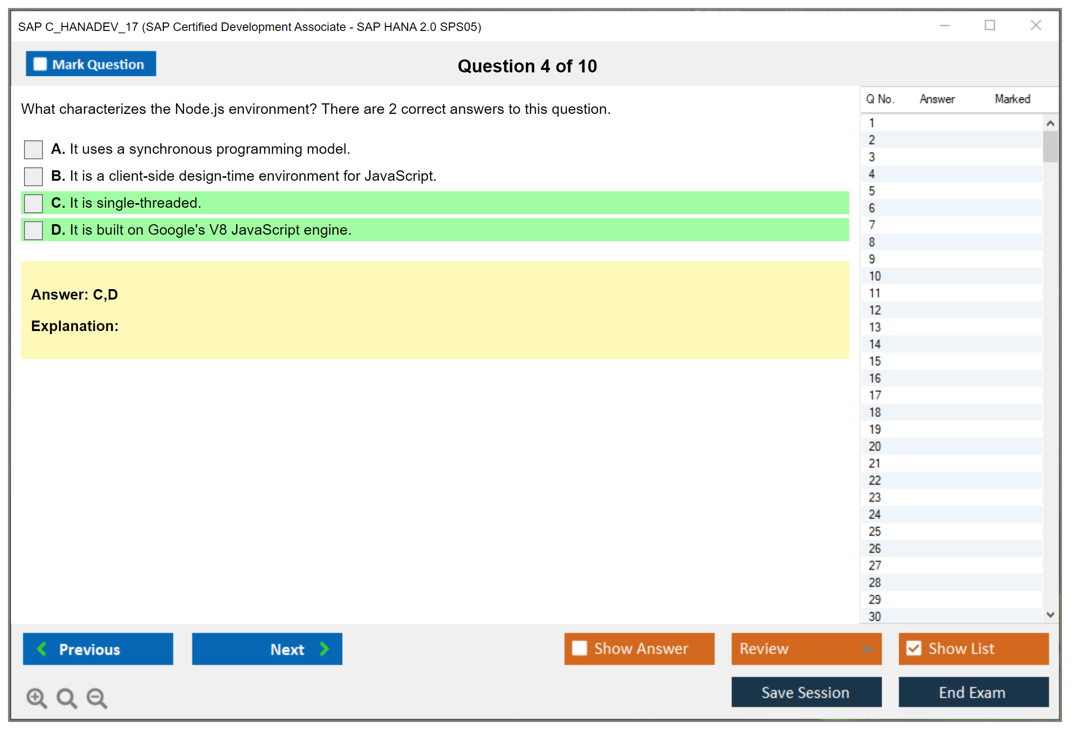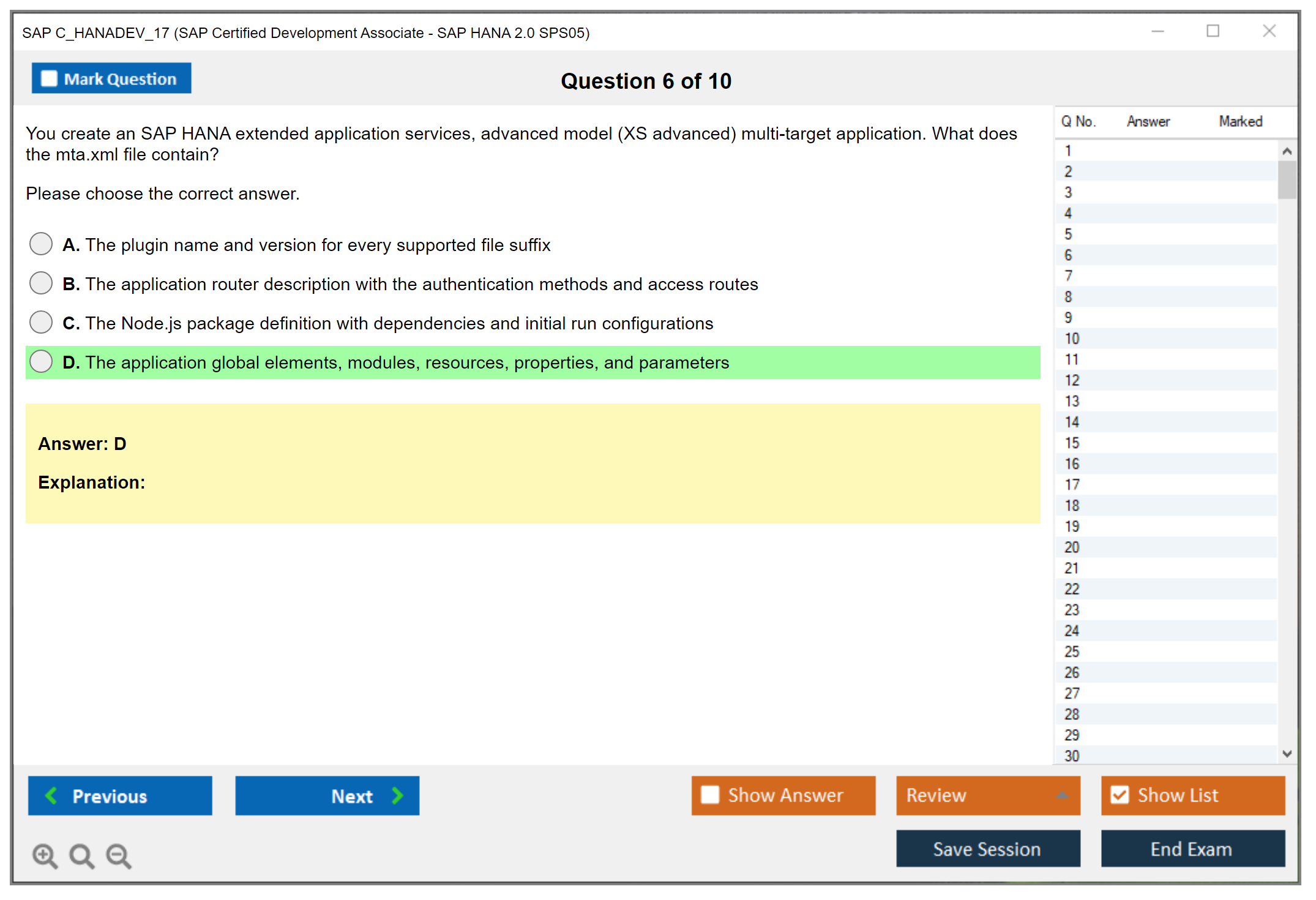 What are the Sample Questions of SAP C_HANADEV_17 Exam?
