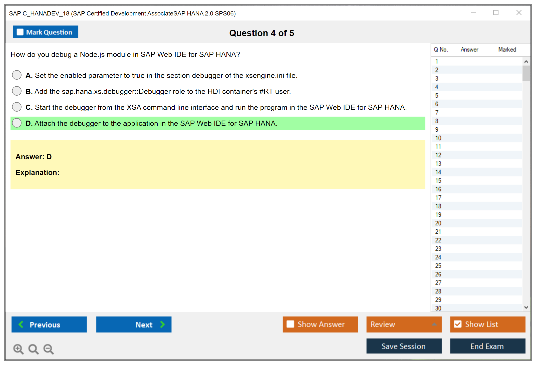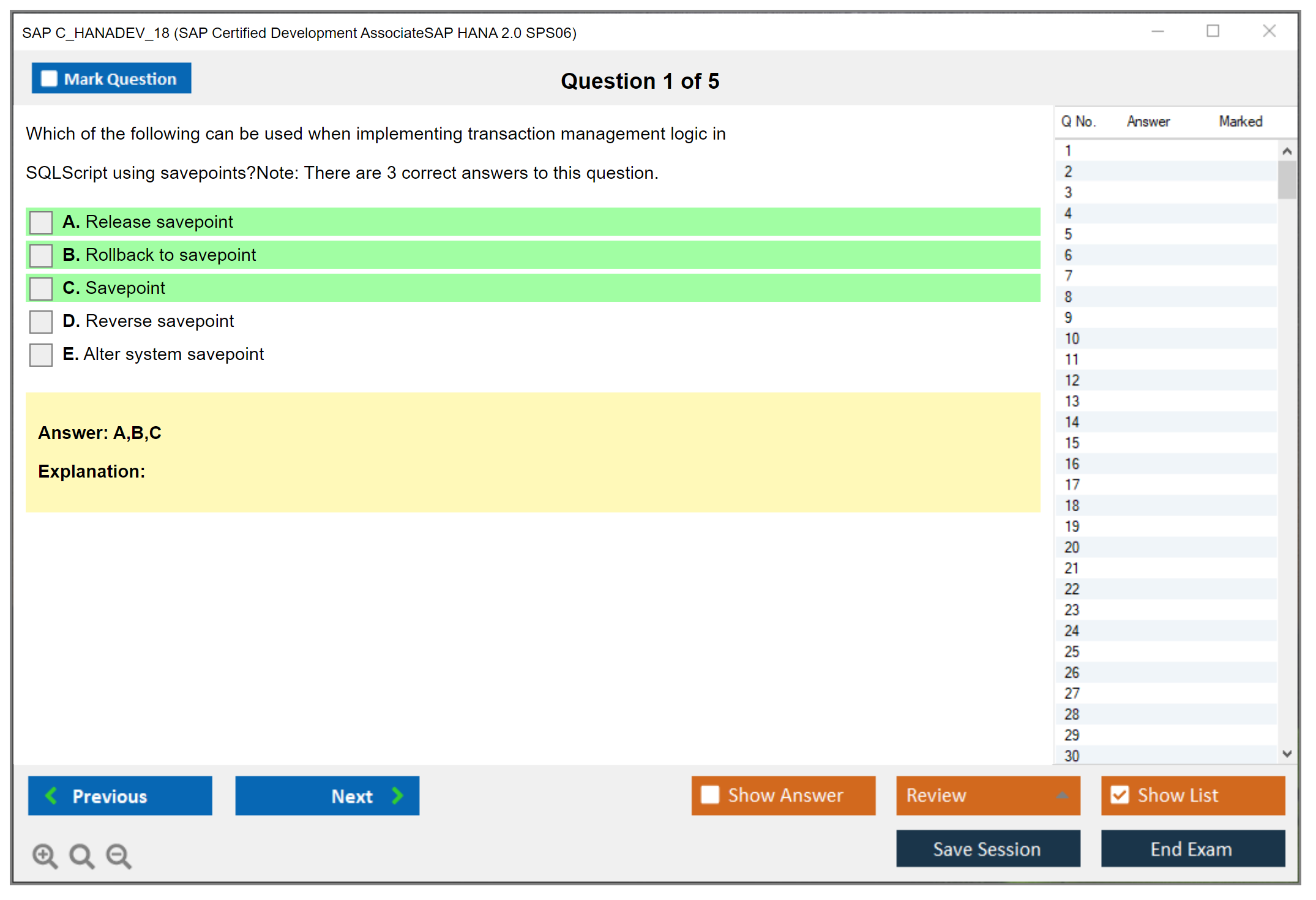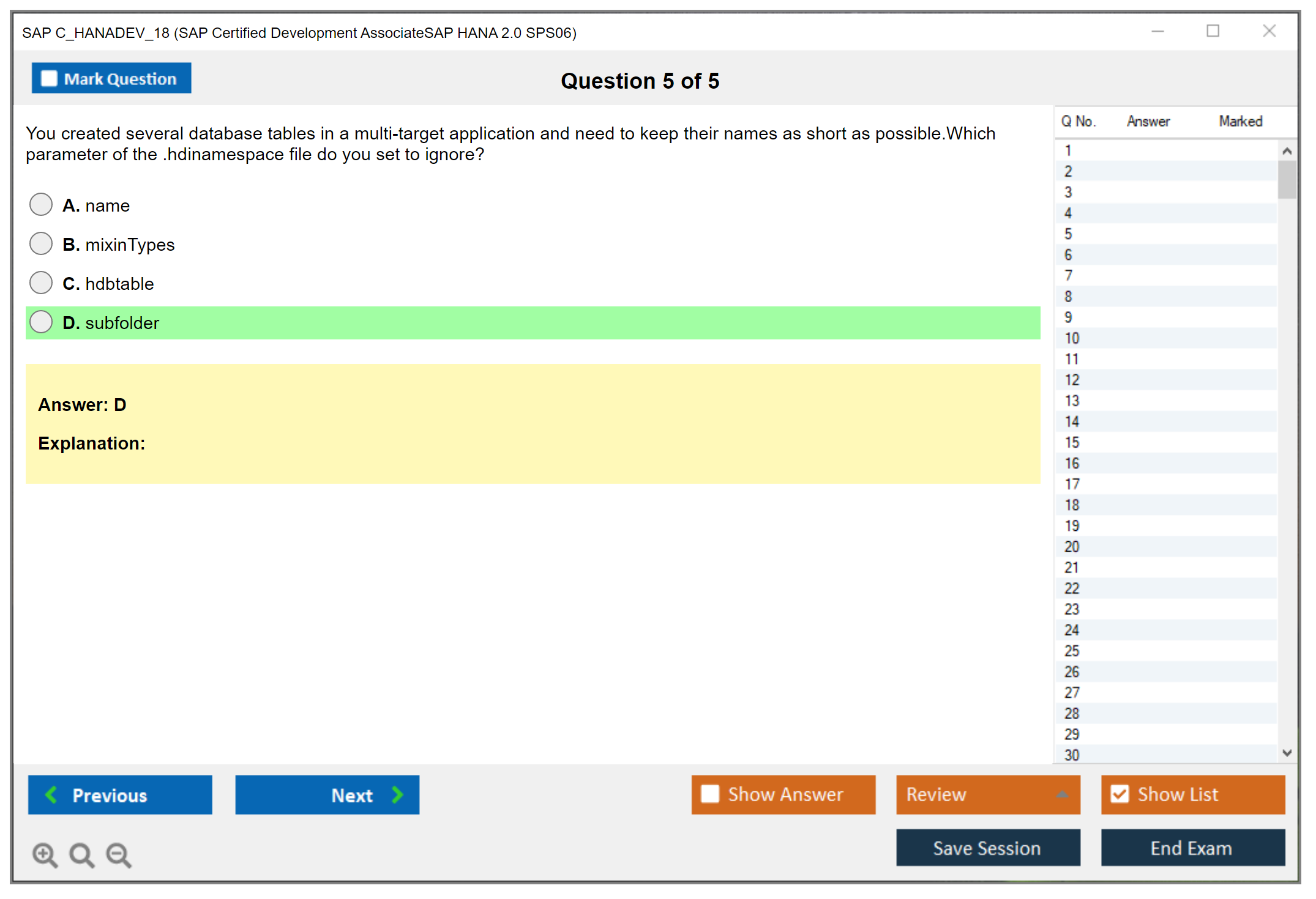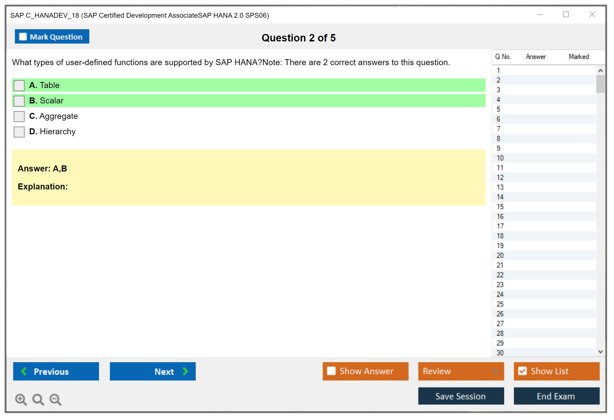 What are the Sample Questions of SAP C_HANADEV_18 Exam?