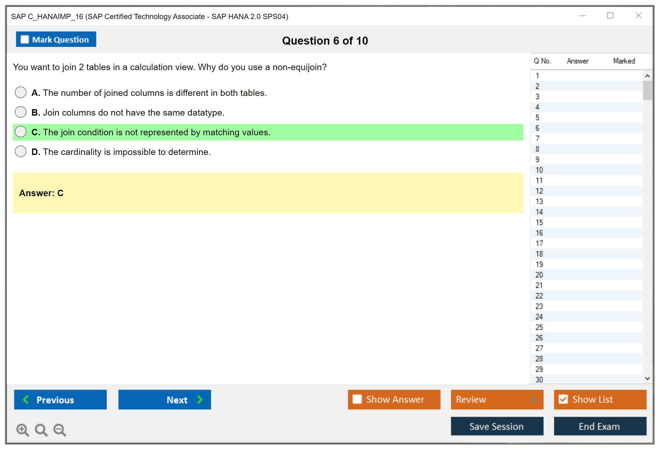 What are the Sample Questions of SAP C_HANAIMP_16 Exam?