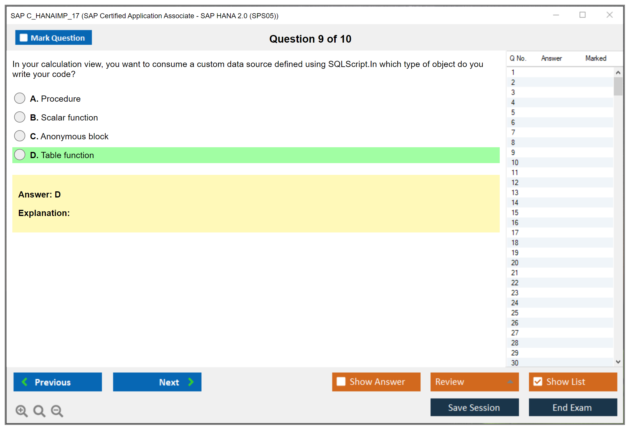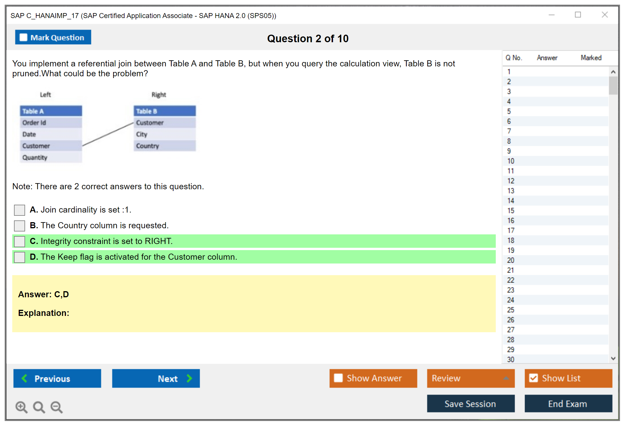 What are the Sample Questions of SAP C_HANAIMP_17 Exam?
