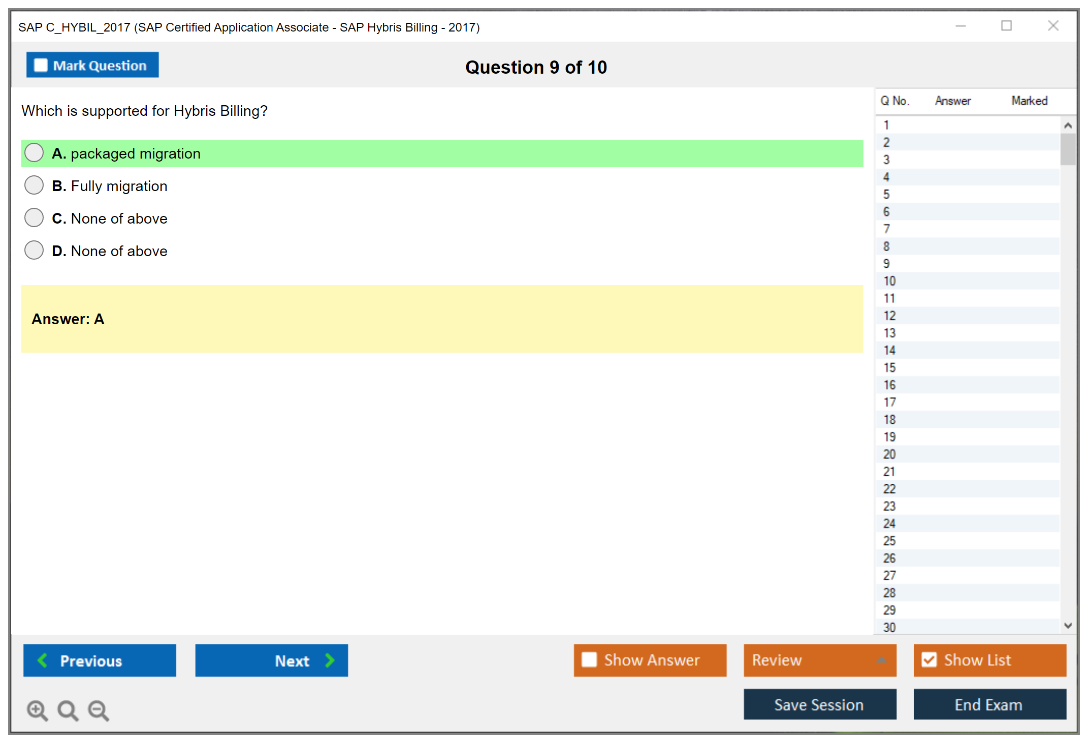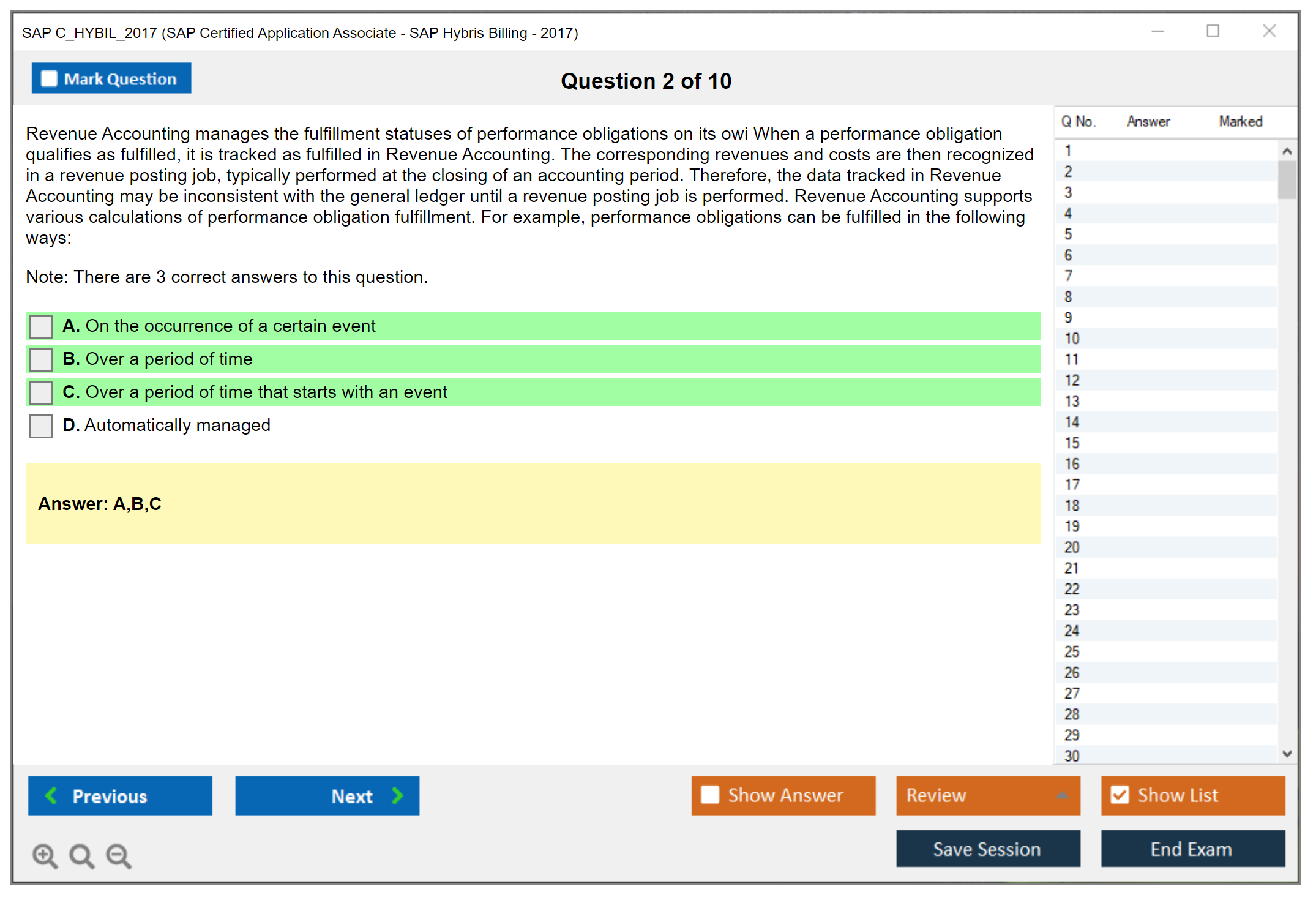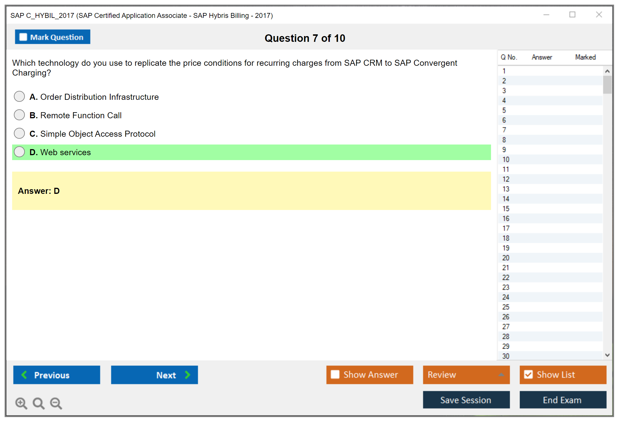 The SAP C_HYBIL_2017 Exam, also known as the SAP Certified Application Associate - SAP Hybris Billing - 2017, is designed to validate the candidate's knowledge and skills in the area of SAP Hybris Billing. This certification proves that the candidate has a fundamental understanding and in-depth technical skills to participate as a member of a project team in a mentoring role.