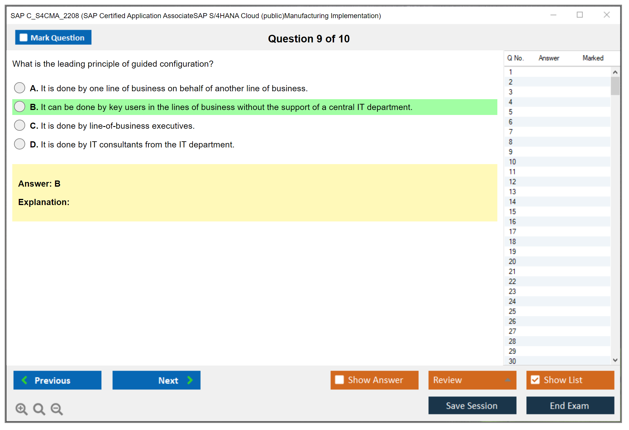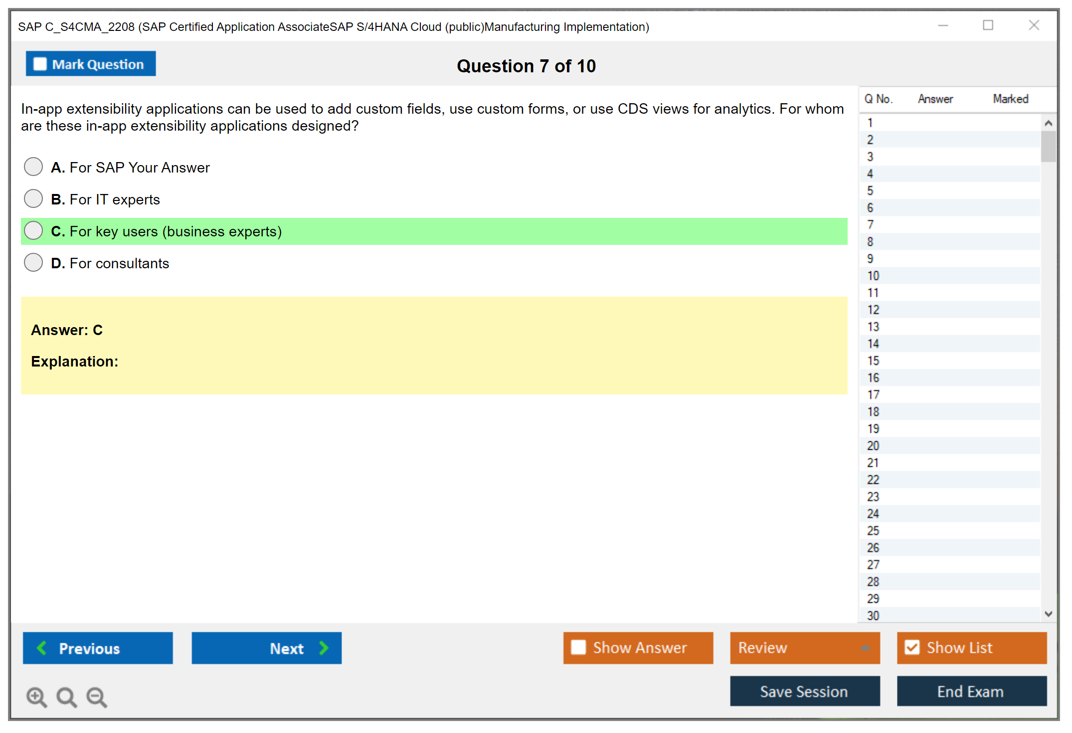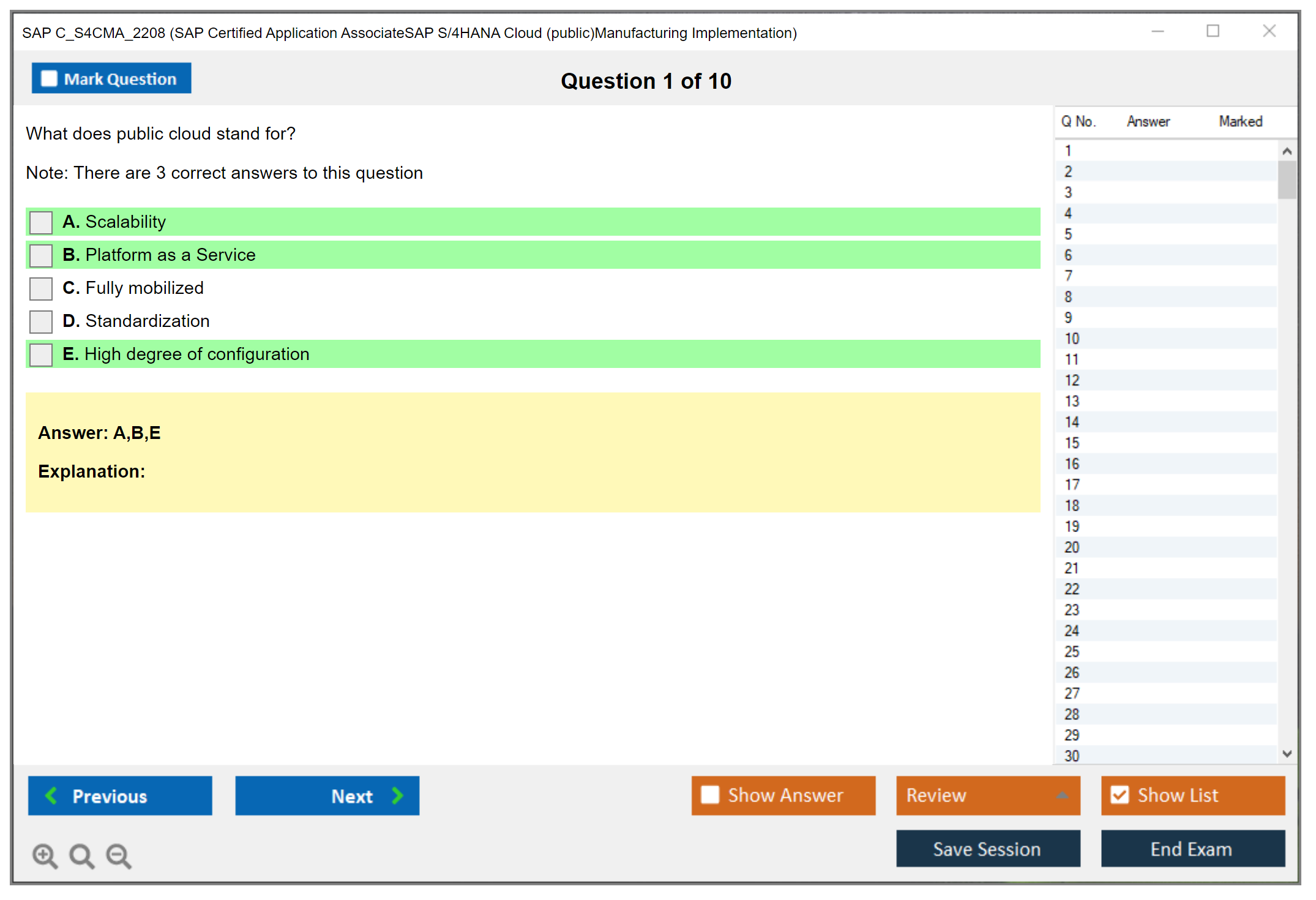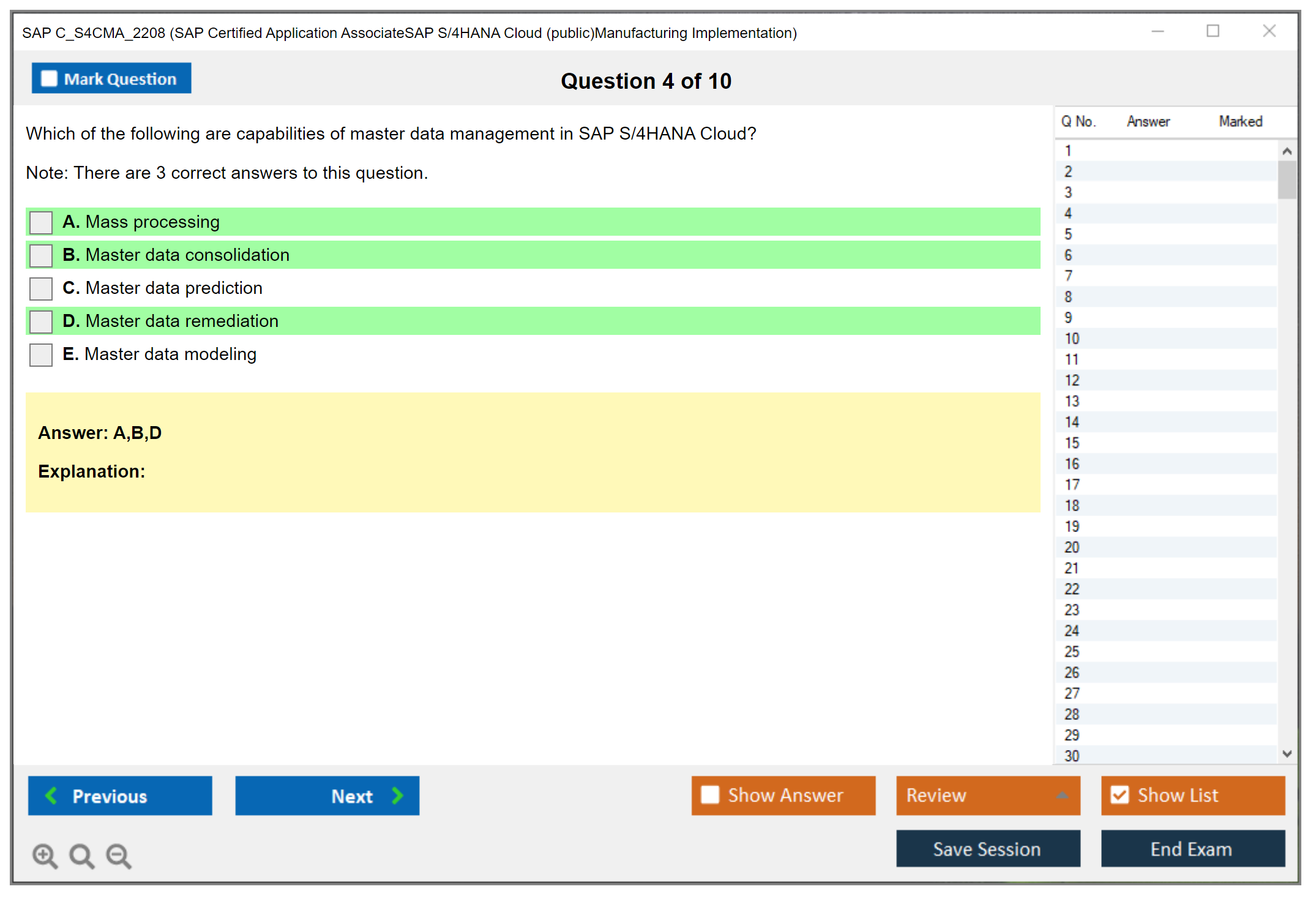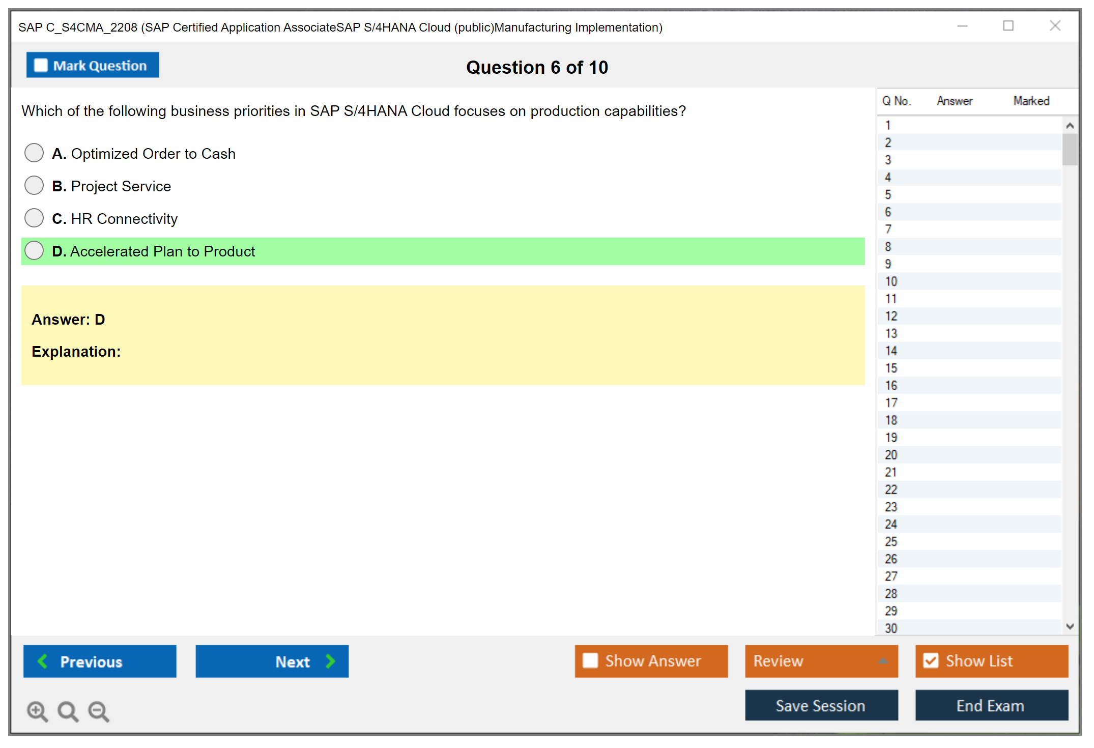 Note: SAP C_S4CMA_2208 (SAP Certified Application AssociateSAP S/4HANA Cloud (public)Manufacturing Implementation) will not receive any new updates.