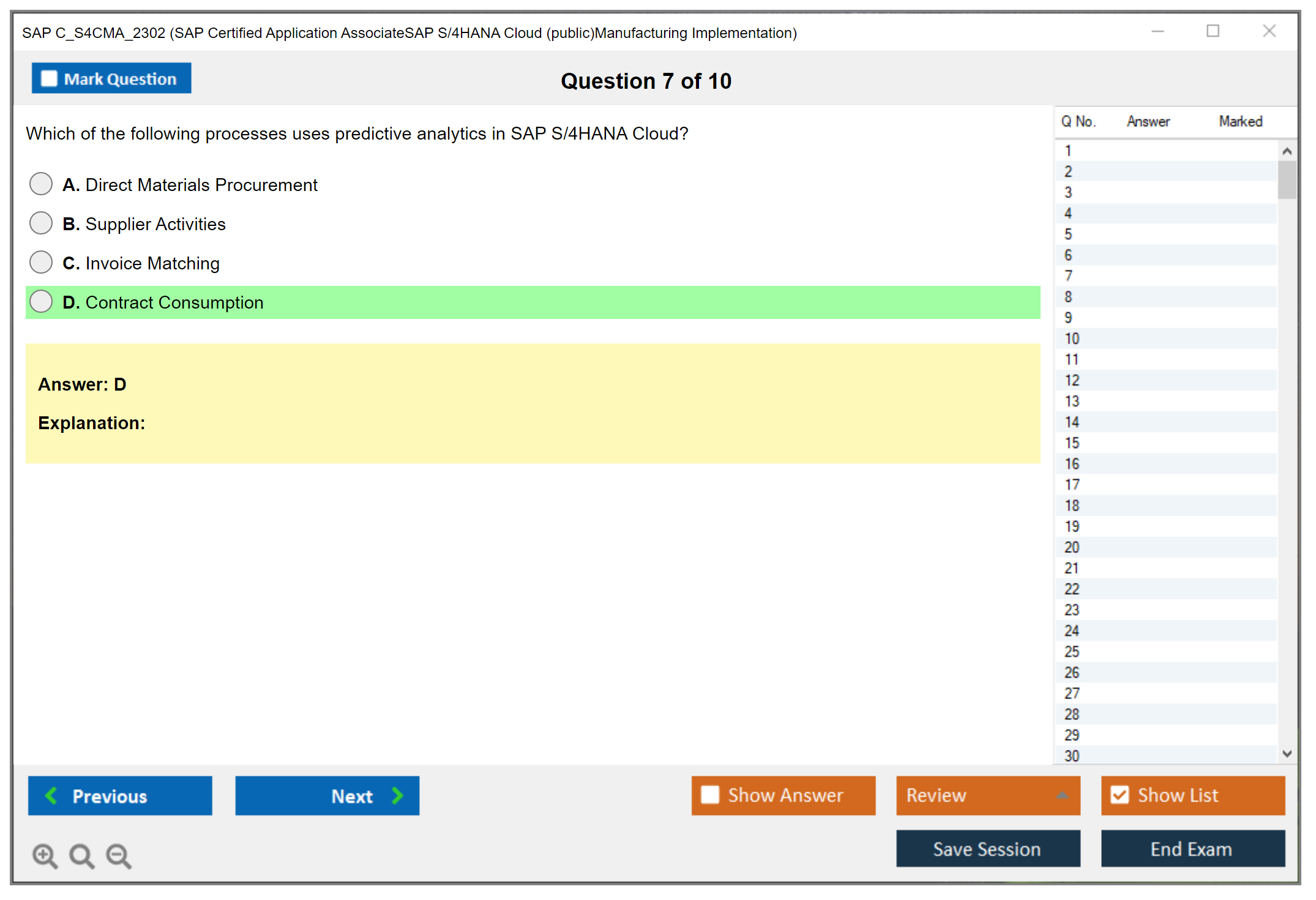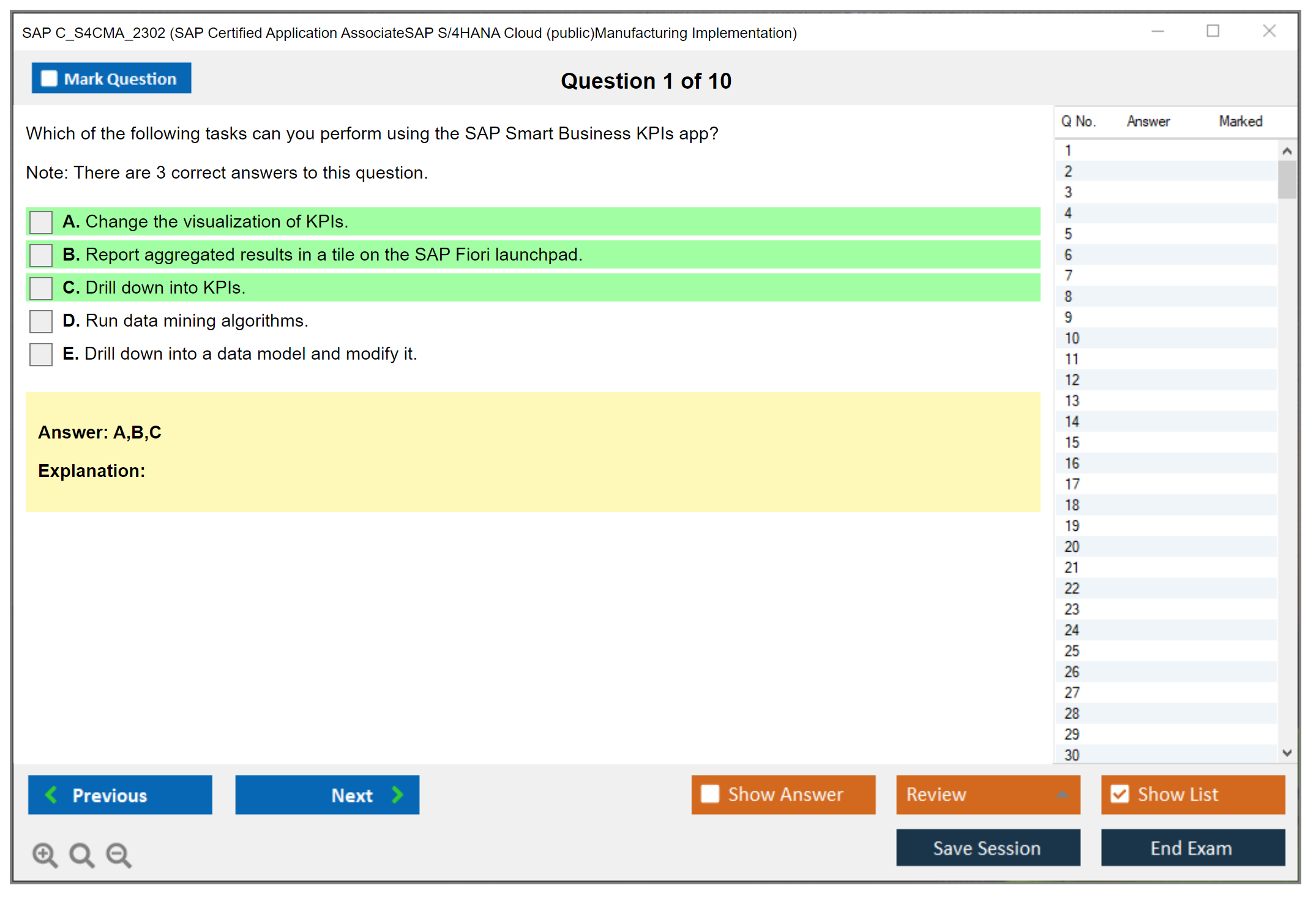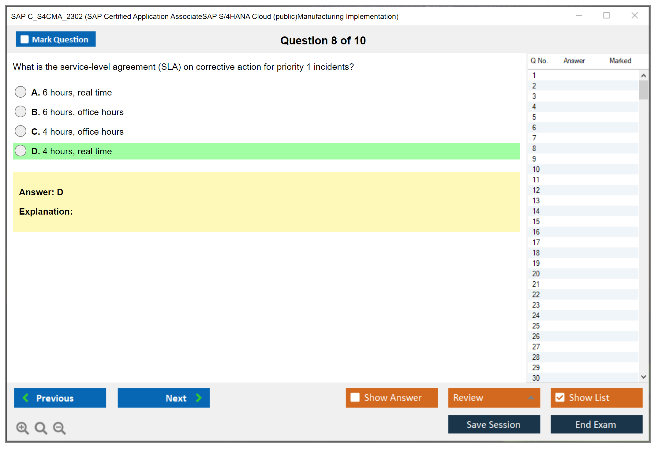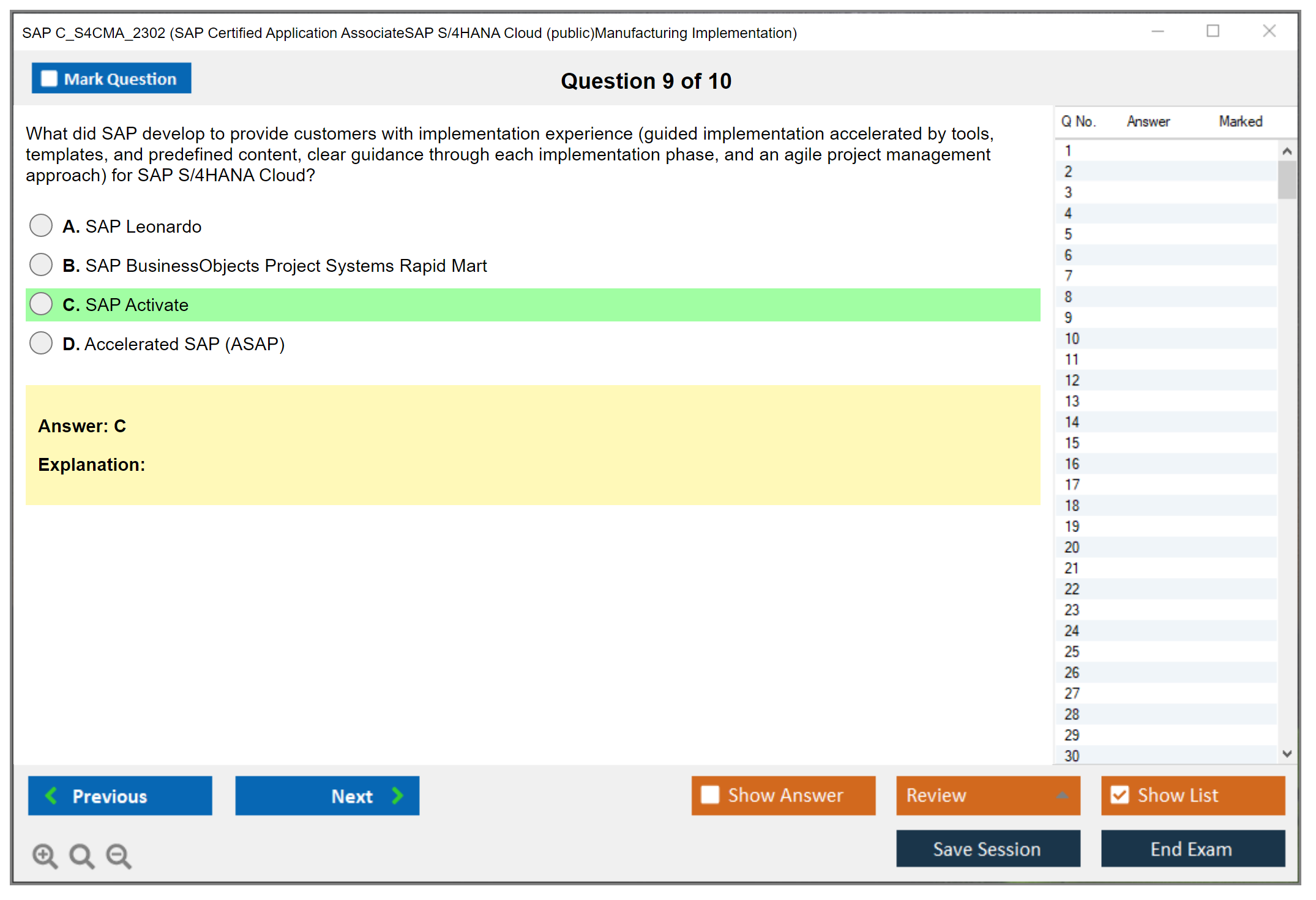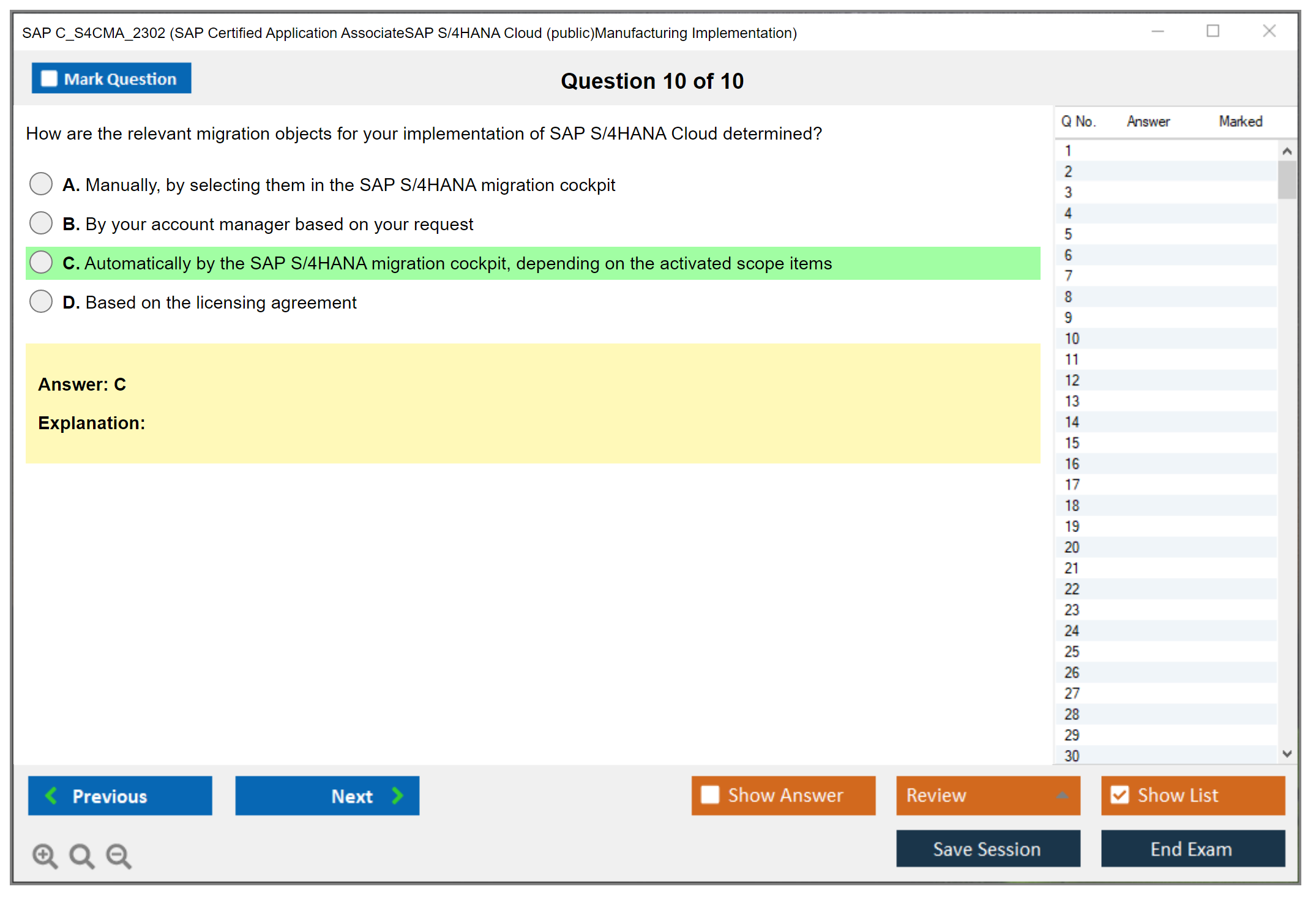 The SAP C_S4CMA_2302 exam, also known as SAP Certified Application Associate - SAP S/4HANA Cloud (public) - Manufacturing Implementation, validates that the candidate possesses the fundamental and core knowledge required for the SAP S/4HANA Cloud Manufacturing line of business.