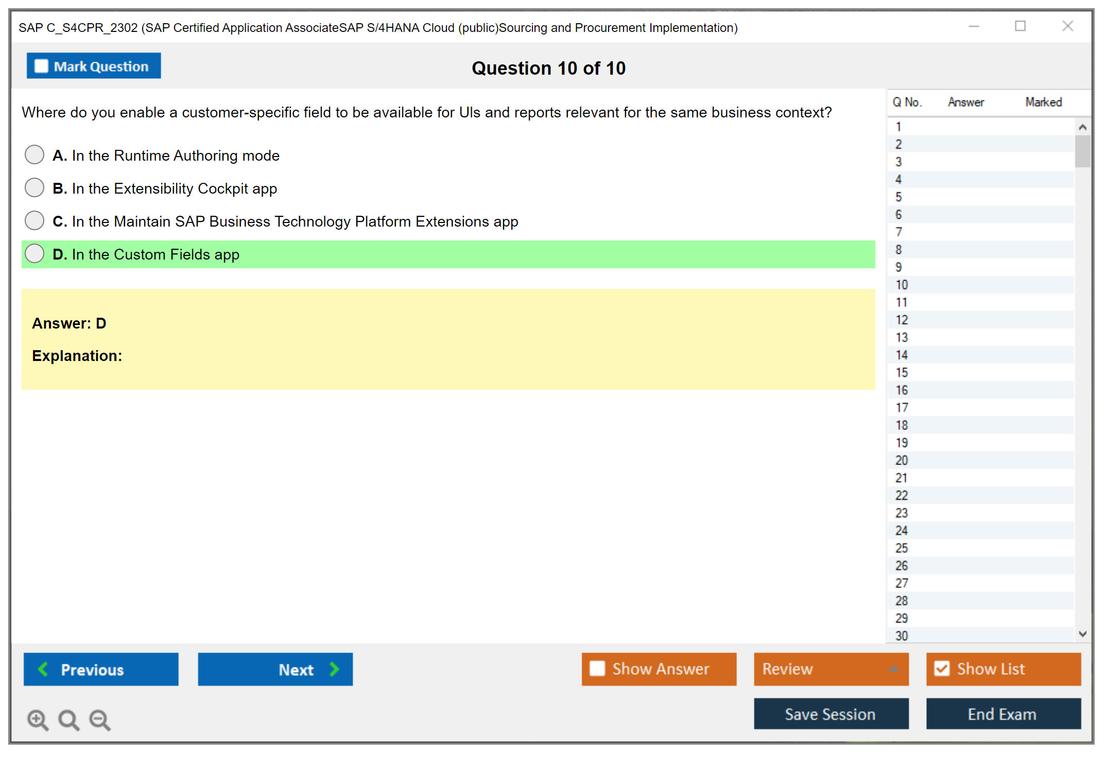 The SAP C_S4CPR_2302 exam, also known as SAP Certified Application Associate - SAP S/4HANA Cloud (public) - Sourcing and Procurement Implementation, validates that the candidate possesses the fundamental and core knowledge required of the SAP S/4HANA Sourcing and Procurement profile. This certification proves that the candidate has an overall understanding and in-depth technical skills to participate as a member of an SAP S/4HANA Cloud (public) implementation project team with a focus on Sourcing and Procurement in a mentored role.