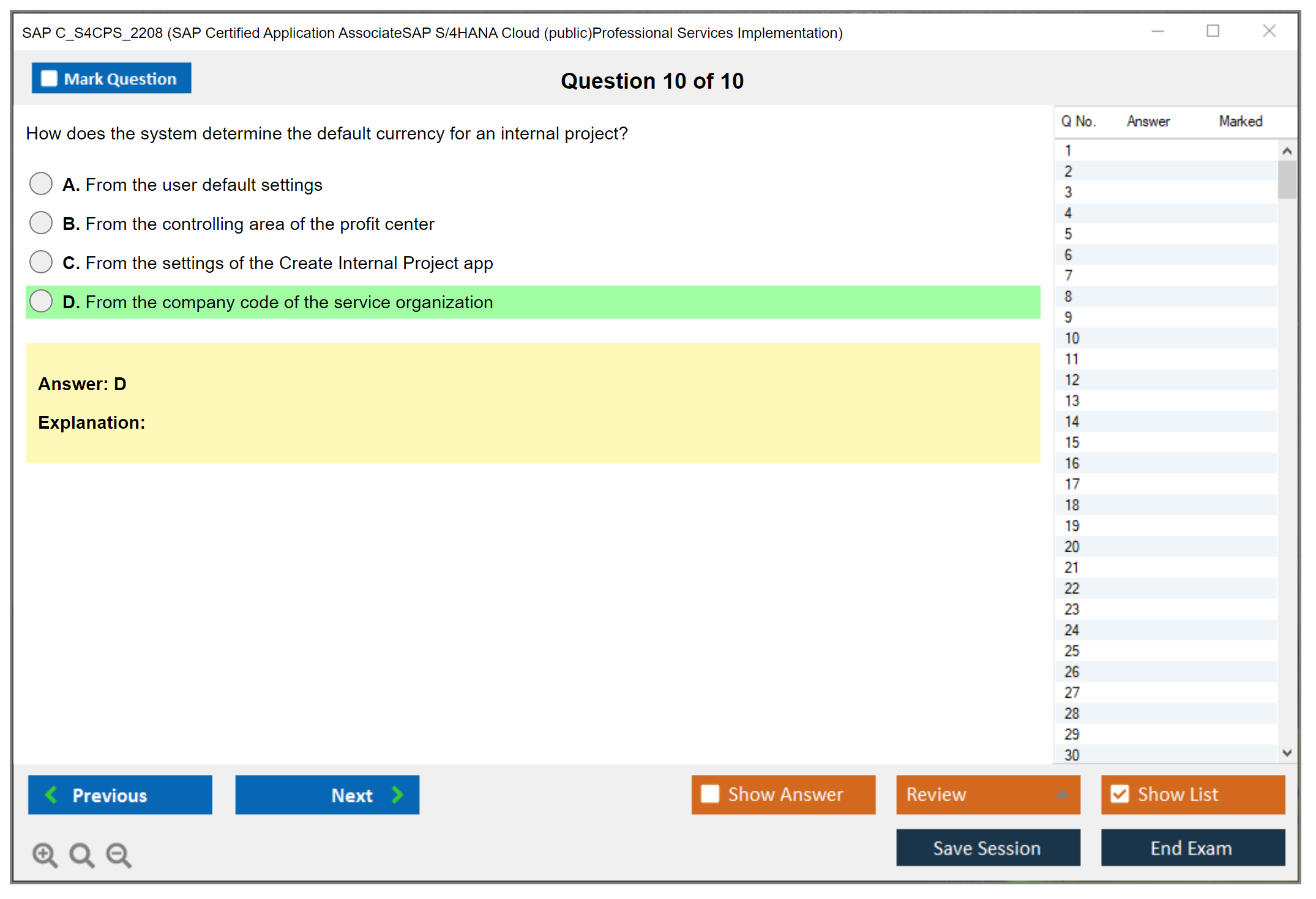 The SAP C_S4CPS_2208 exam is a certification test aimed at assessing the candidate's ability to implement SAP S/4HANA Cloud for Professional Services. It covers various aspects of the implementation process, including configuration, integration, and management of the solution.