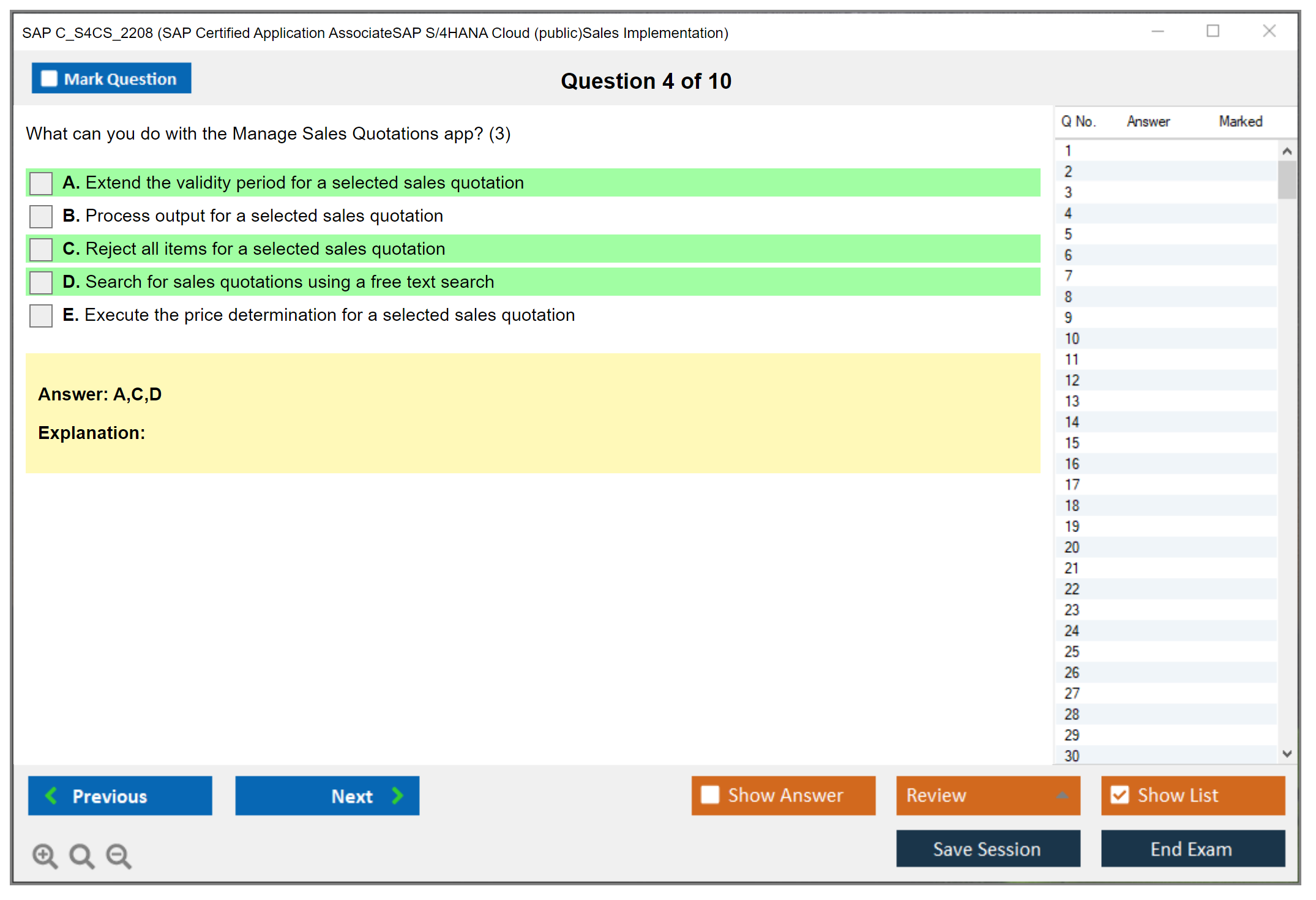Note: SAP C_S4CS_2208 (SAP Certified Application AssociateSAP S/4HANA Cloud (public)Sales Implementation) will not receive any new updates.