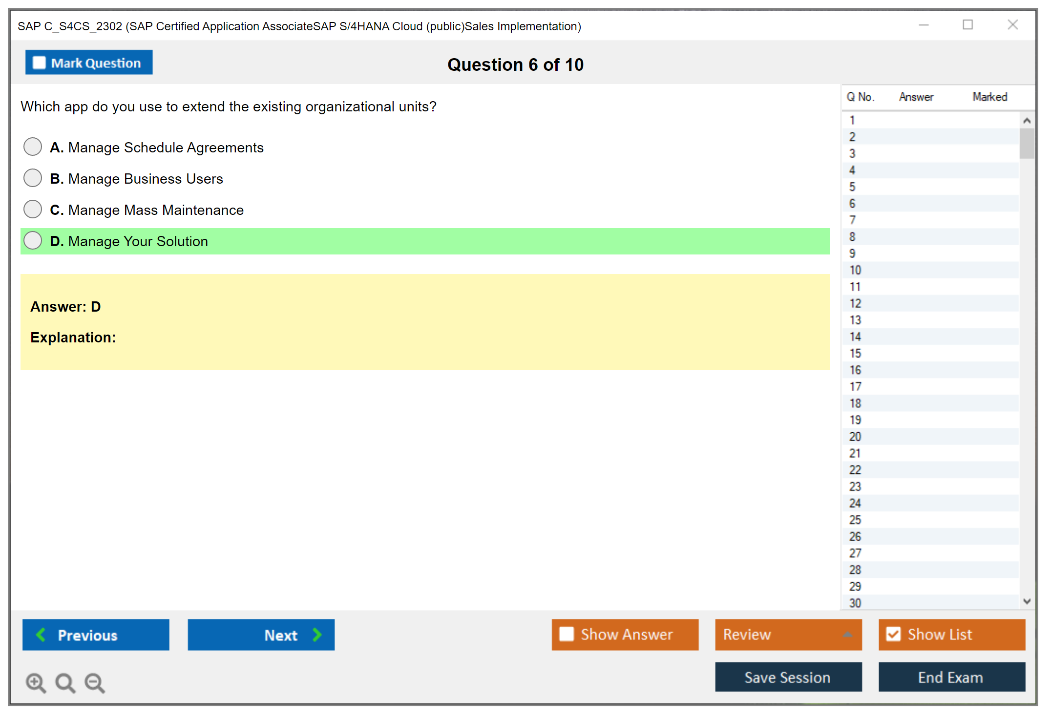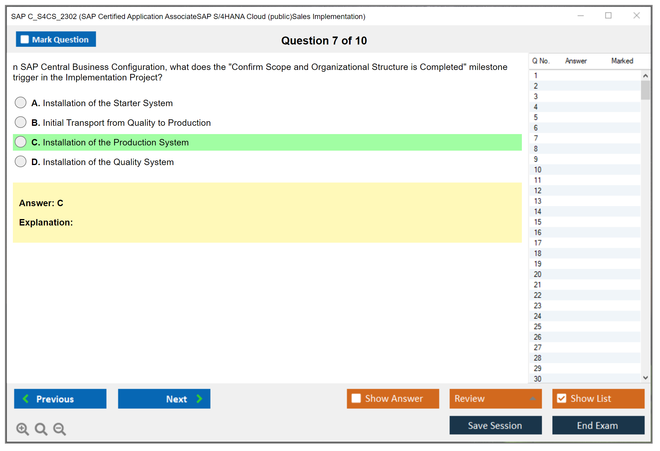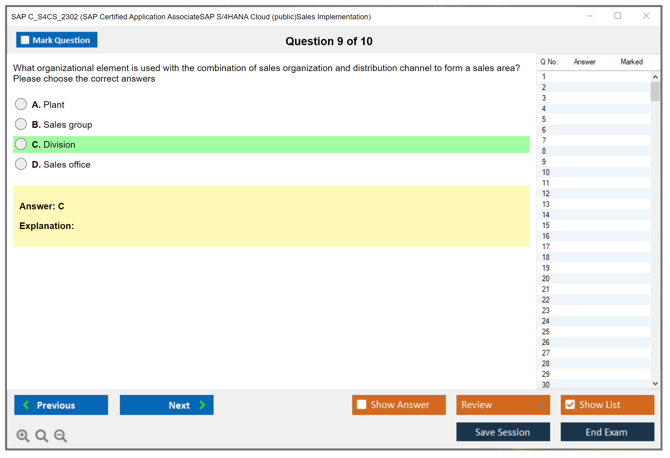 The SAP C_S4CS_2302 exam, also known as SAP Certified Application Associate - SAP S/4HANA Cloud (public) - Sales Implementation, is designed to validate the candidate's knowledge and skills in implementing SAP S/4HANA Cloud (public) in the sales domain. The certification ensures that the candidate has a comprehensive understanding of the subject, including configuration, business processes, and integration with other modules.