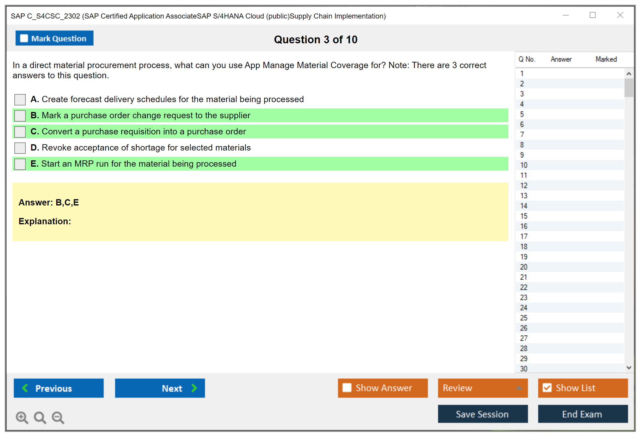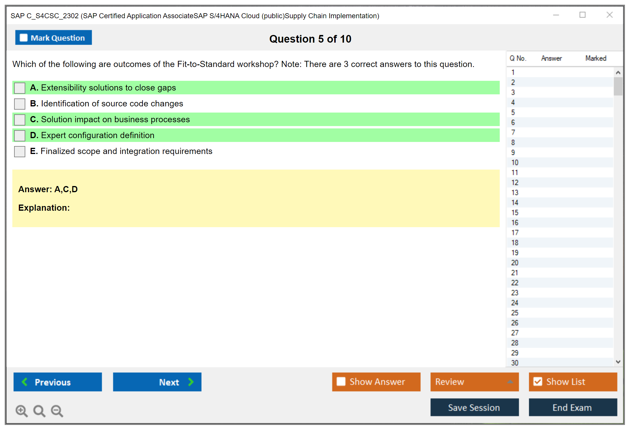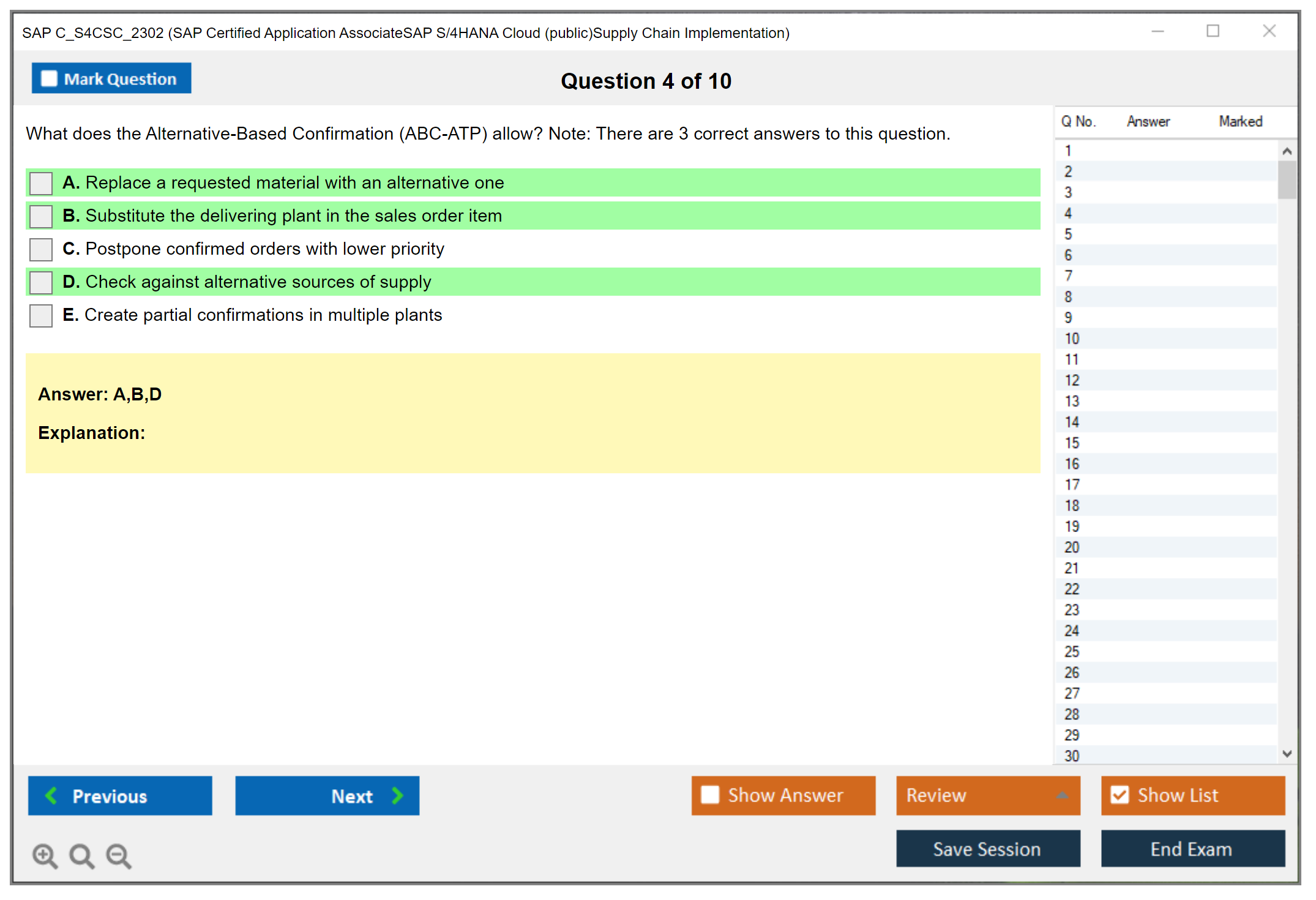 The SAP C_S4CSC_2302 exam is designed to assess a candidate's understanding of SAP S/4HANA Cloud (public) solutions, particularly in the context of supply chain implementation. It covers various aspects, including configuration, integration, and best practices for deploying SAP S/4HANA Cloud in a supply chain environment.