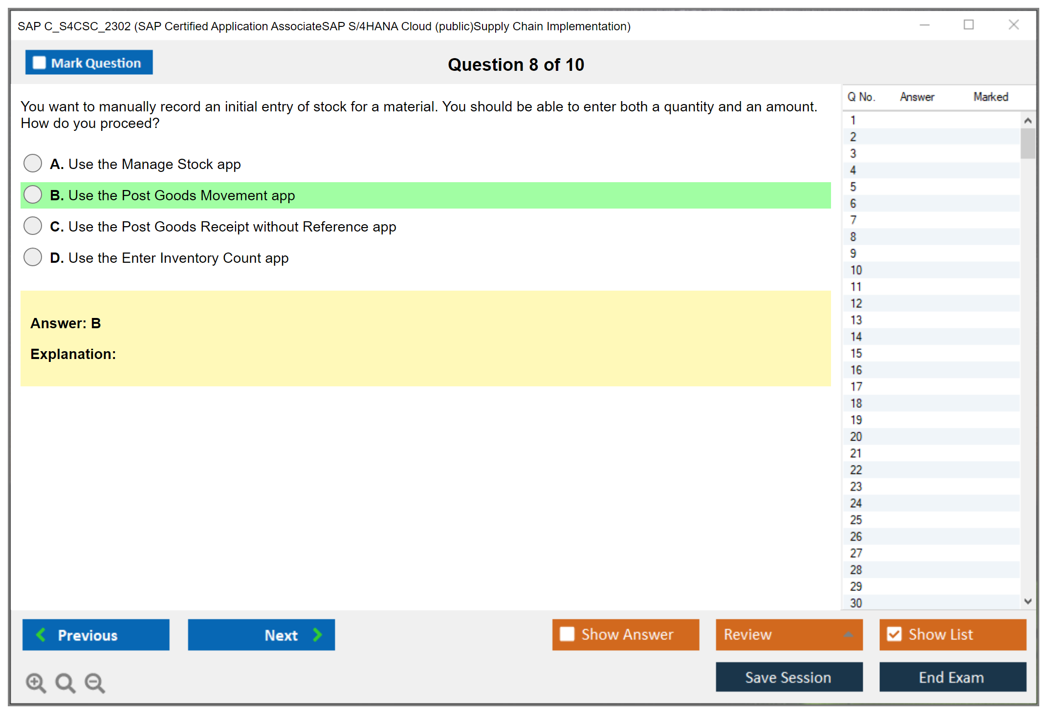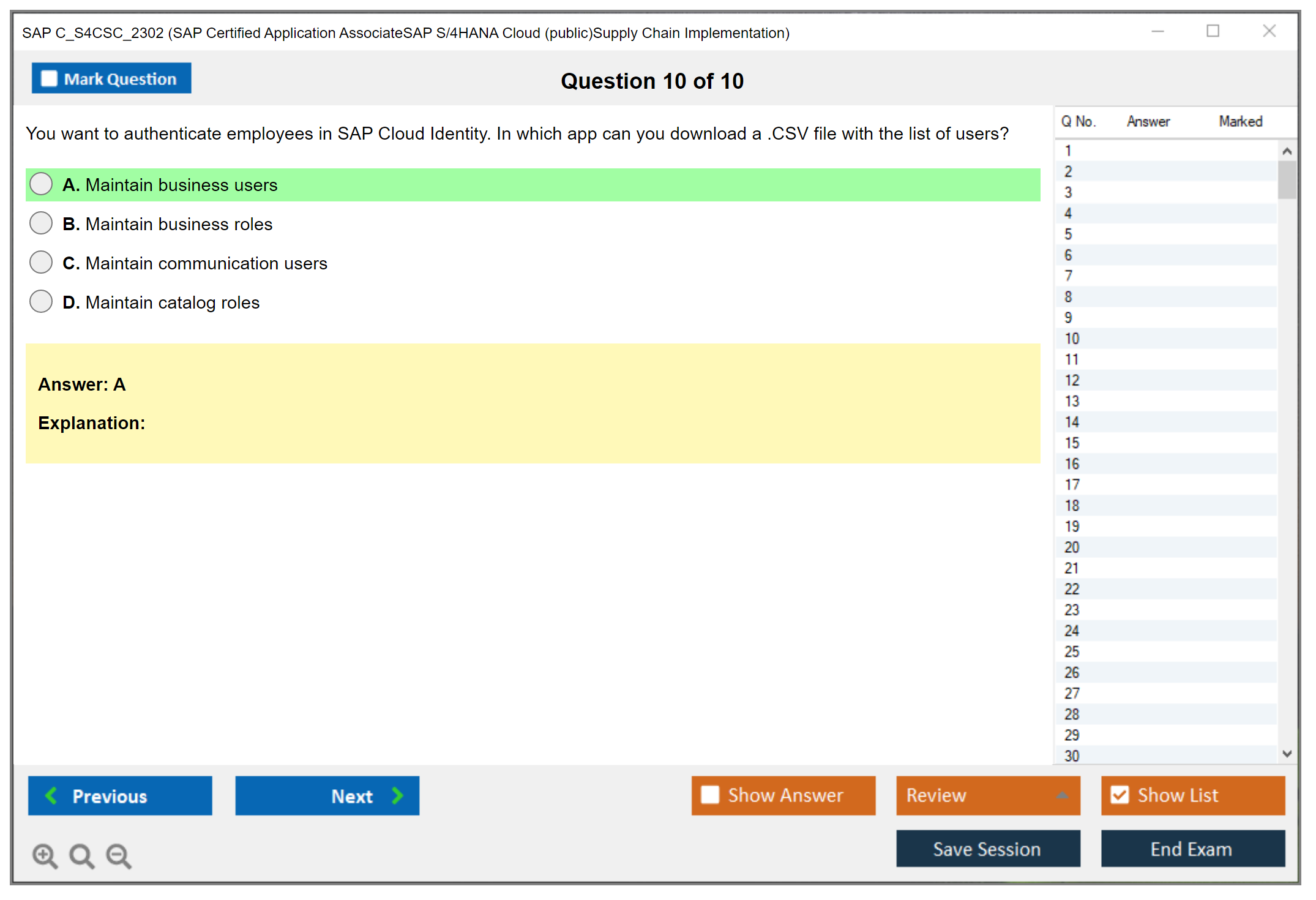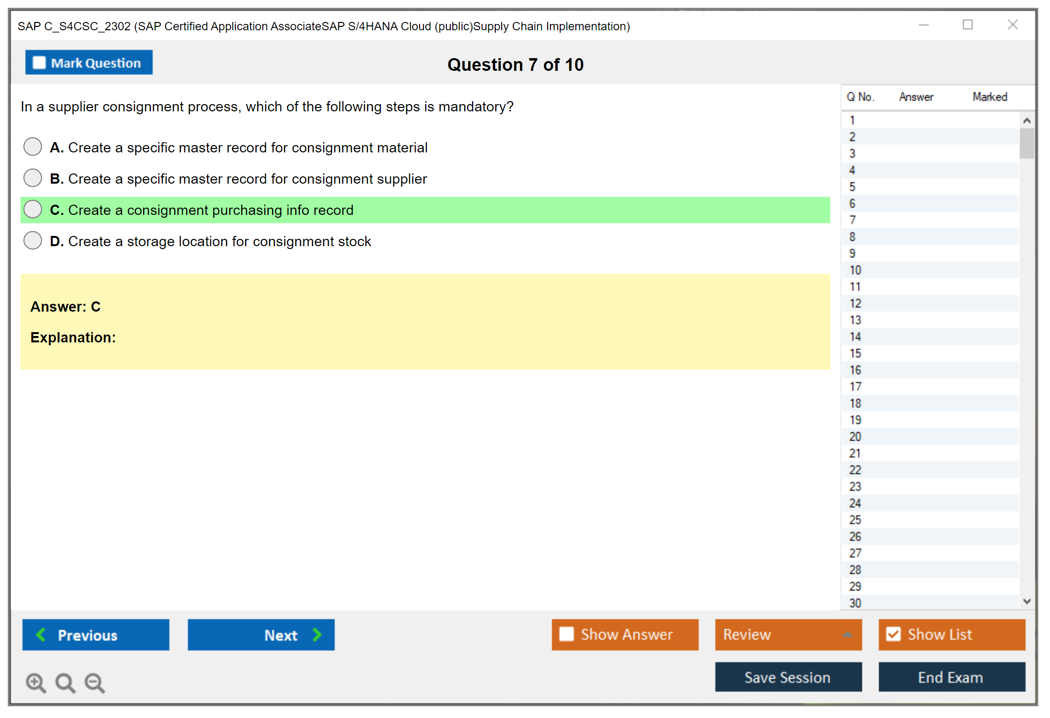 The SAP C_S4CSC_2302 exam is designed to assess a candidate's understanding of SAP S/4HANA Cloud (public) solutions, particularly in the context of supply chain implementation. It covers various aspects, including configuration, integration, and best practices for deploying SAP S/4HANA Cloud in a supply chain environment.