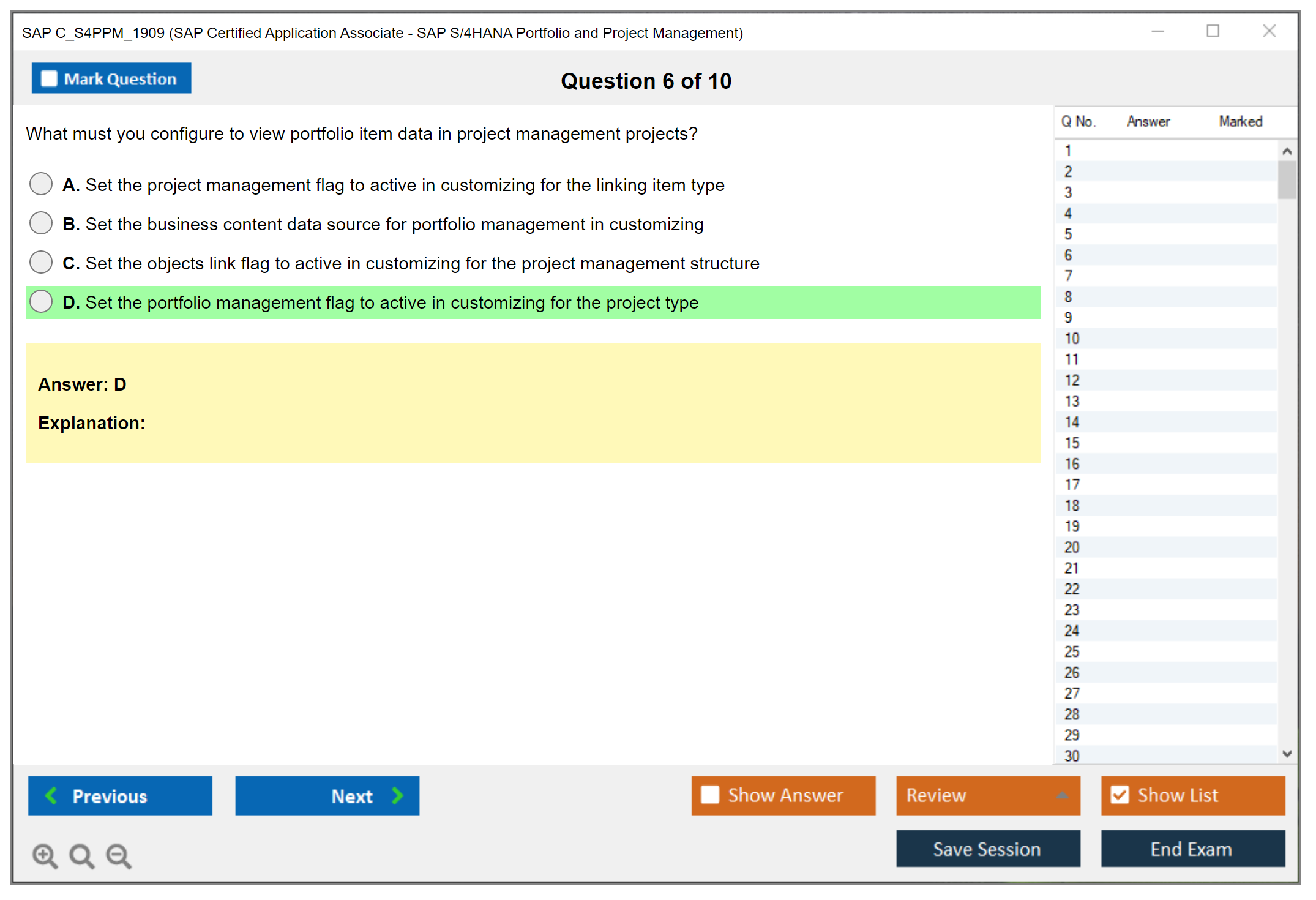 The SAP C_S4PPM_1909 (SAP Certified Application Associate - SAP S/4HANA Portfolio and Project Management) Exam is designed to validate the knowledge and skills of candidates in the area of SAP S/4HANA Portfolio and Project Management. This certification proves that the candidate has a basic understanding and in-depth technical skills required for the implementation and customization of SAP S/4HANA Portfolio and Project Management solutions.