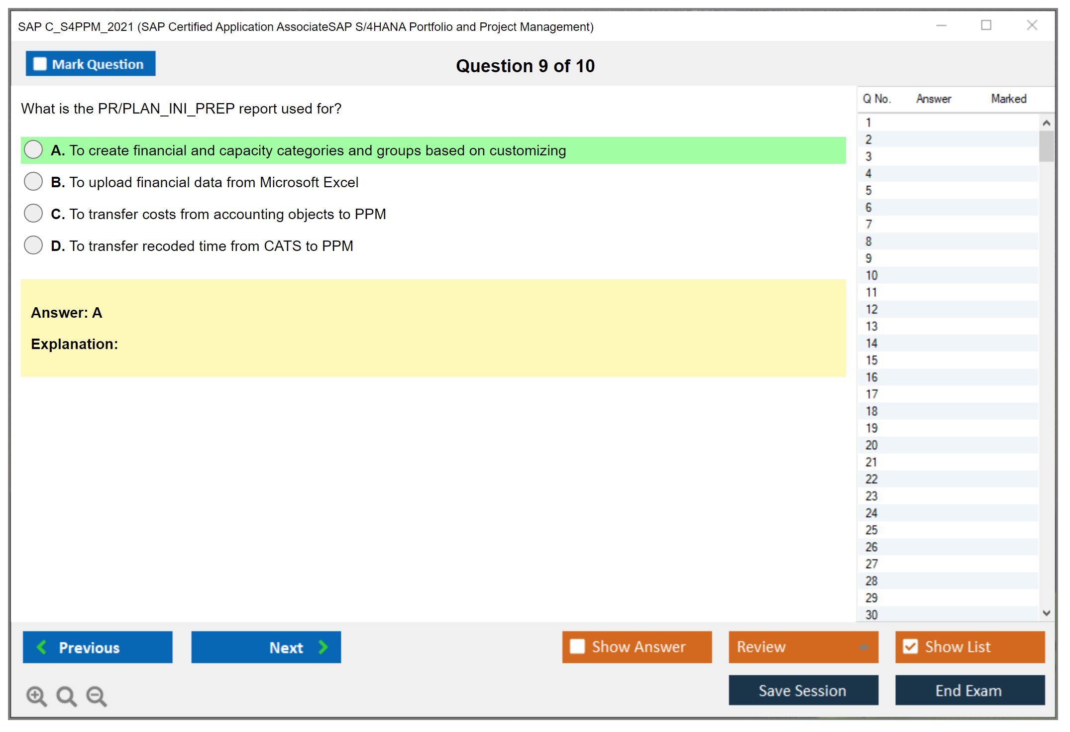 The SAP C_S4PPM_2021 exam is designed to test the candidate's knowledge and skills in SAP S/4HANA Portfolio and Project Management. It ensures that the candidate is well-versed in the fundamental concepts and functionalities of SAP S/4HANA Portfolio and Project Management.