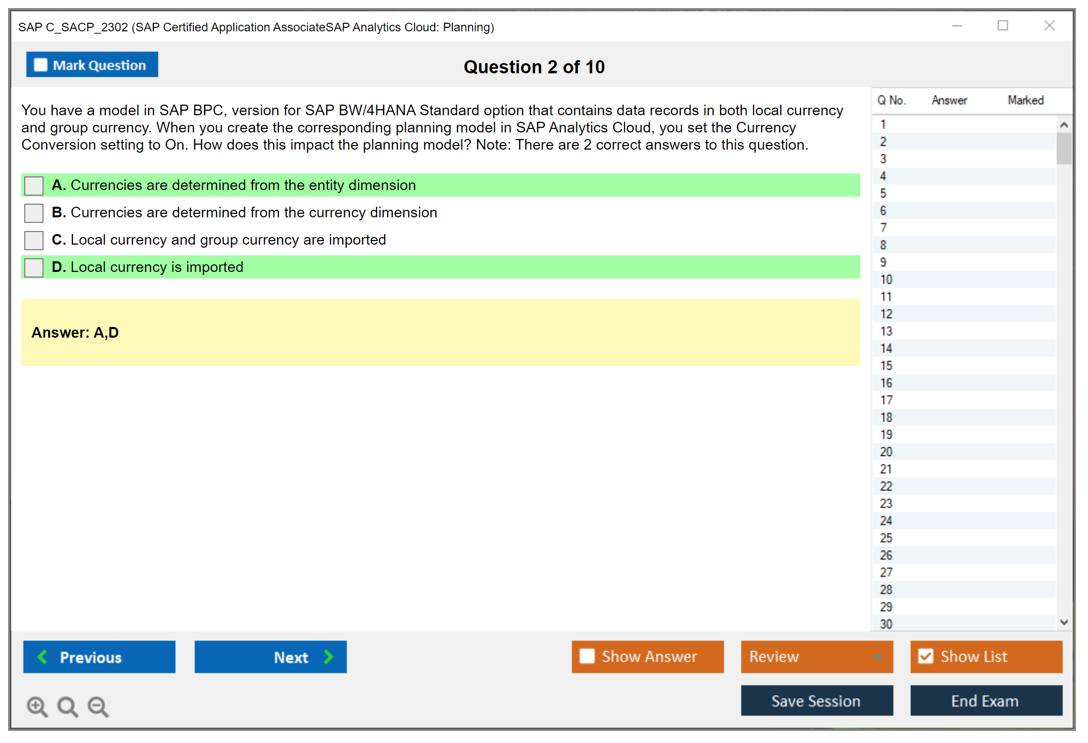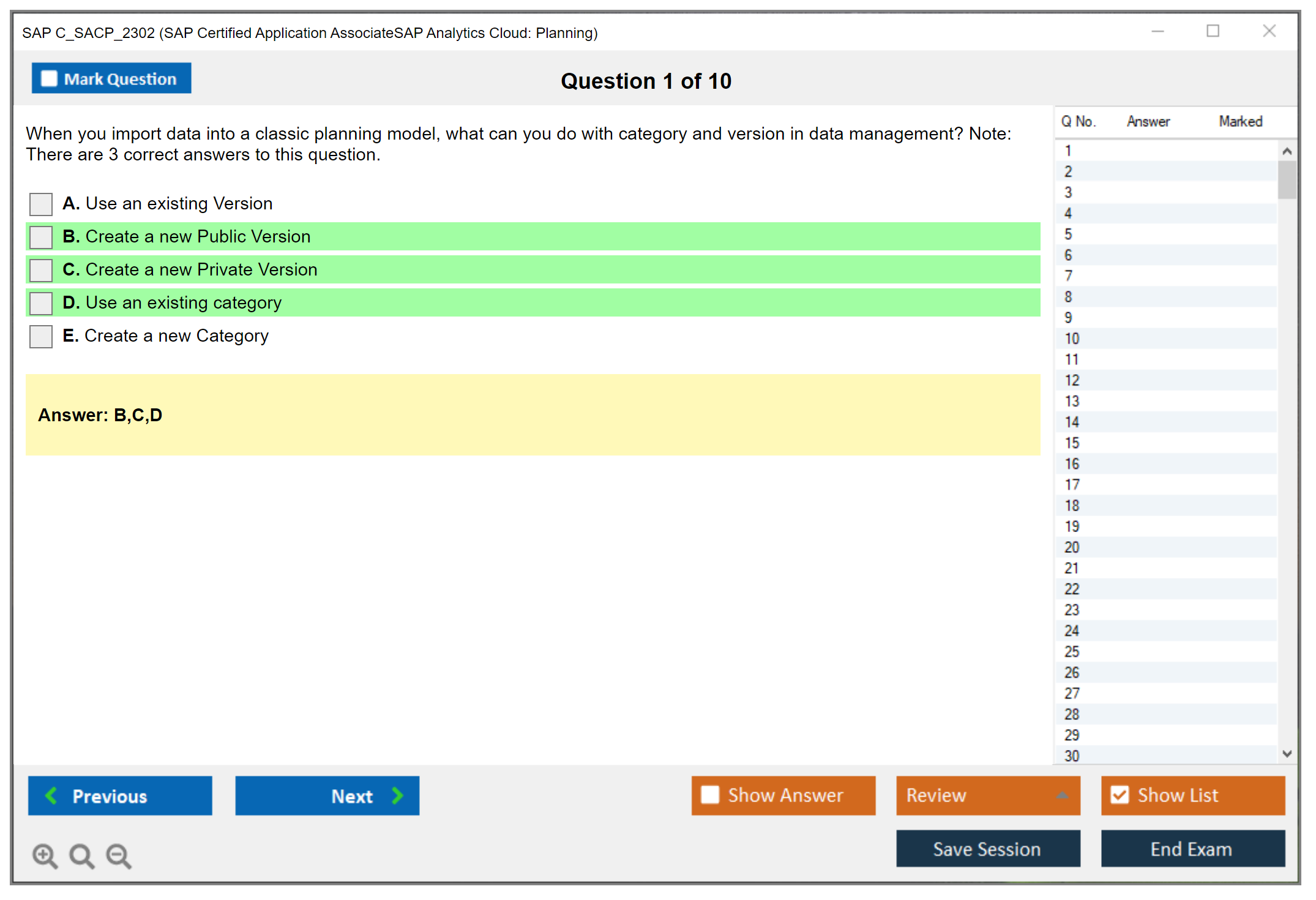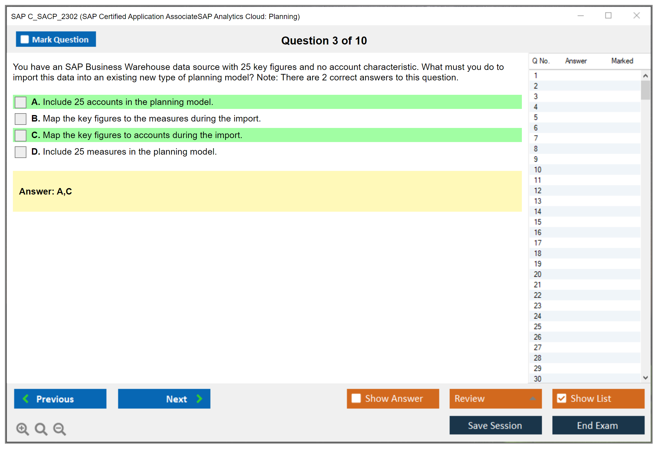 The SAP C_SACP_2302 (SAP Certified Associate - SAP Analytics Cloud: Planning) exam is designed to validate the candidate's knowledge and skills in SAP Analytics Cloud, specifically in the planning domain. It covers various aspects such as model creation, data integration, planning processes, and more.