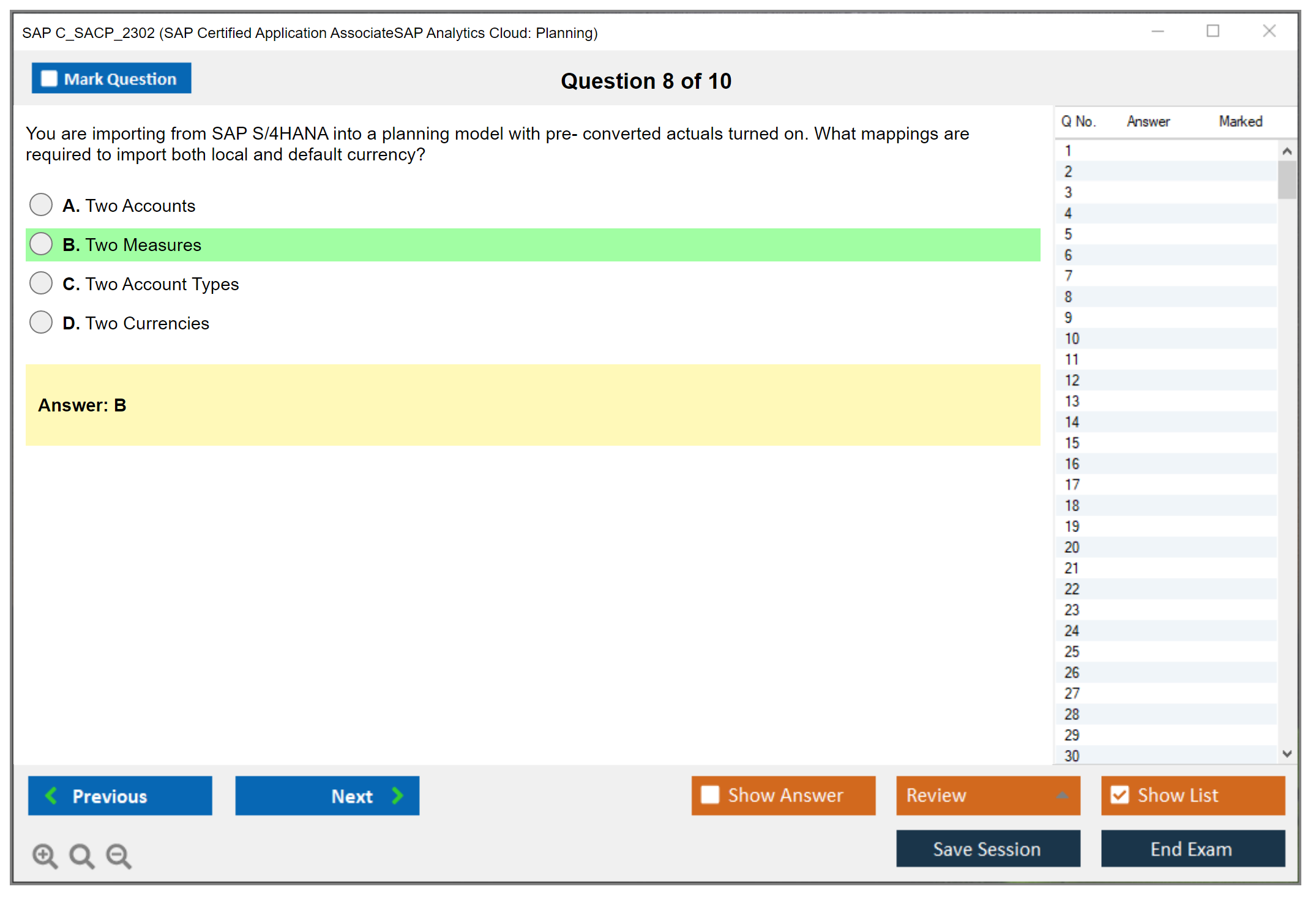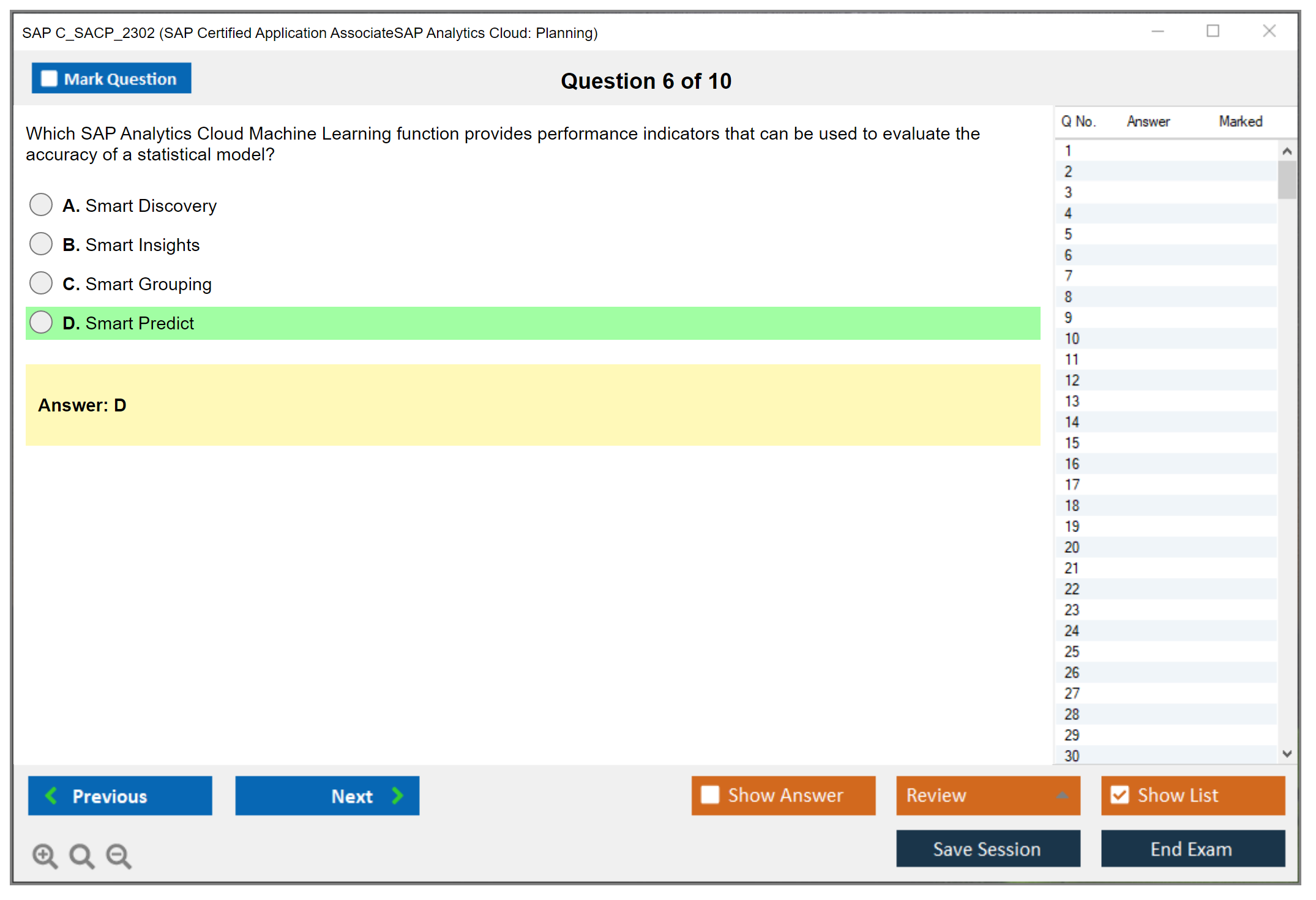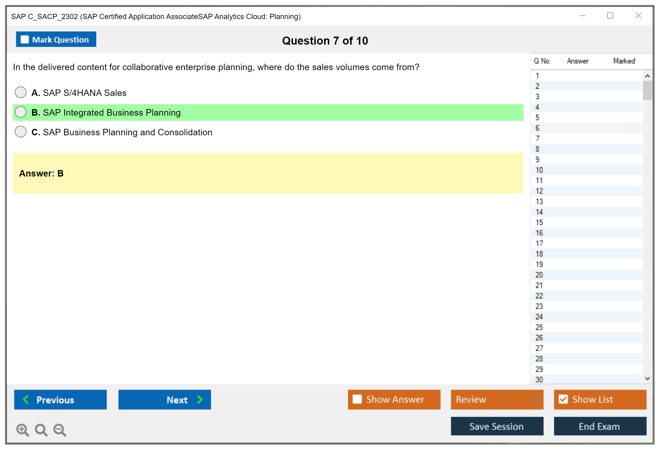 The SAP C_SACP_2302 (SAP Certified Associate - SAP Analytics Cloud: Planning) exam is designed to validate the candidate's knowledge and skills in SAP Analytics Cloud, specifically in the planning domain. It covers various aspects such as model creation, data integration, planning processes, and more.