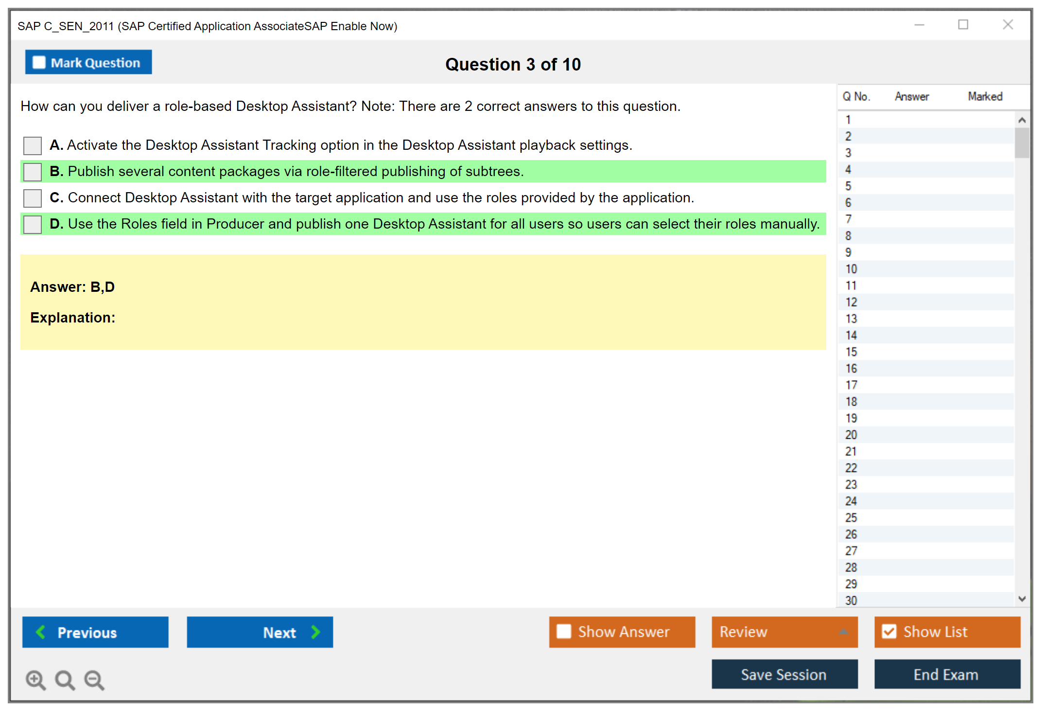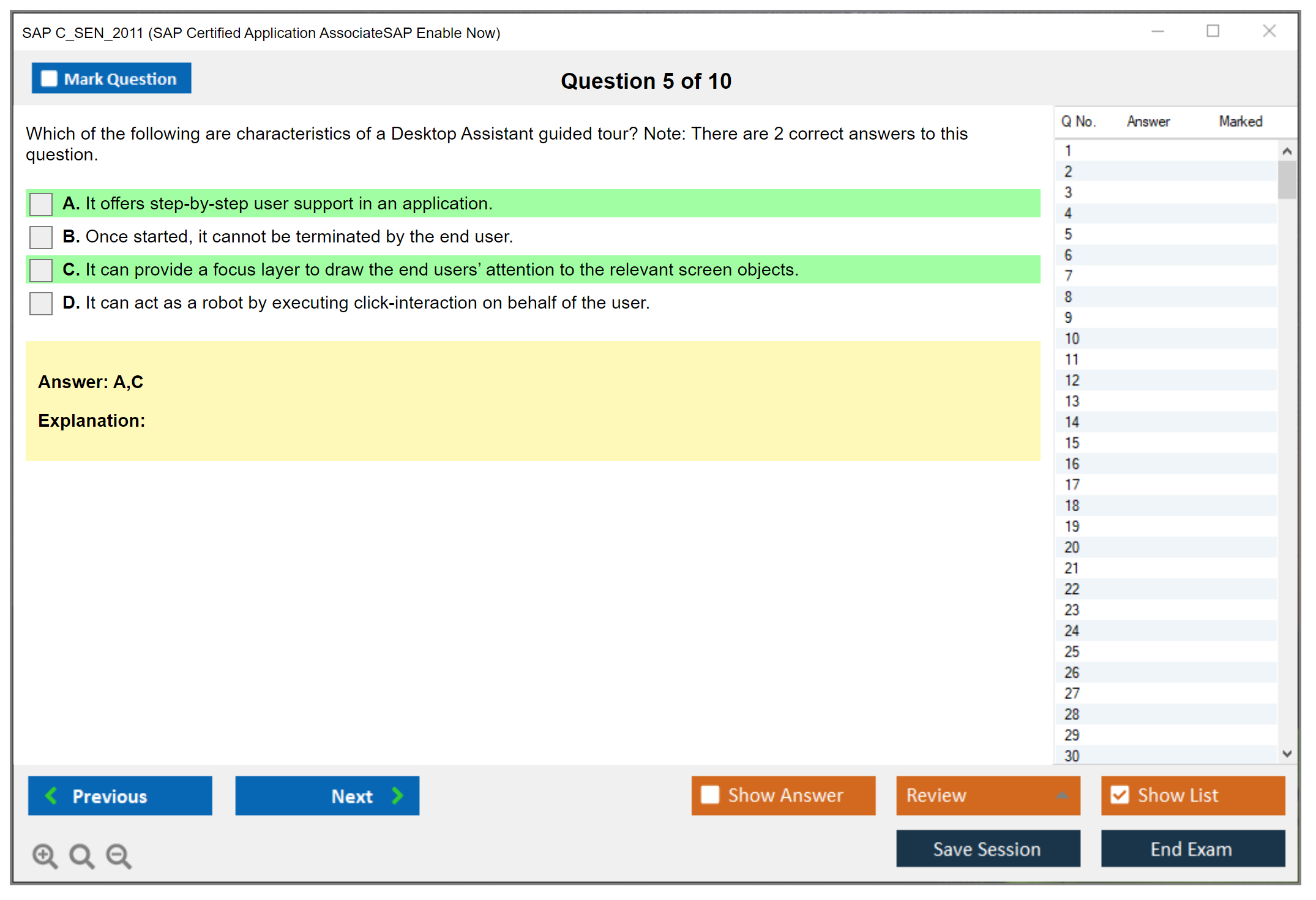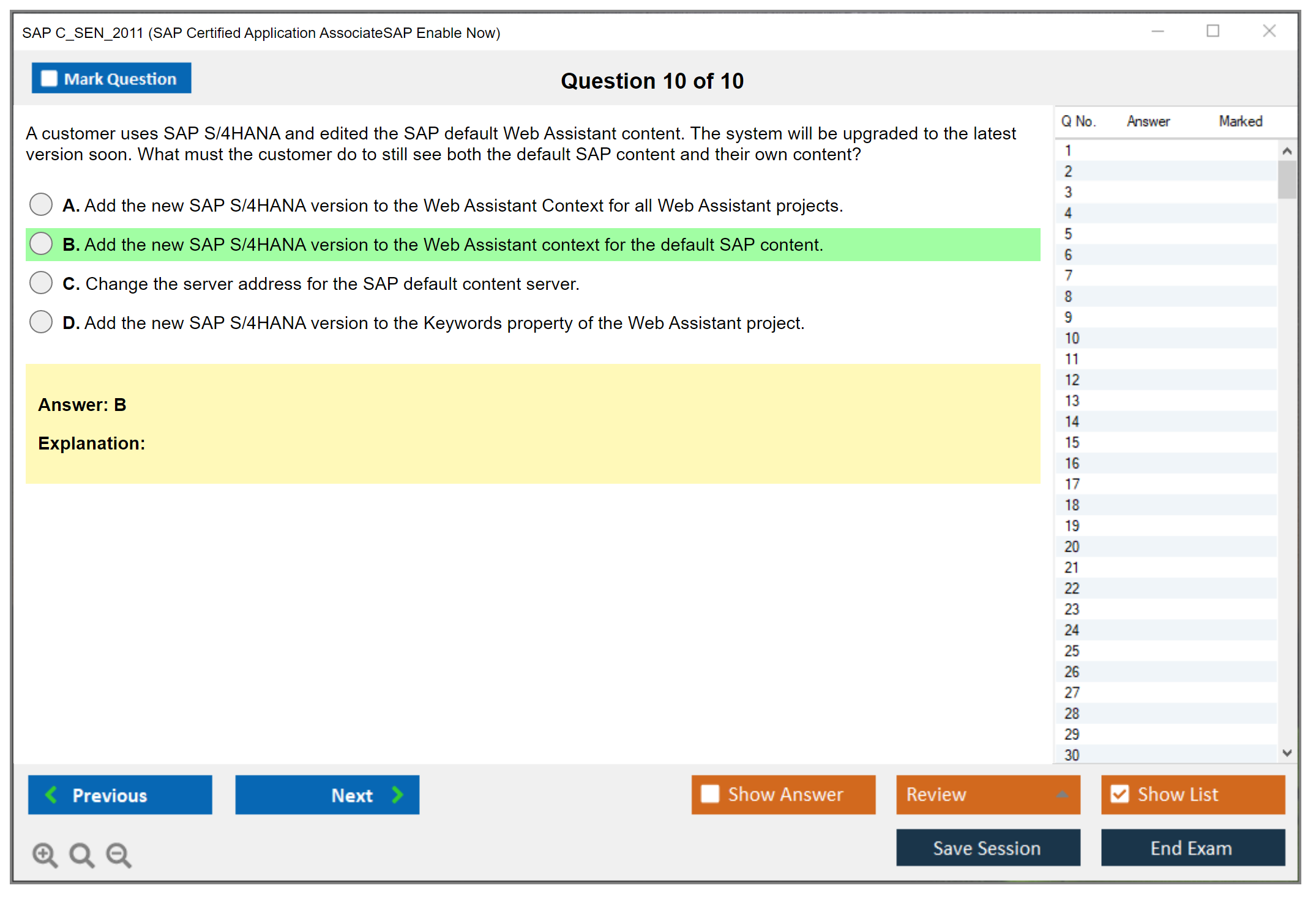 Note: SAP C_SEN_2011 (SAP Certified Application AssociateSAP Enable Now) will not receive any new updates.