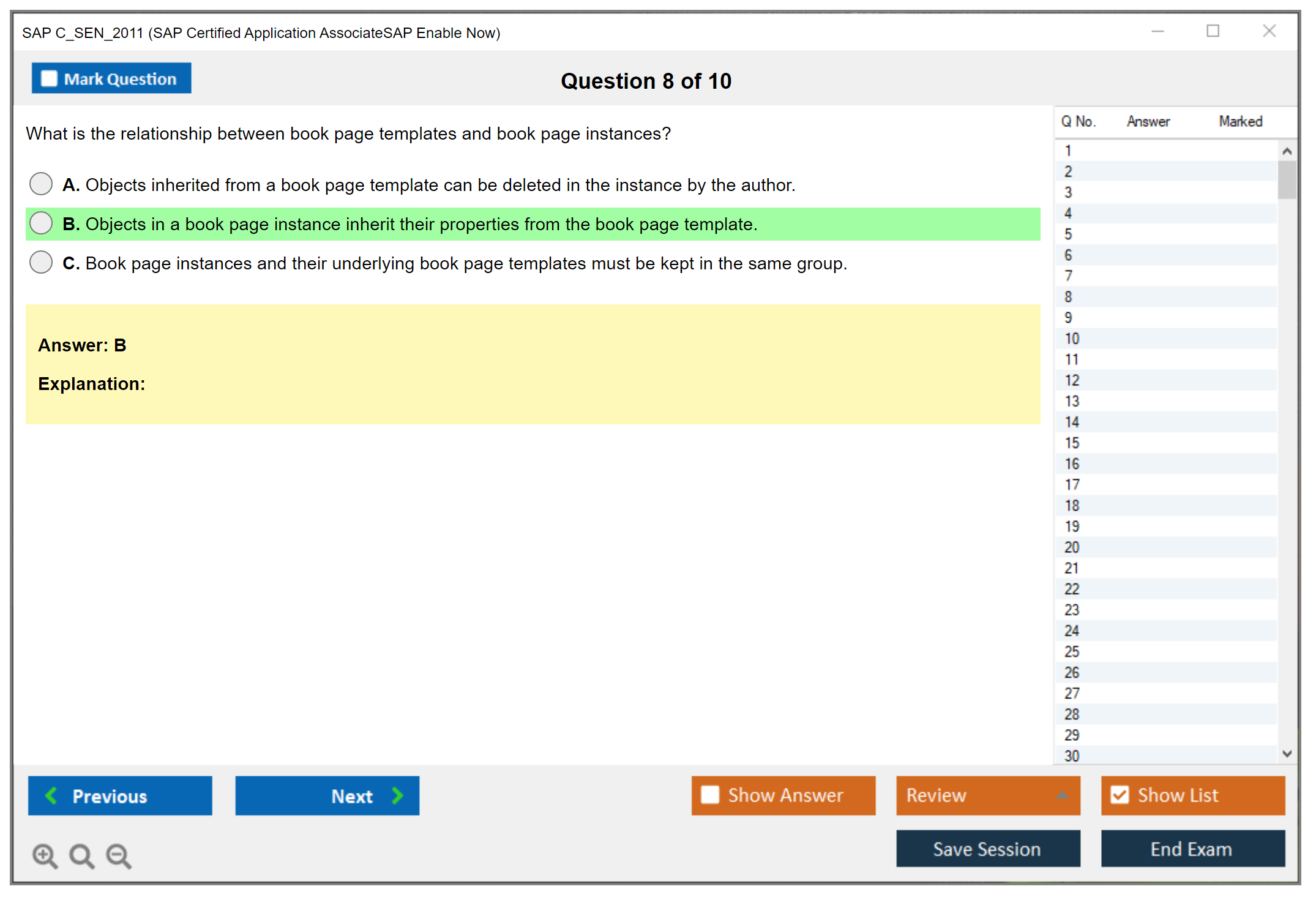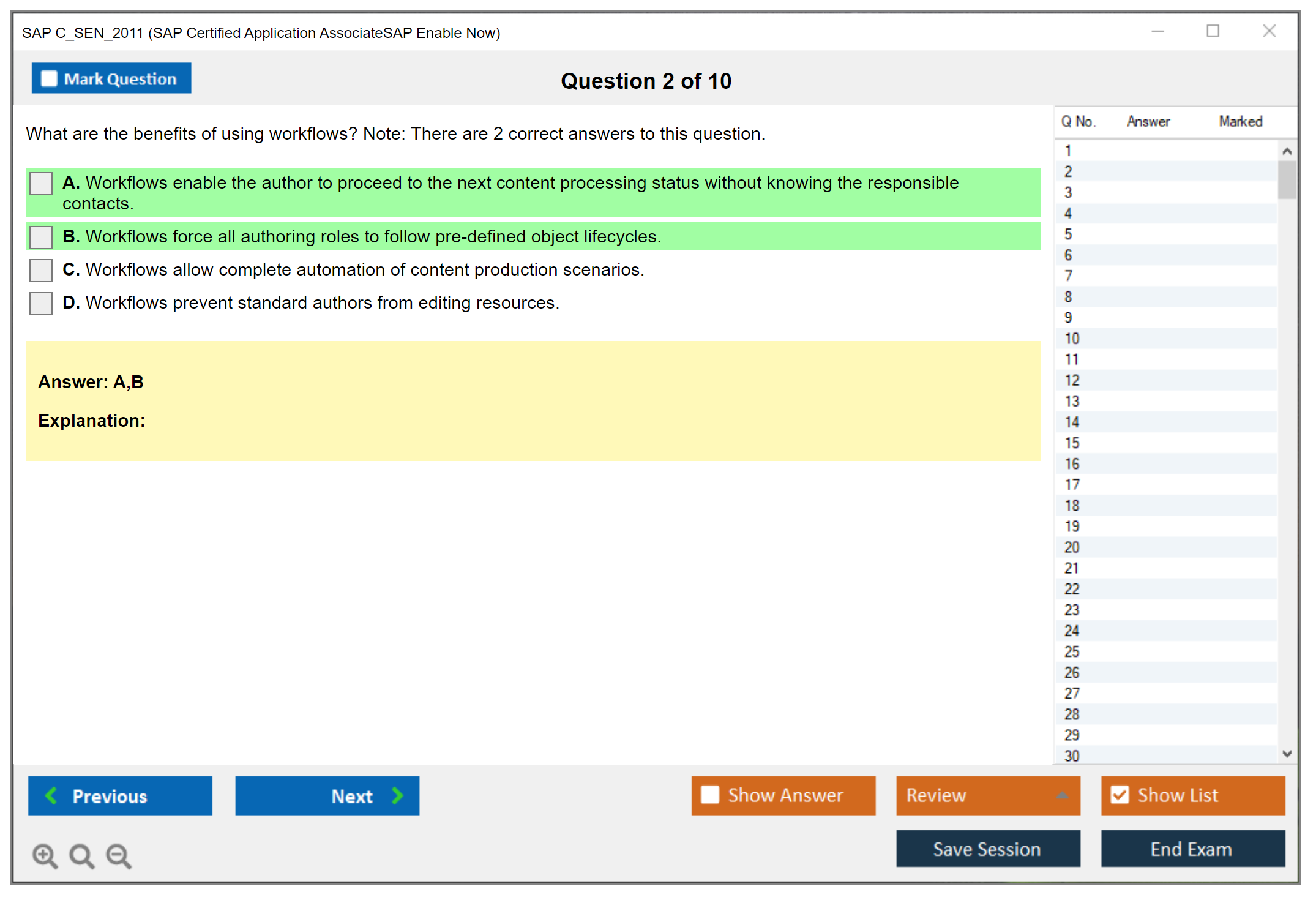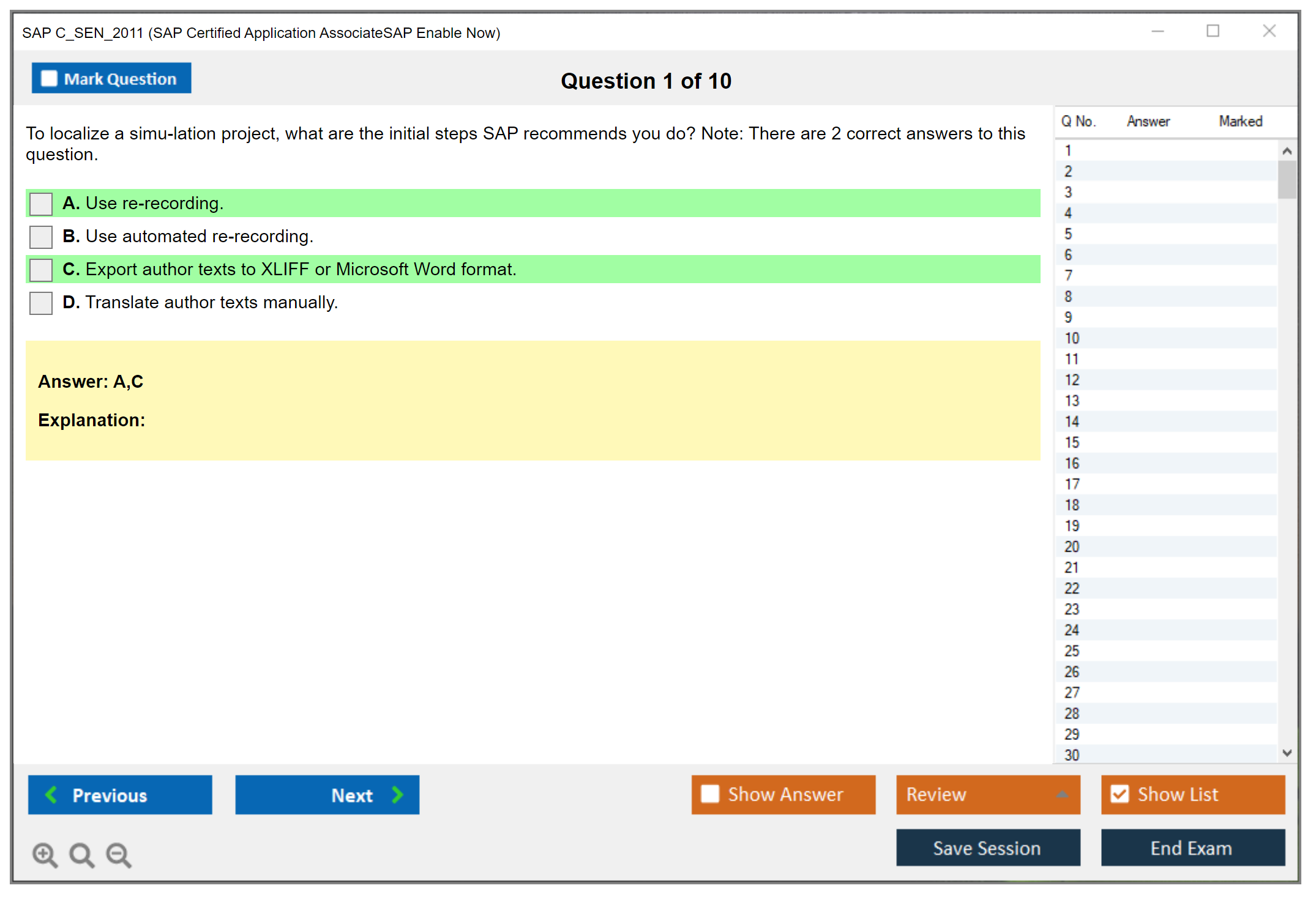 Note: SAP C_SEN_2011 (SAP Certified Application AssociateSAP Enable Now) will not receive any new updates.