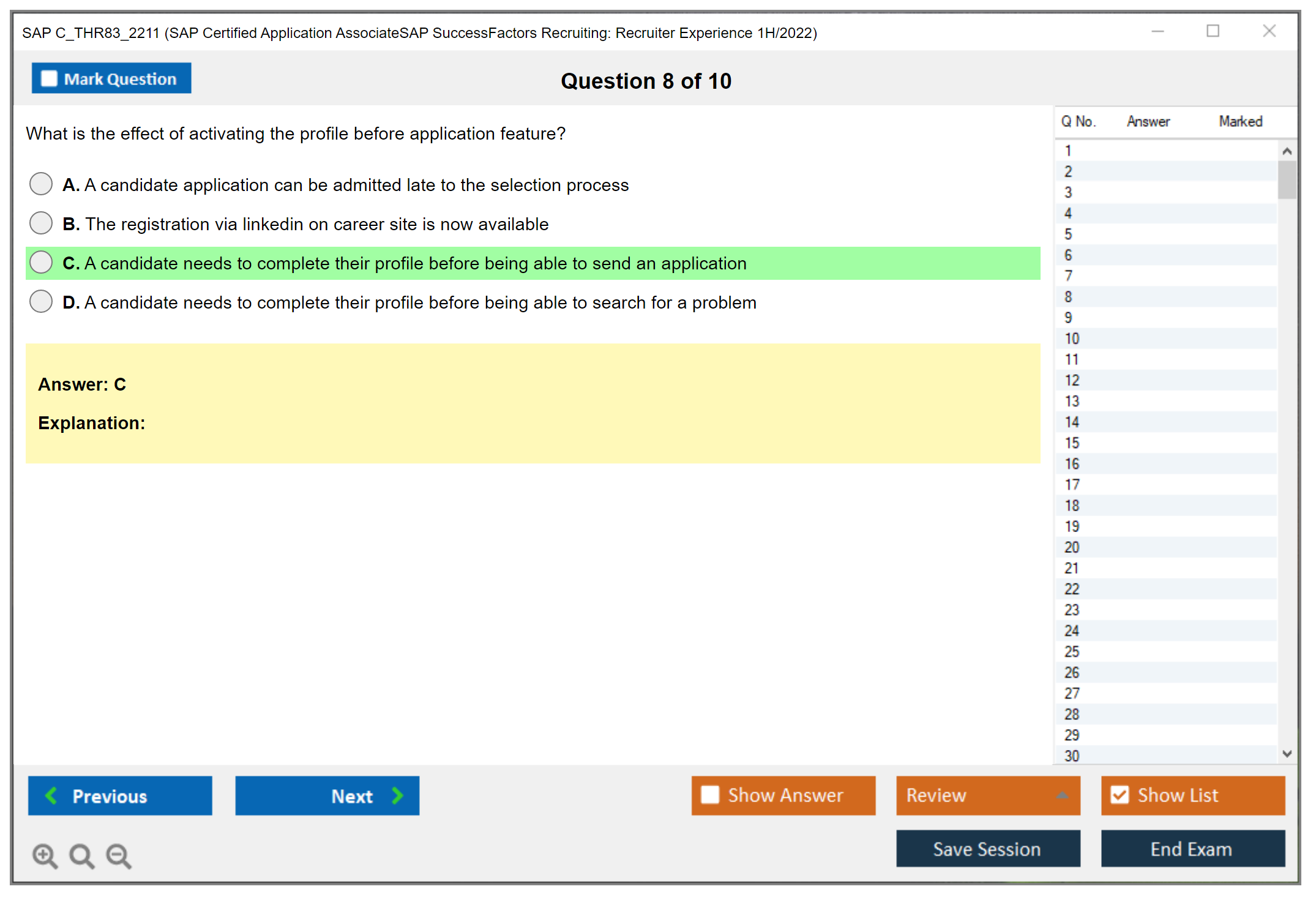 The SAP C_THR83_2211 exam is designed to assess the candidate's knowledge and skills in the SAP SuccessFactors Recruiting module. It ensures that the candidate has the necessary expertise to handle the functionalities and features of the SAP SuccessFactors Recruiting solution, including job requisition, candidate management, and recruiting marketing.
