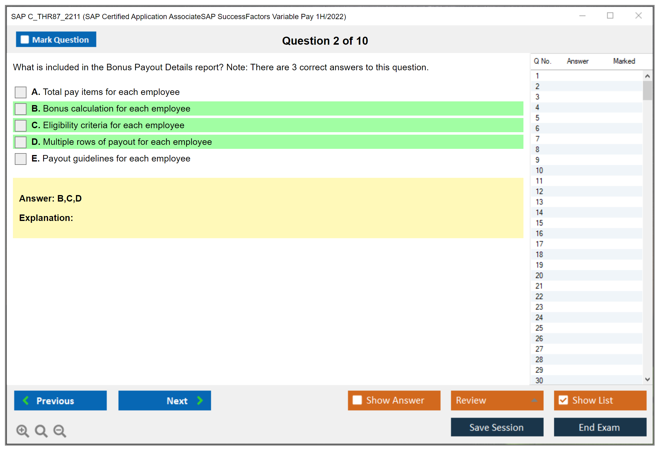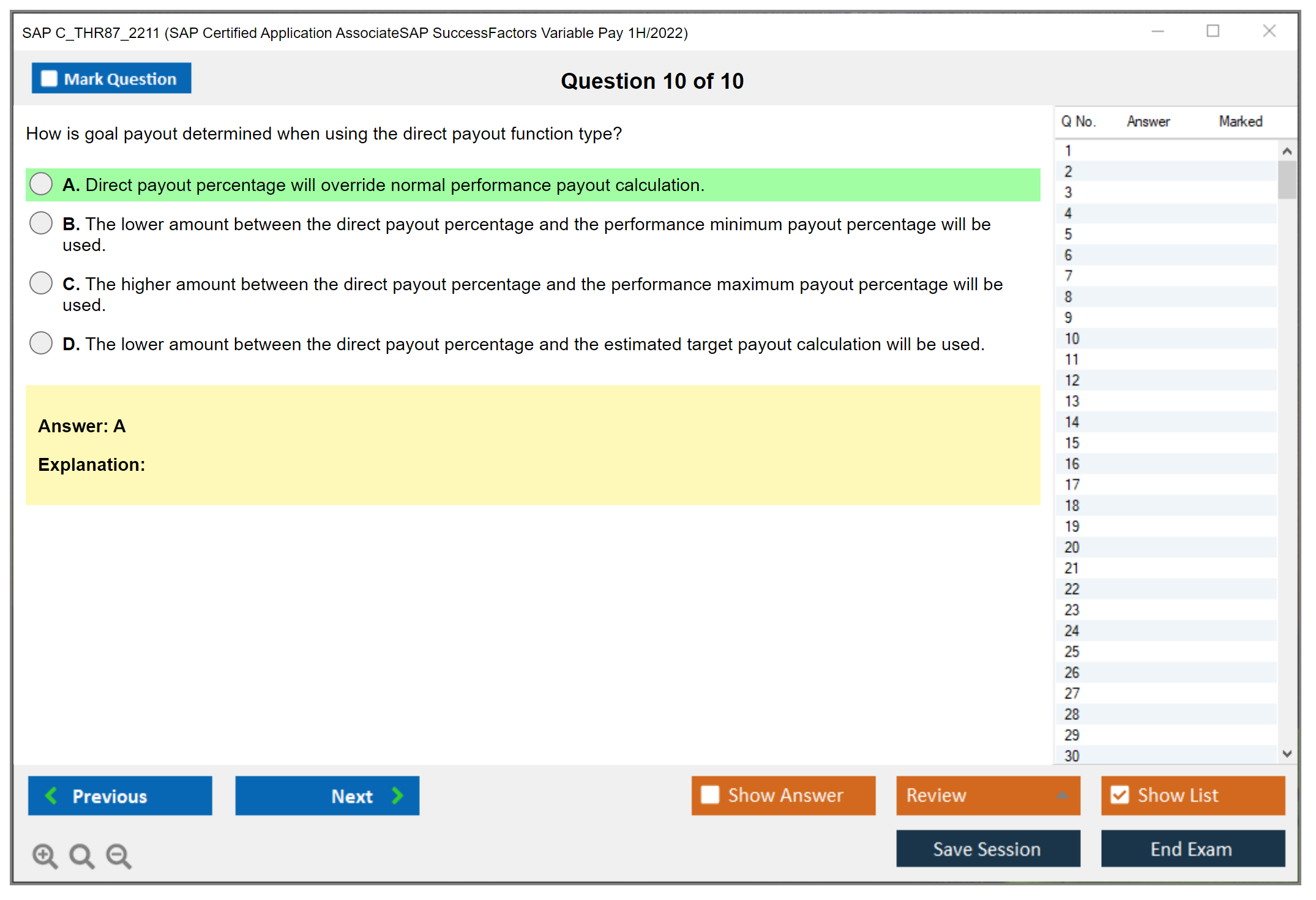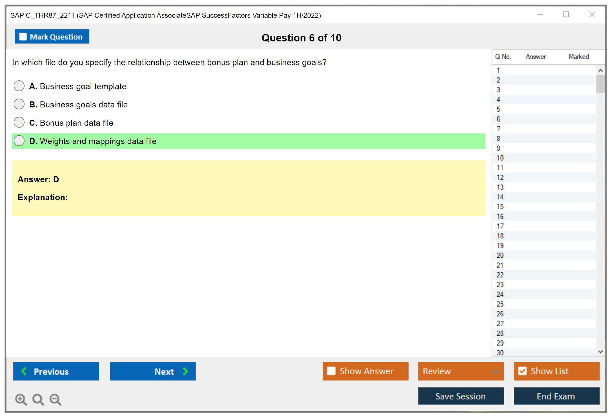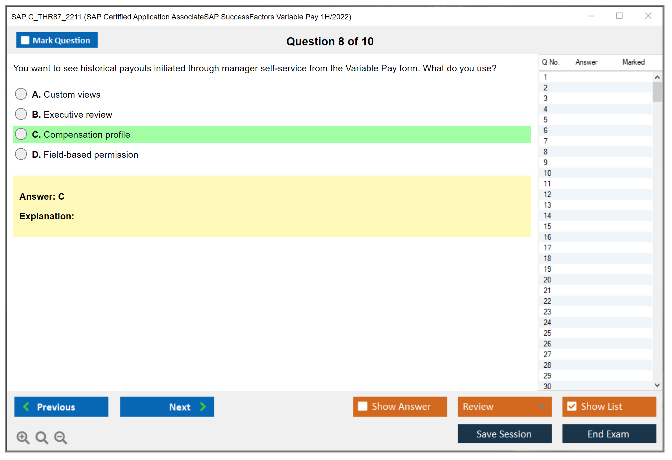 The SAP C_THR87_2211 (SAP Certified Application Associate - SAP SuccessFactors Variable Pay 1H/2022) exam validates that the candidate possesses the fundamental and core knowledge required of the SAP SuccessFactors Variable Pay application.