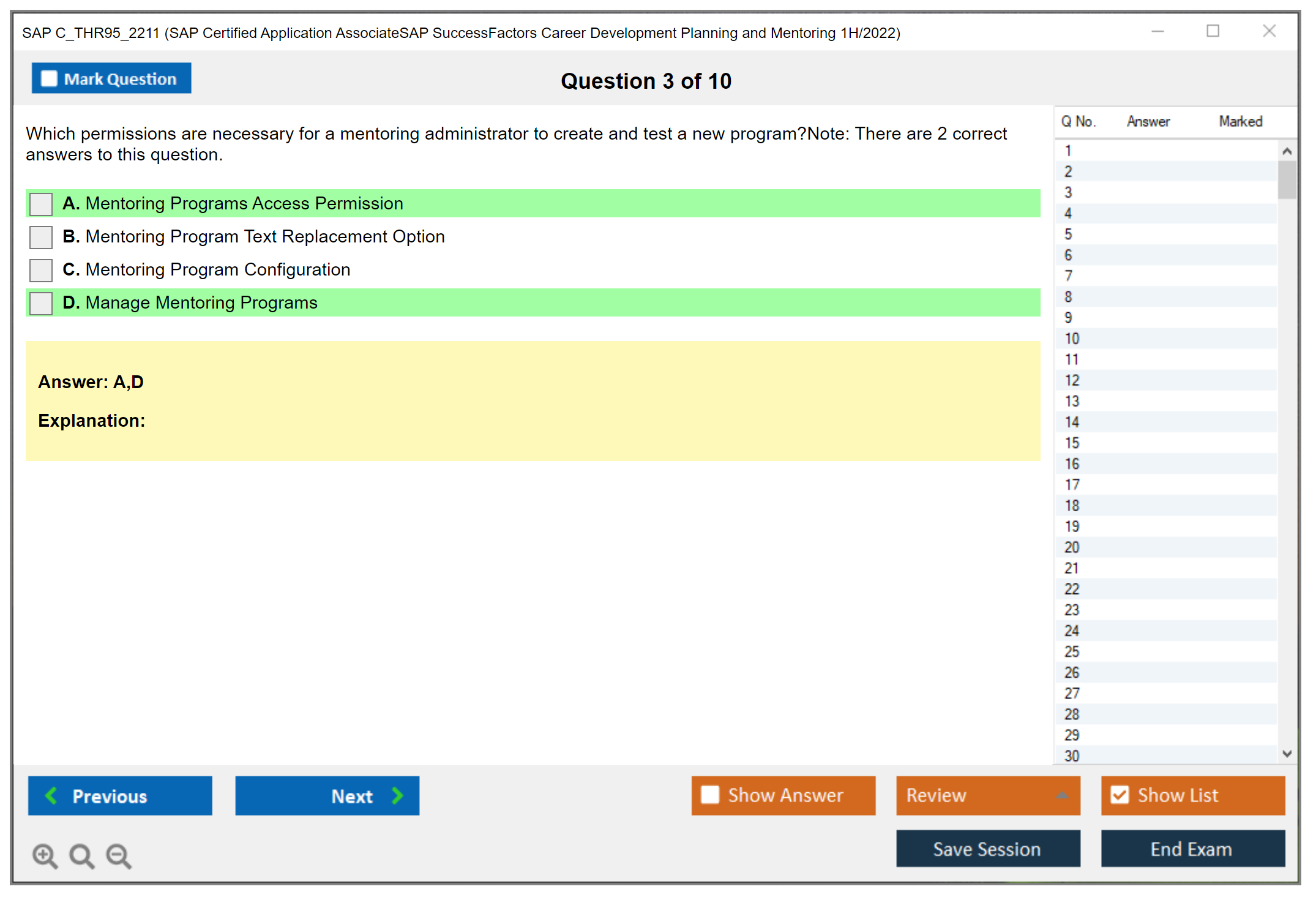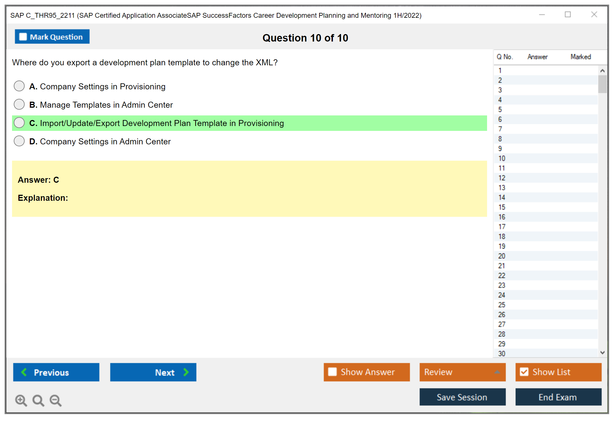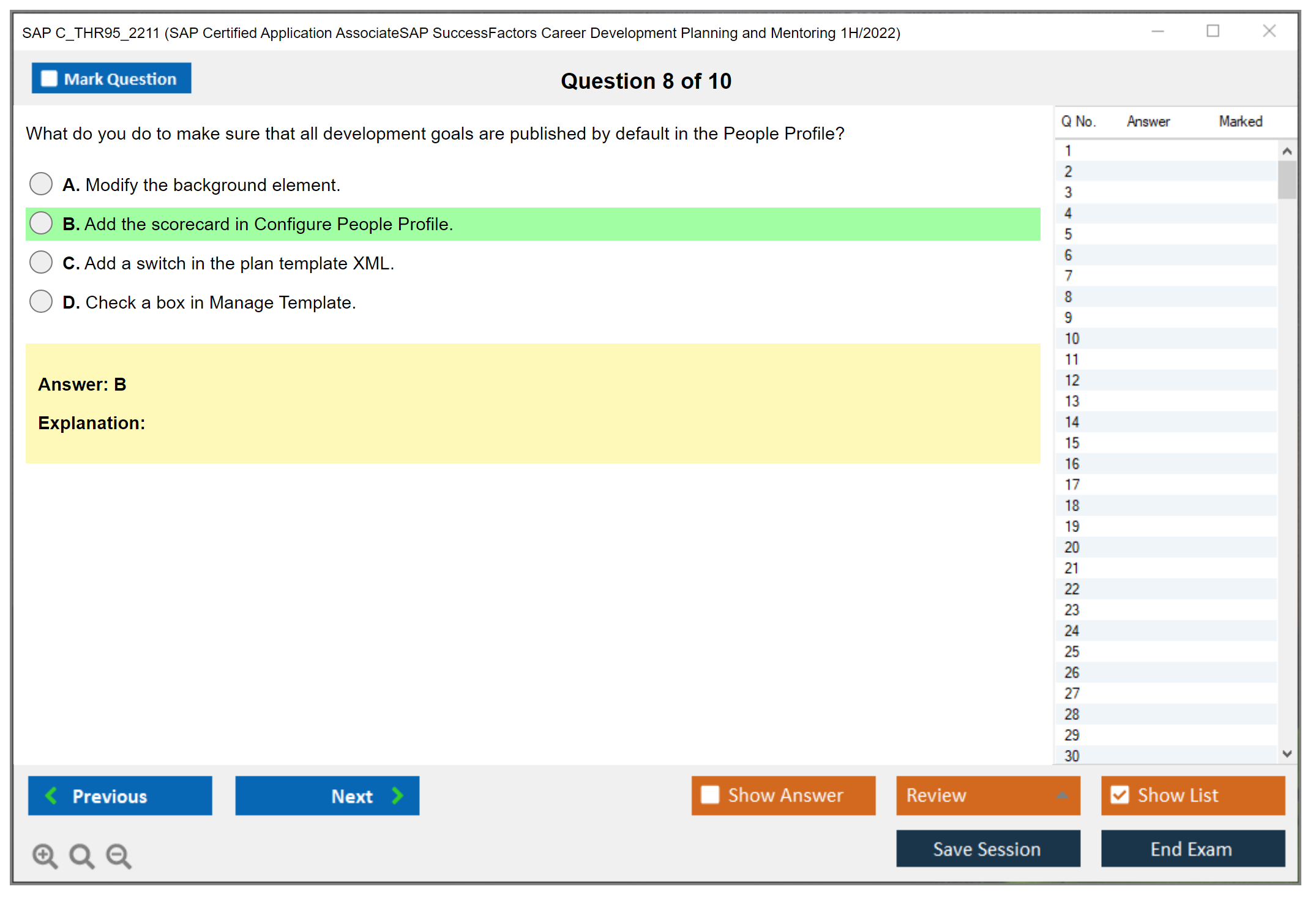 The SAP C_THR95_2211 exam is intended to certify that the candidate has the fundamental and core knowledge required of the SAP SuccessFactors Career Development Planning and Mentoring profile. This certification proves that the candidate has an overall understanding and in-depth technical skills to participate as a member of a project team in a mentored role.