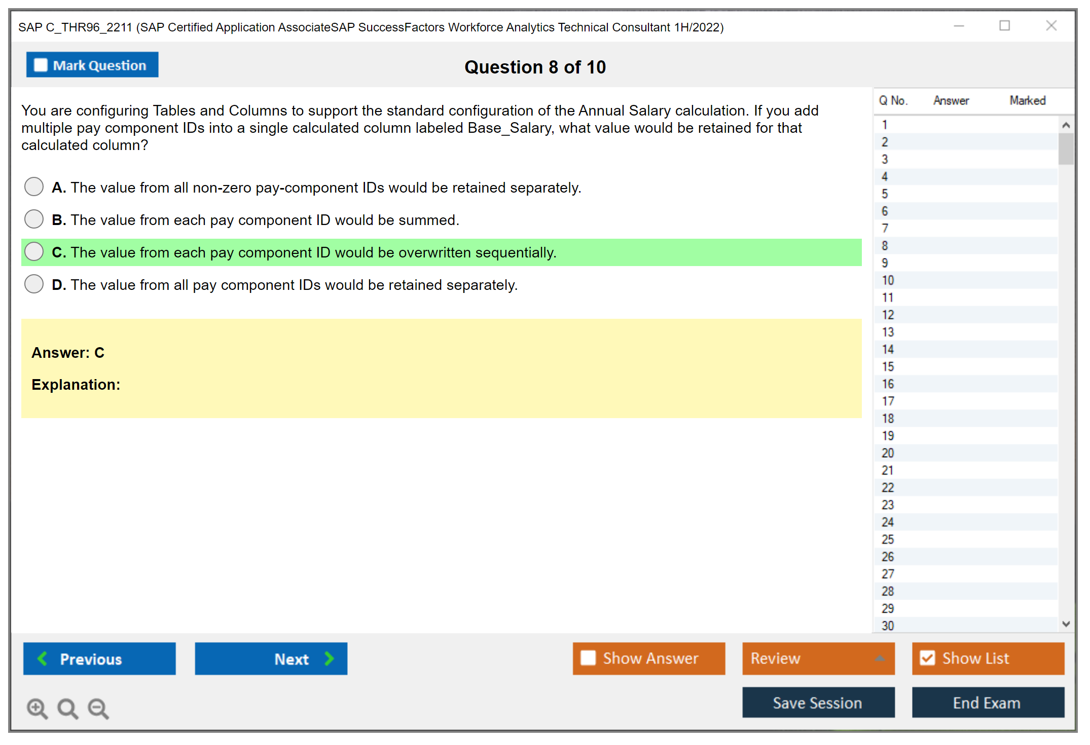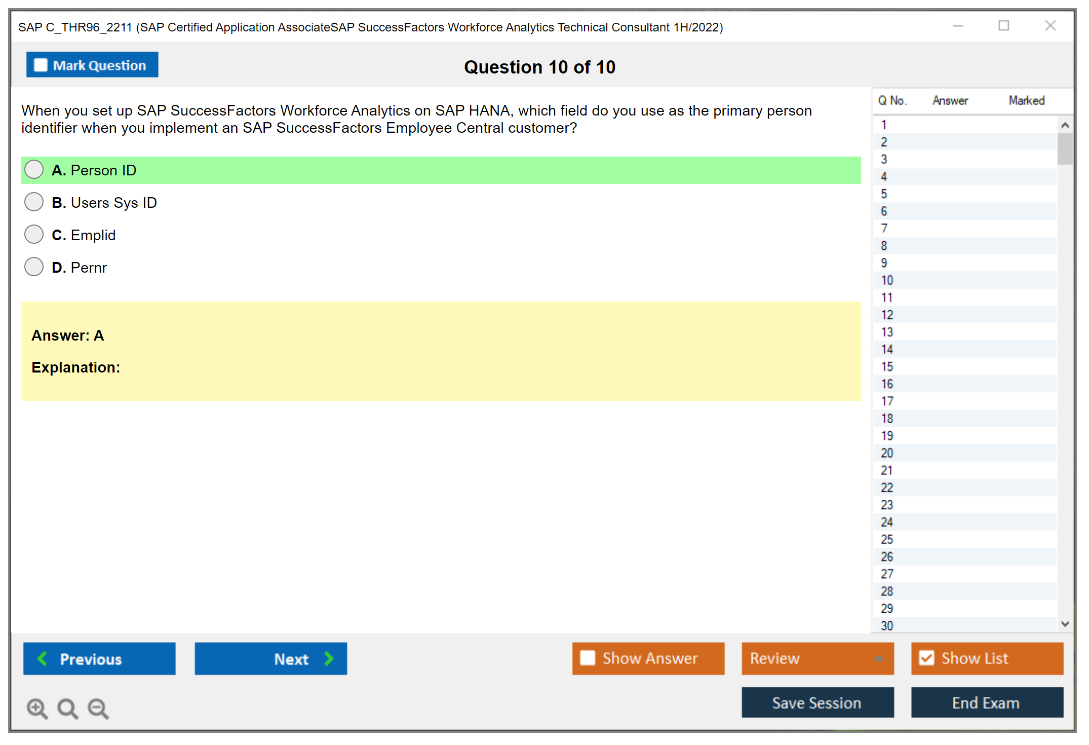 The SAP C_THR96_2211 exam is a certification assessment for professionals aiming to become certified in SAP SuccessFactors Workforce Analytics. It evaluates the candidate's ability to implement and configure solutions, ensuring they have a comprehensive understanding of the technical aspects of the SAP SuccessFactors Workforce Analytics module.