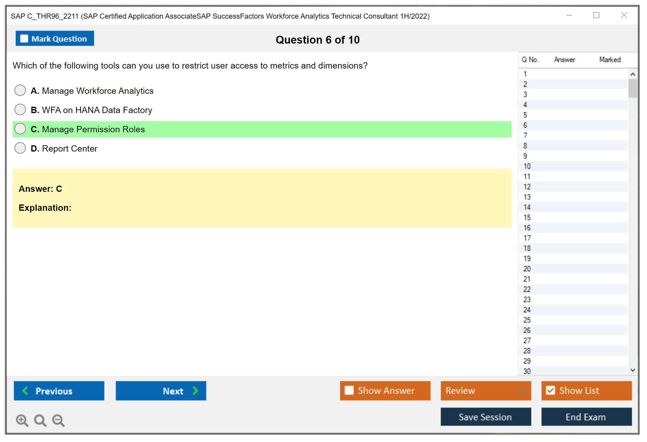 The SAP C_THR96_2211 exam, also known as the SAP Certified Application Associate - SAP SuccessFactors Workforce Analytics Technical Consultant 1H/2022, is designed to validate the knowledge and skills of candidates in the area of SAP SuccessFactors Workforce Analytics. This certification ensures that the candidate possesses the foundational and core knowledge required to support the implementation and configuration of SAP SuccessFactors Workforce Analytics solutions.
