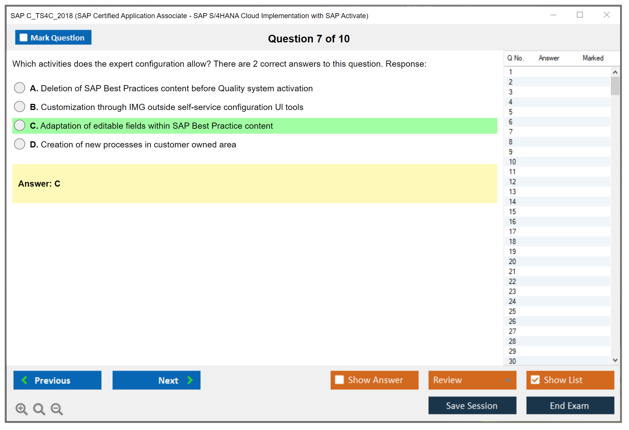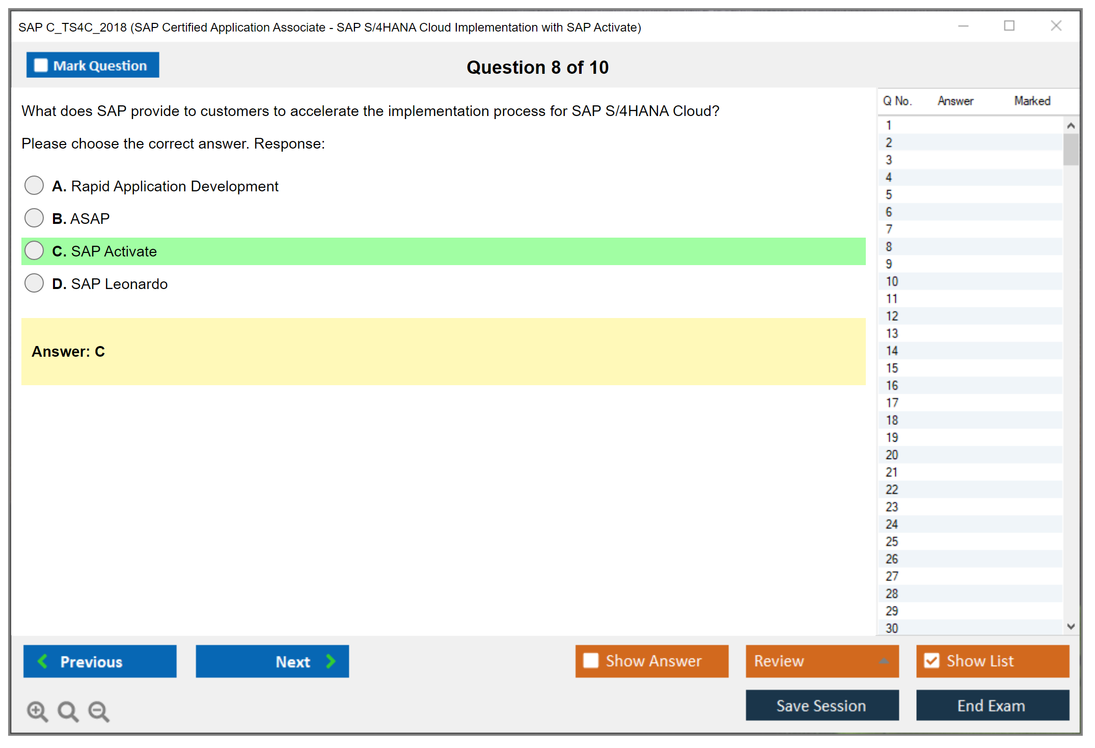 C_TS4C_2018 (SAP Certified Application Associate - SAP S/4HANA Cloud Implementation with SAP Activate) PDF + Test Engine