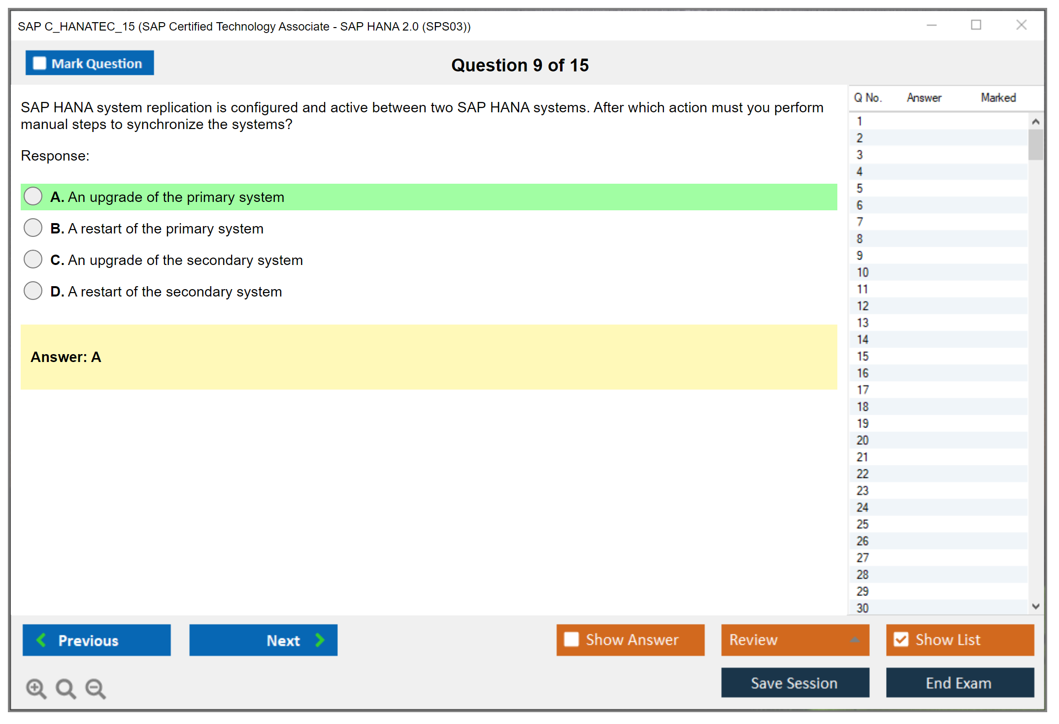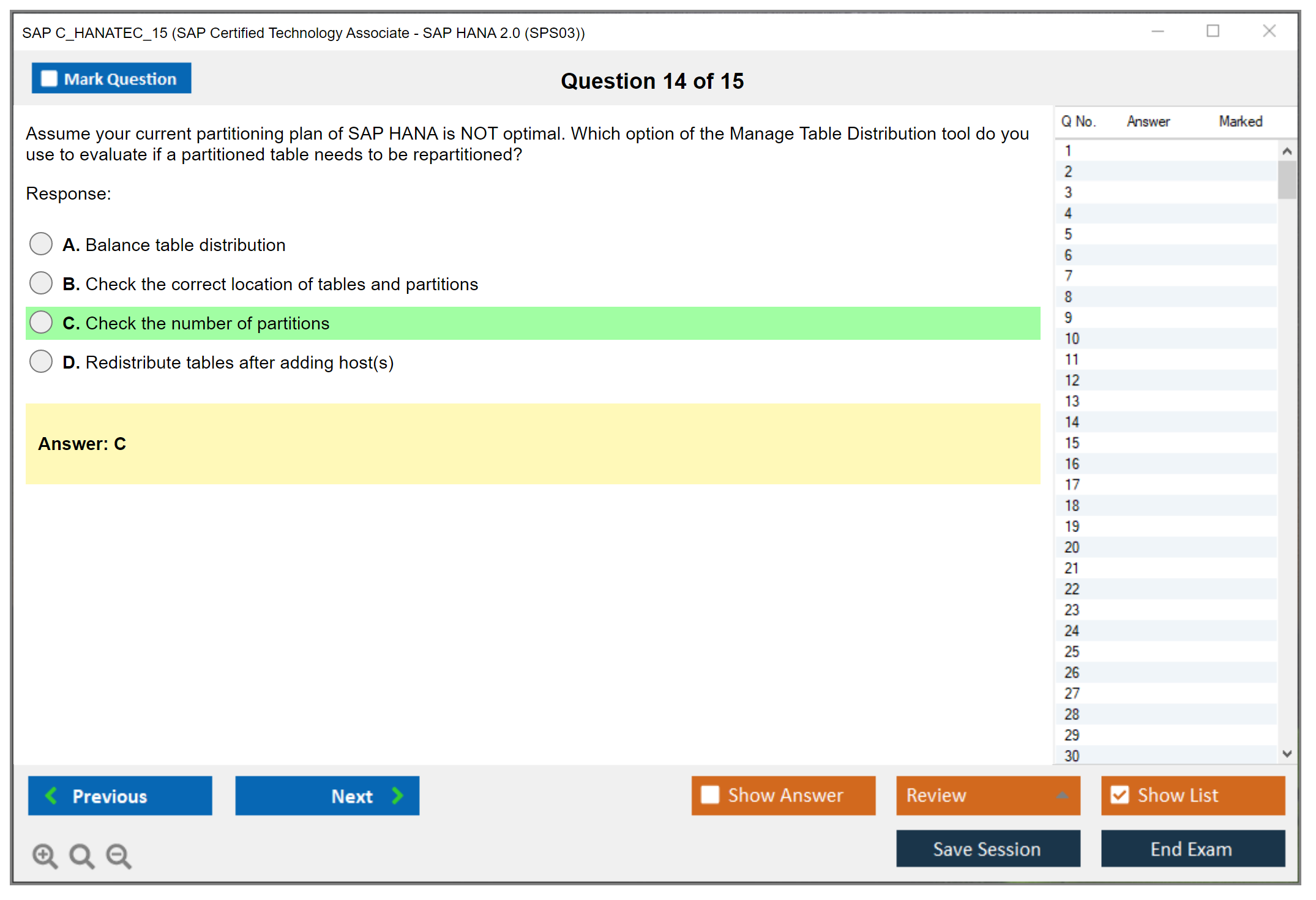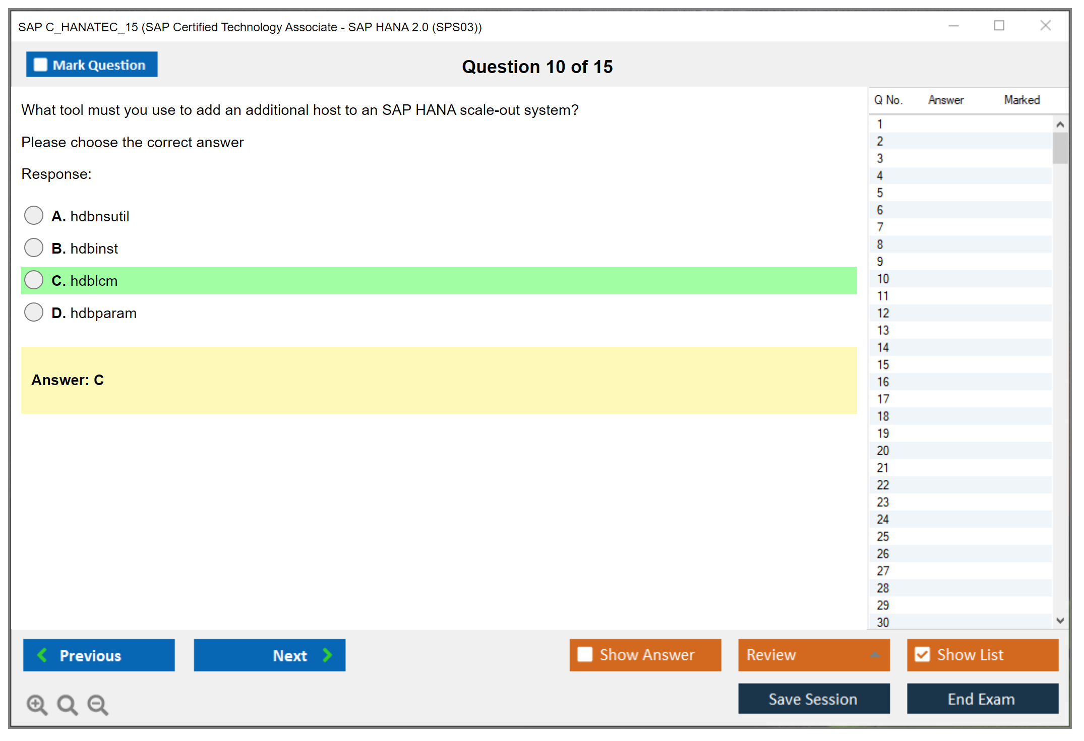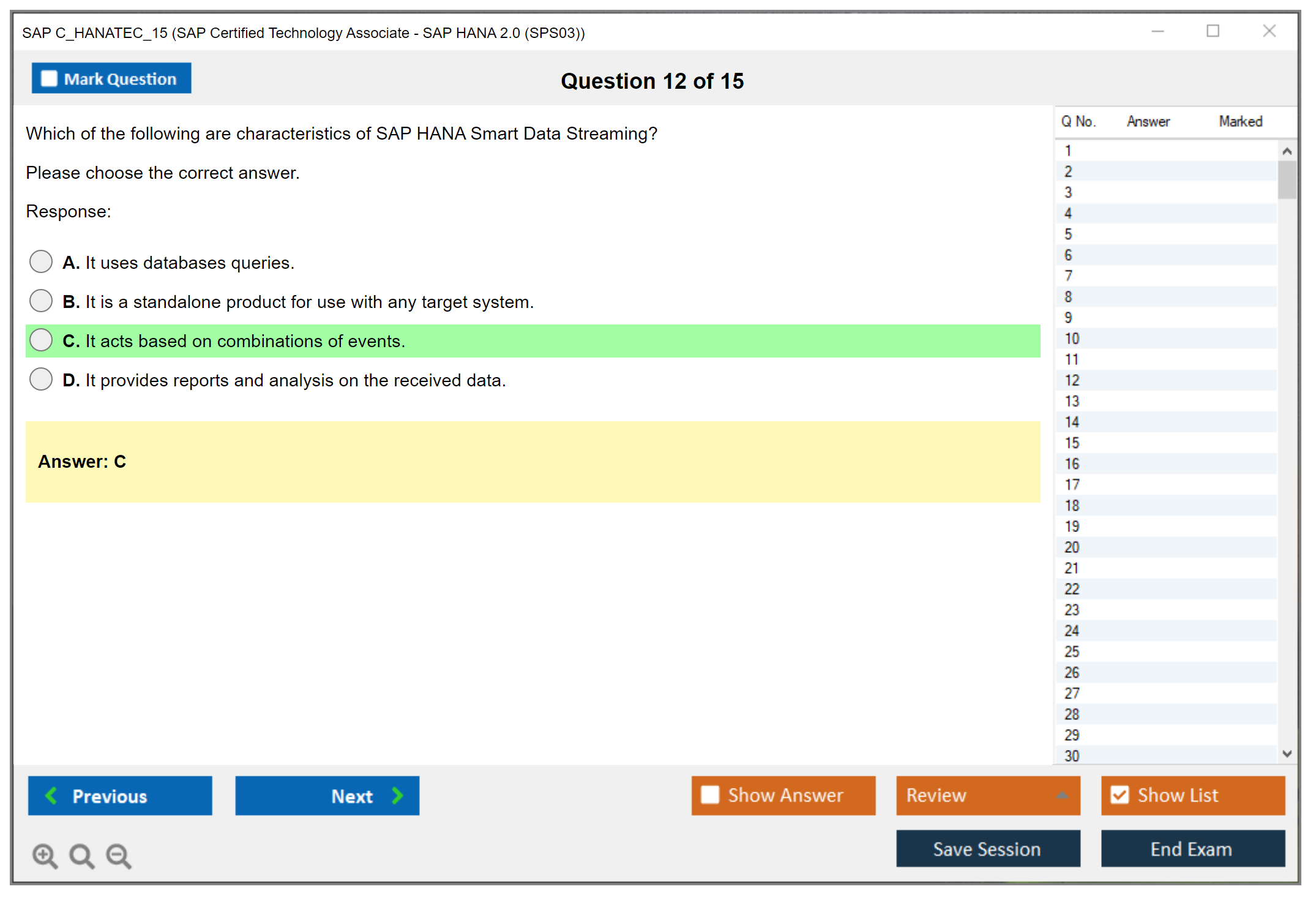 The SAP C_HANATEC_15 exam, also known as the SAP Certified Technology Associate - SAP HANA 2.0 (SPS03), is designed to validate the knowledge and skills of candidates in managing and operating SAP HANA 2.0. It covers various topics including installation, configuration, operations, and troubleshooting of SAP HANA.