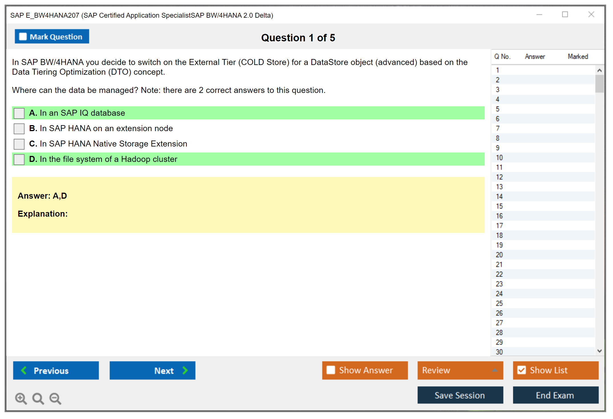 Note: SAP E_BW4HANA207 (SAP Certified Application SpecialistSAP BW/4HANA 2.0 Delta) will not receive any new updates.