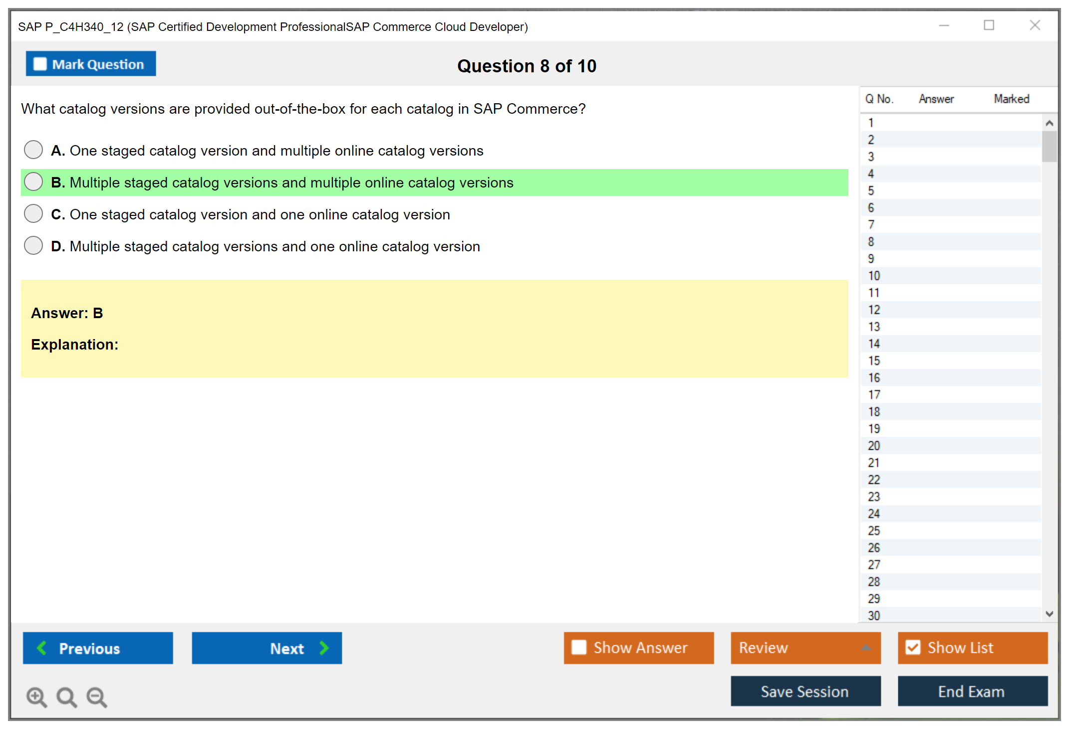 Note: SAP P_C4H340_12 (SAP Certified Development ProfessionalSAP Commerce Cloud Developer) will not receive any new updates.
