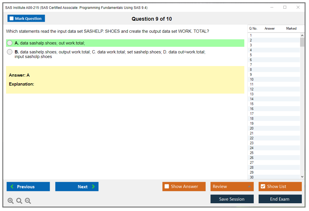 Sample questions for the SAS Institute A00-215 exam can be found on the official SAS certification website or through SAS training resources.