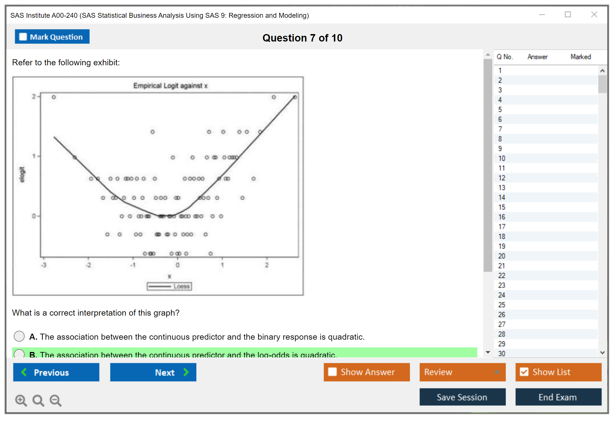 The SAS Institute A00-240 exam is a certification exam that assesses a candidate's knowledge and skills in statistical business analysis using SAS software, particularly focusing on regression and modeling techniques.