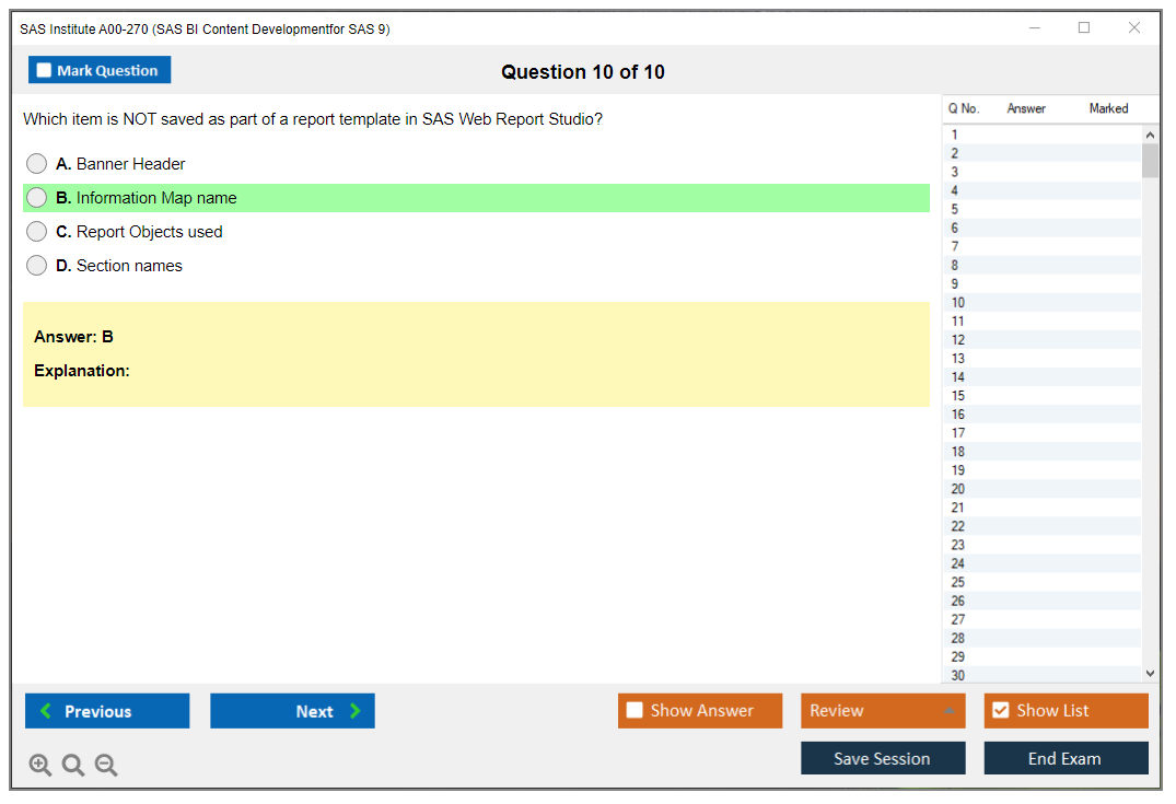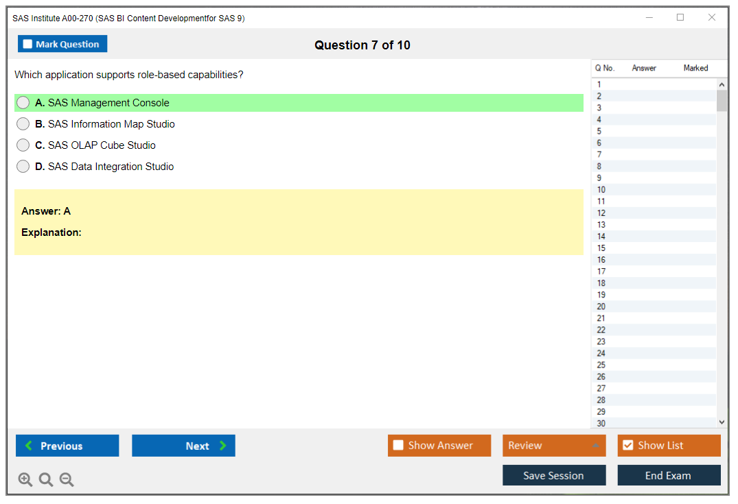 The question format of the SAS Institute A00-270 Exam includes multiple-choice questions, short-answer questions, and scenario-based questions.
