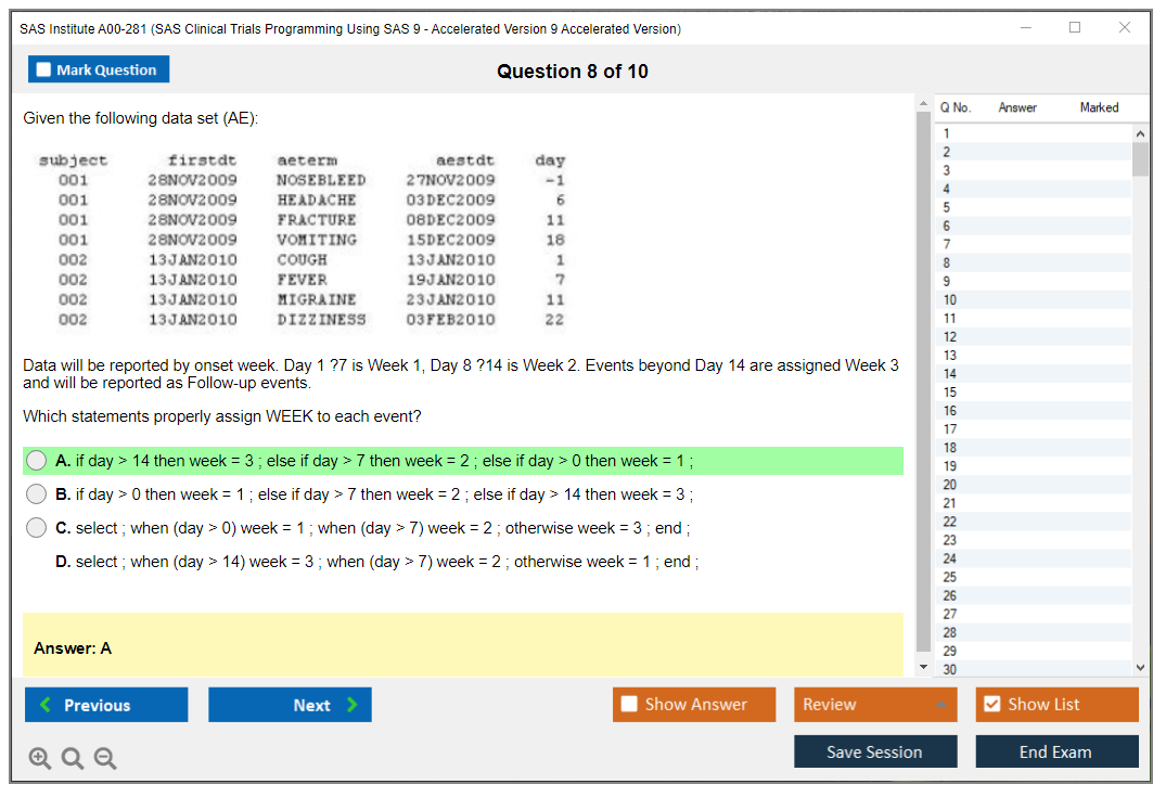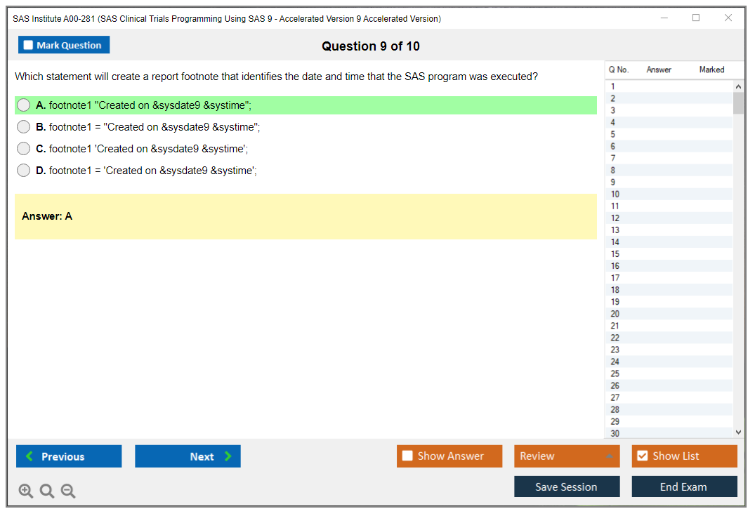 What are the Sample Questions of SAS Institute A00-281 Exam?